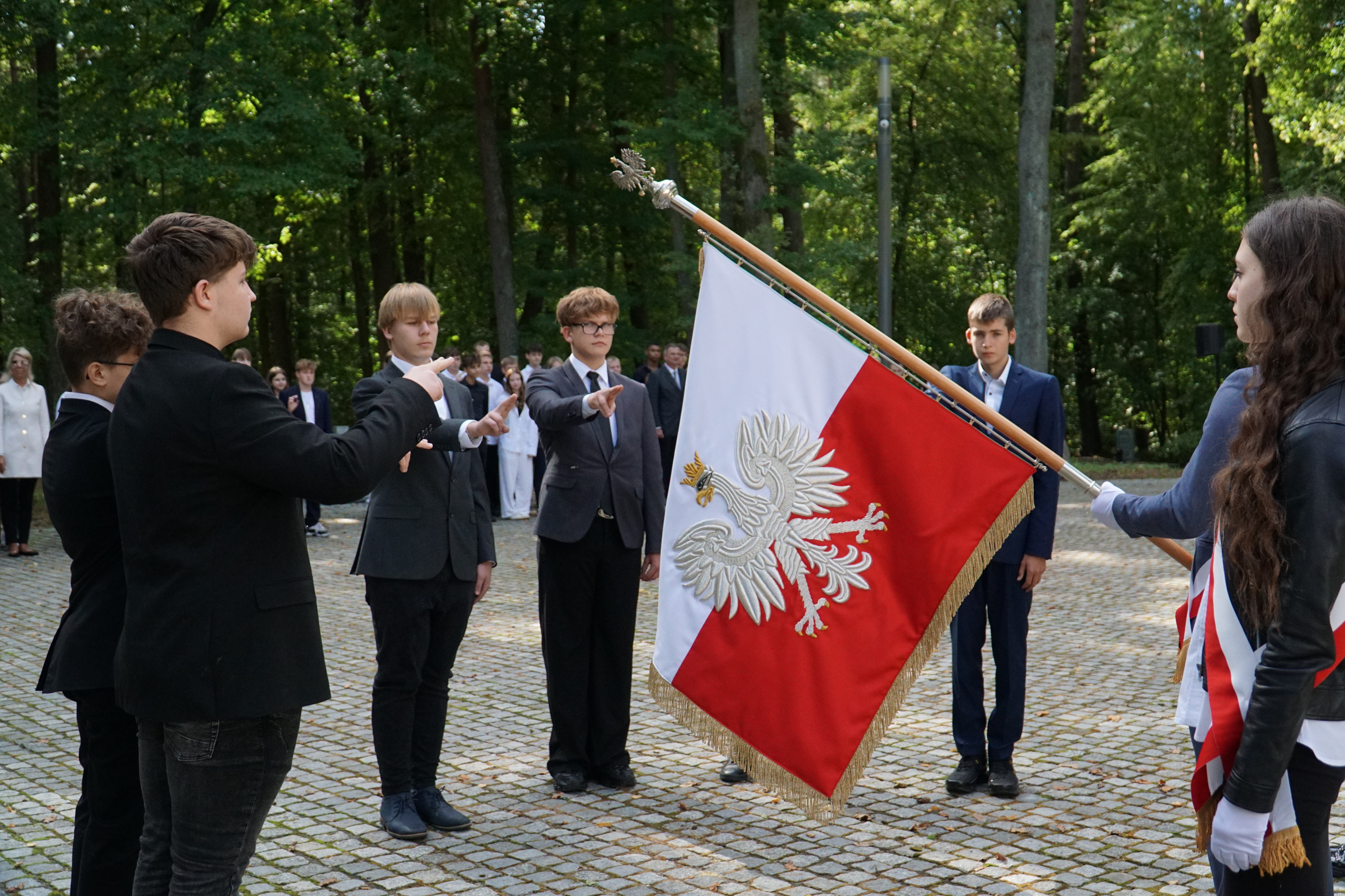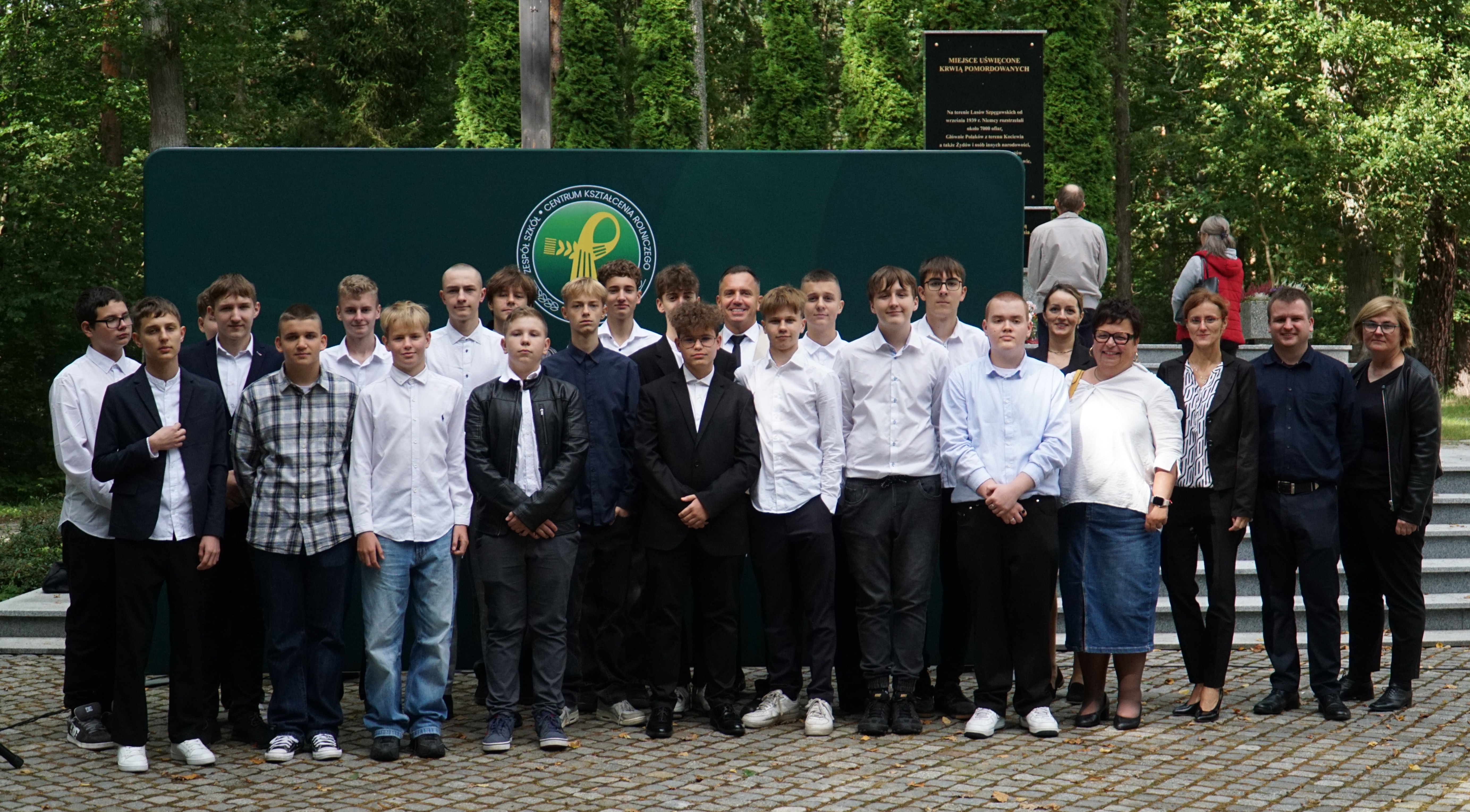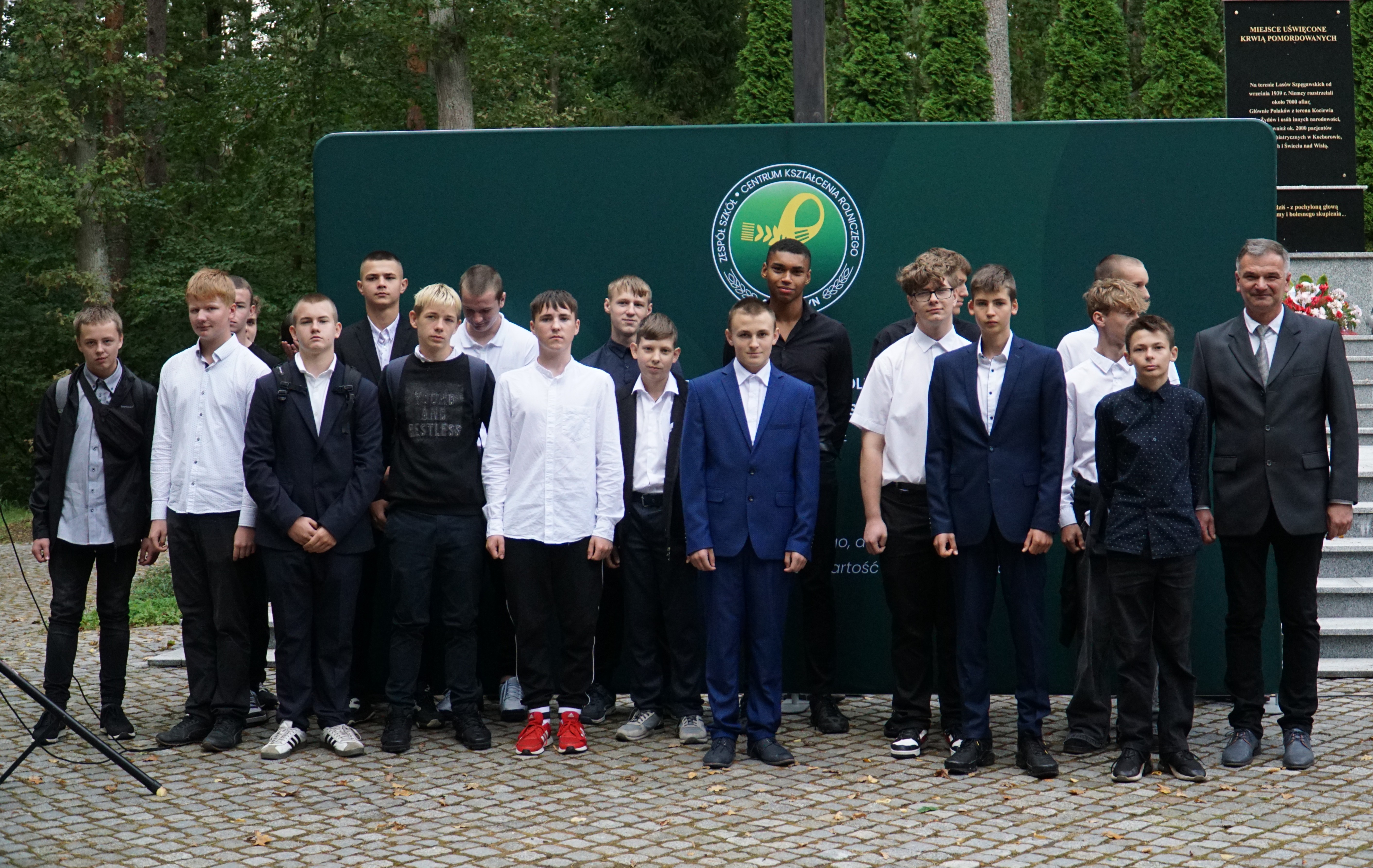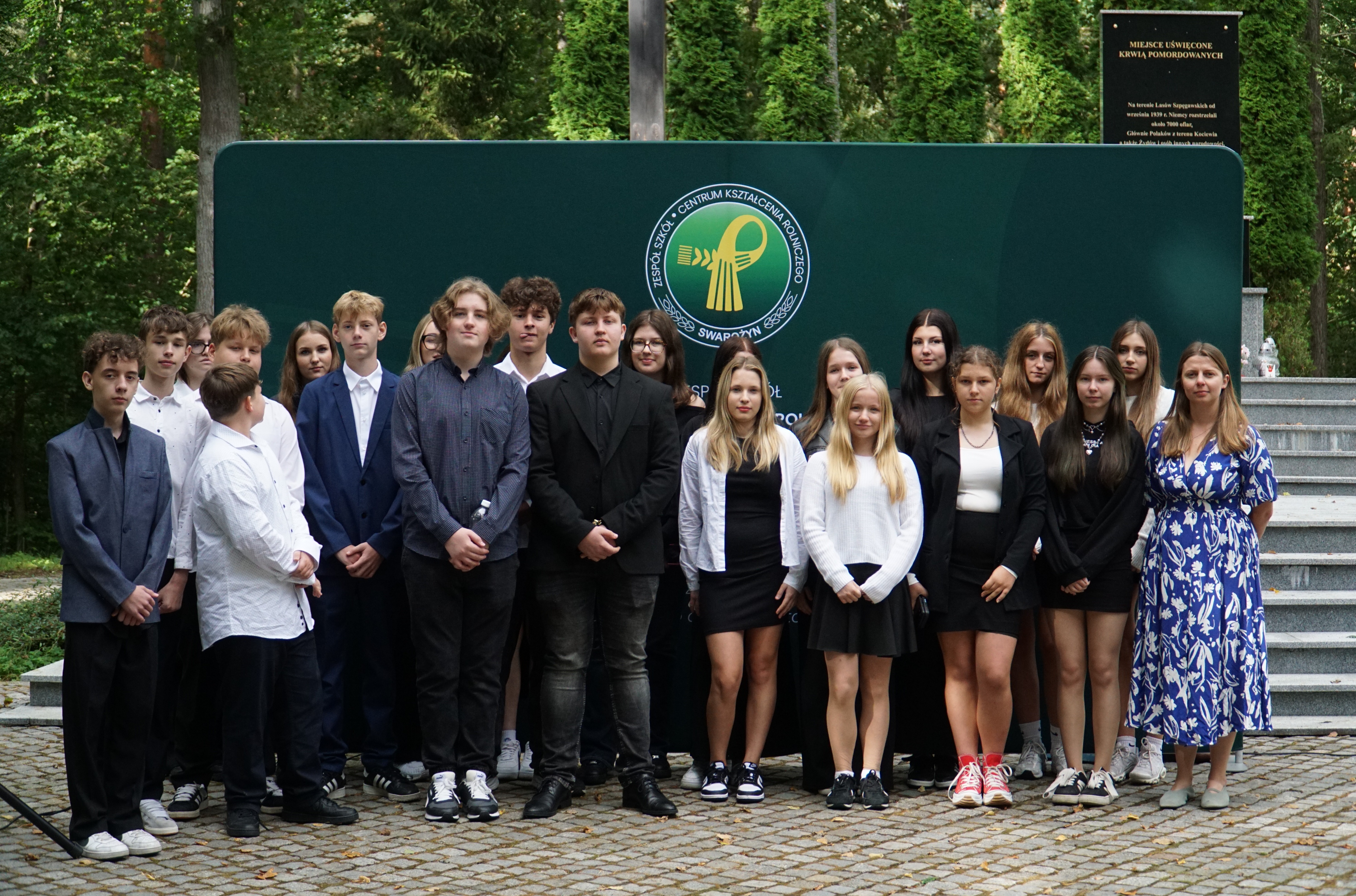 Uczniowie klas pierwszych wspólnie z rodzicami zgromadzili się dzisiaj na Cmentarzu Wojennym w Lesie Szpęgawskim, gdzie w uroczysty sposób złożyli ślubowanie, oficjalnie stając się pełnoprawnymi członkami naszej społeczności szkolnej. Rotę przysięgi odczytał Dyrektor ZSCKR Swarożyn Piotr Popielarczyk. Dzisiejsza uroczystość odbyła się przy grobach pomordowanych za polskość nauczycieli, którzy zginęli z rąk niemieckich okupantów jesienią 1939 r. Las Szpęgawski jest również miejscem gdzie niemiecki terror pozbawiał życia Żydów, przedstawicieli miejscowych elit społecznych, księży, osób z niepełnosprawnościami, a także dzieci. Zginąć tu mogło nawet 7 tysięcy osób z czego znamy około 2400 nazwisk upamiętnionych na monumencie. Pierwszoklasiści zostali zapoznani z historią tego miejsca, następnie uczcili ofiary wojny minutą ciszy i złożyli symboliczny znicz pod pomnikiem pamięci.