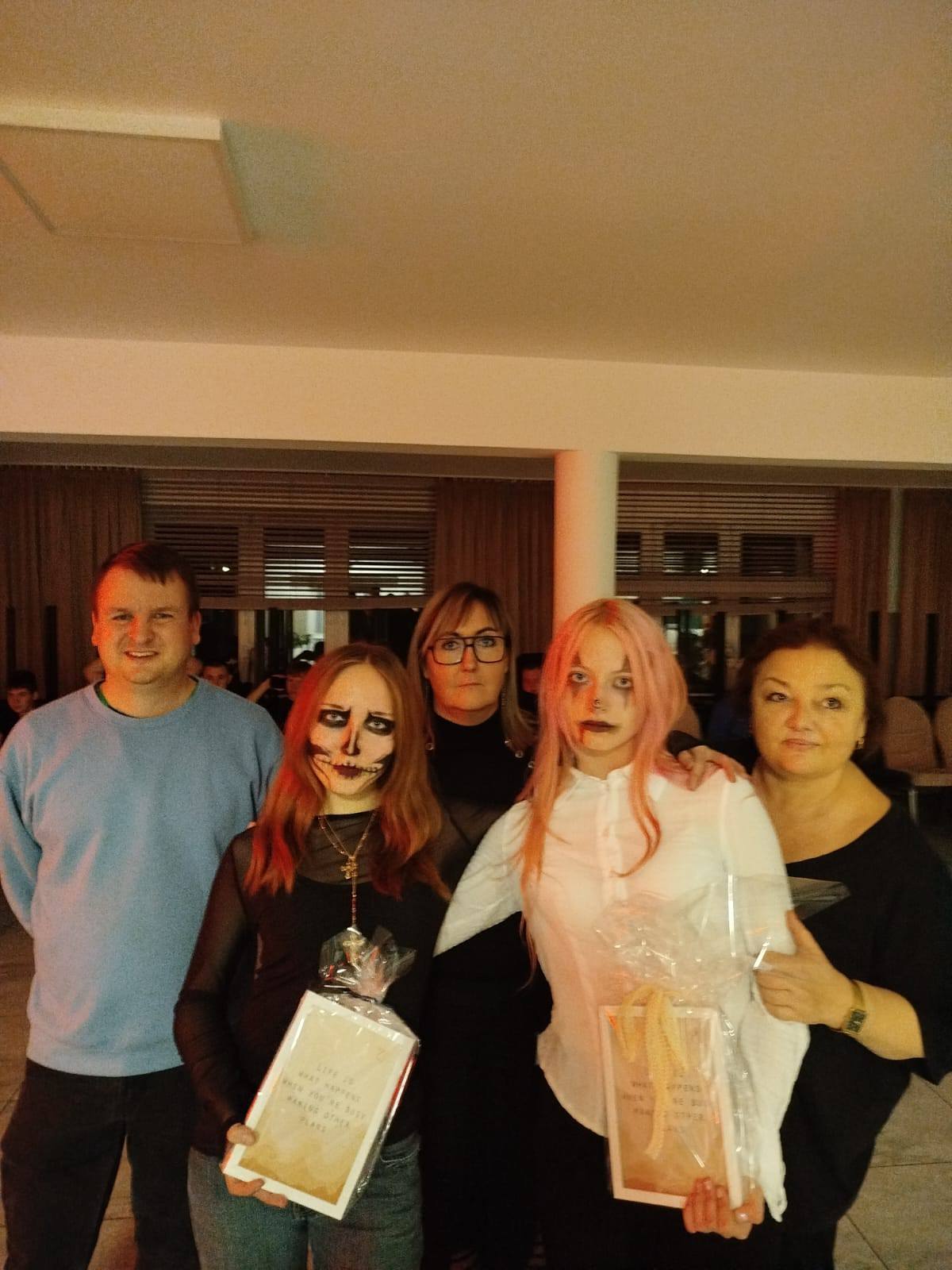 Oj, działo się! Nasz internat we wtorkowy wieczór 28.10.br. zamienił się w prawdziwe królestwo duchów, czarownic, potworów (a nawet dinozaurów) o wyjątkowo dobrym poczuciu humoru. Przewodniczący Młodzieżowej Rady Internatu Oskar Włodarczyk oficjalnie otworzył zabawę, życząc wszystkim udanej (i przerażająco tanecznej!) nocy. Były tańce, śmiechy, upiorne rytmy i duchy. Największe emocje wzbudził konkurs na najbardziej kreatywny strój. Fantazja uczestników nie znała granic . Zwycięzcy zasłużyli na gromkie brawa i nagrody. Dziękujemy wszystkim za wspólną zabawę – było STRASZNIE dobrze! Do zobaczenia na kolejnej imprezie... o ile duchy pozwolą.