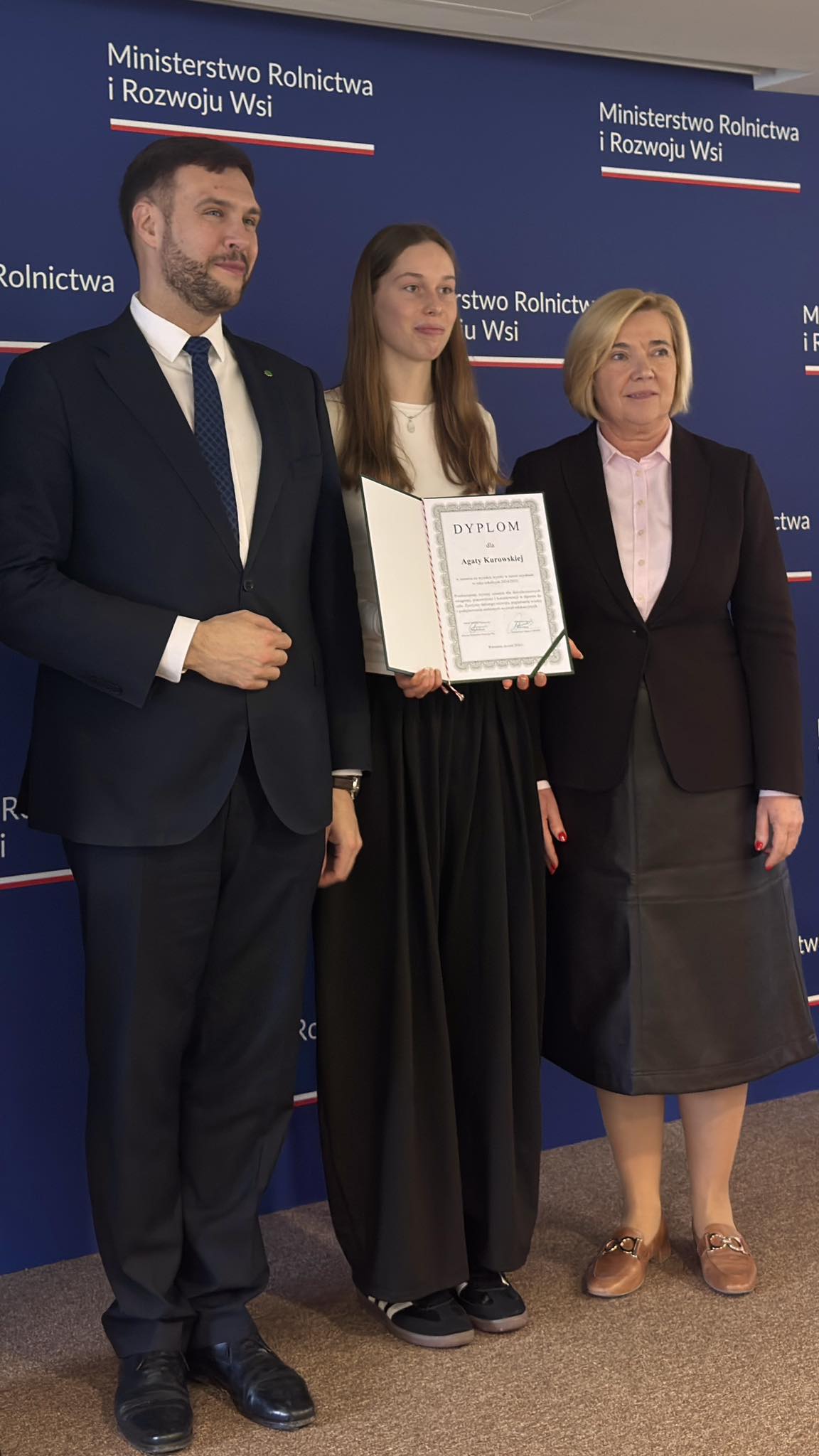 Z dumą informujemy, że Agata Kurowska otrzymała nagrodę Ministra Rolnictwa i Rozwoju Wsi za wysokie wyniki w nauce w roku szkolnym 2024/2025.