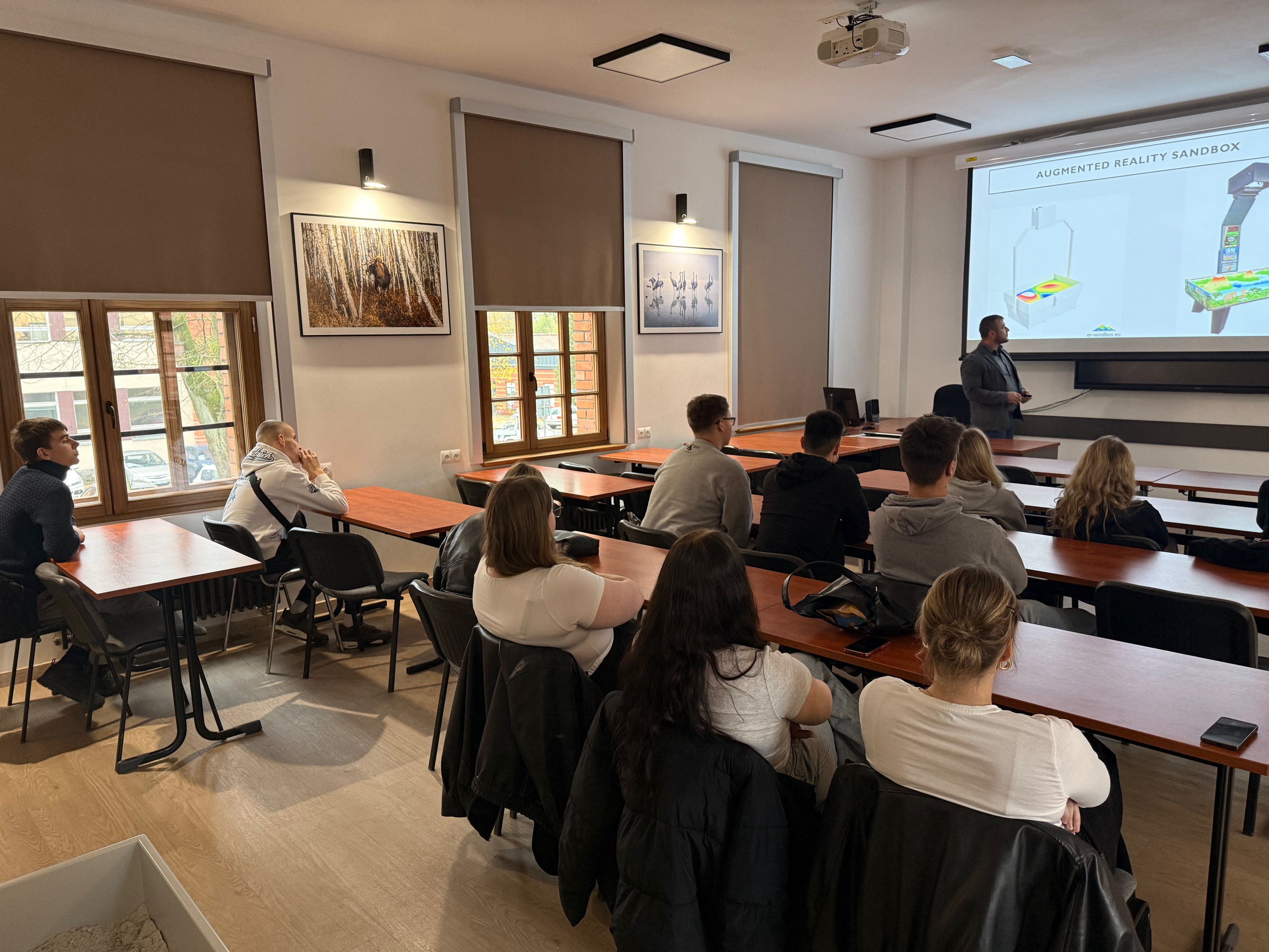 Opis zajęć: Zajęcia odbyły się w Katedrze Gospodarki Wodnej i Klimatologii. Podczas spotkania uczniowie zapoznali się z rolą topografii terenu w kształtowaniu odpływu wód ze zlewni. W części praktycznej wykorzystali Augmented Reality Sandbox tworząc modele terenu i obserwując jak woda zachowuje się podczas symulowanego opadu. Na zakończenie uczniowie zwiedzili laboratorium, gdzie zapoznali się z nowoczesnym sprzętem wykorzystywanym w badaniach hydrochemicznych. Zajęcia dostarczyły uczniom nie tylko wiedzy, ale także pokazały, jak nauka łączy się z praktyką i jak ważne jest właściwe zarządzanie zasobami wodnymi.