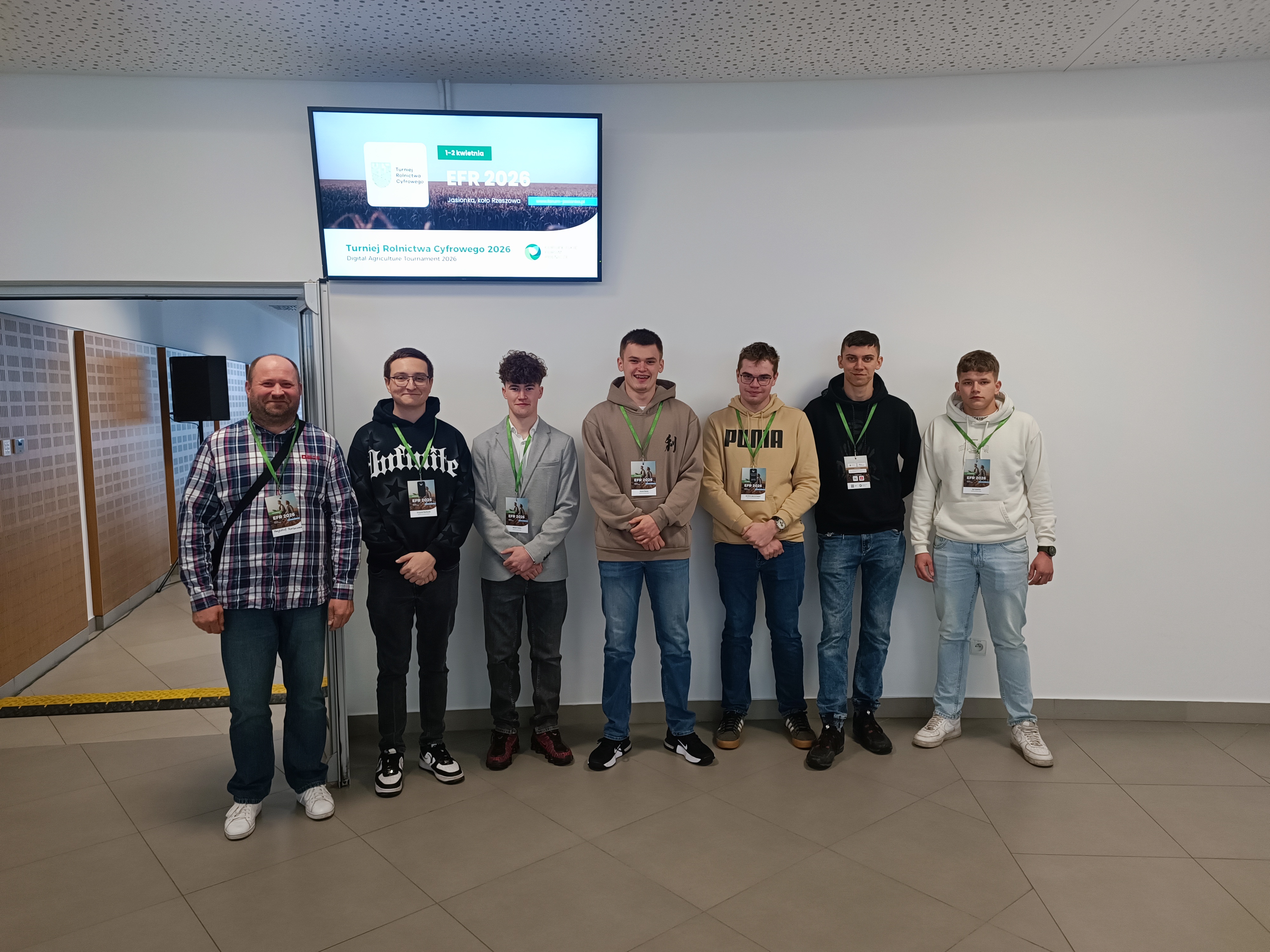 W dniu 1 kwietnia 2026 r. w Jasionce koło Rzeszowa odbyło się Europejskie Forum Rolnicze. Jednym z elementów Forum był Turniej Rolnictwa Cyfrowego, w którym uczestniczyli uczniowie naszej szkoły- Torbicz Michał, Buska Antoni, Brzozowiec Patryk, Bednarek Krzysztof, Ignatiuk Igor, Studziński Konrad.