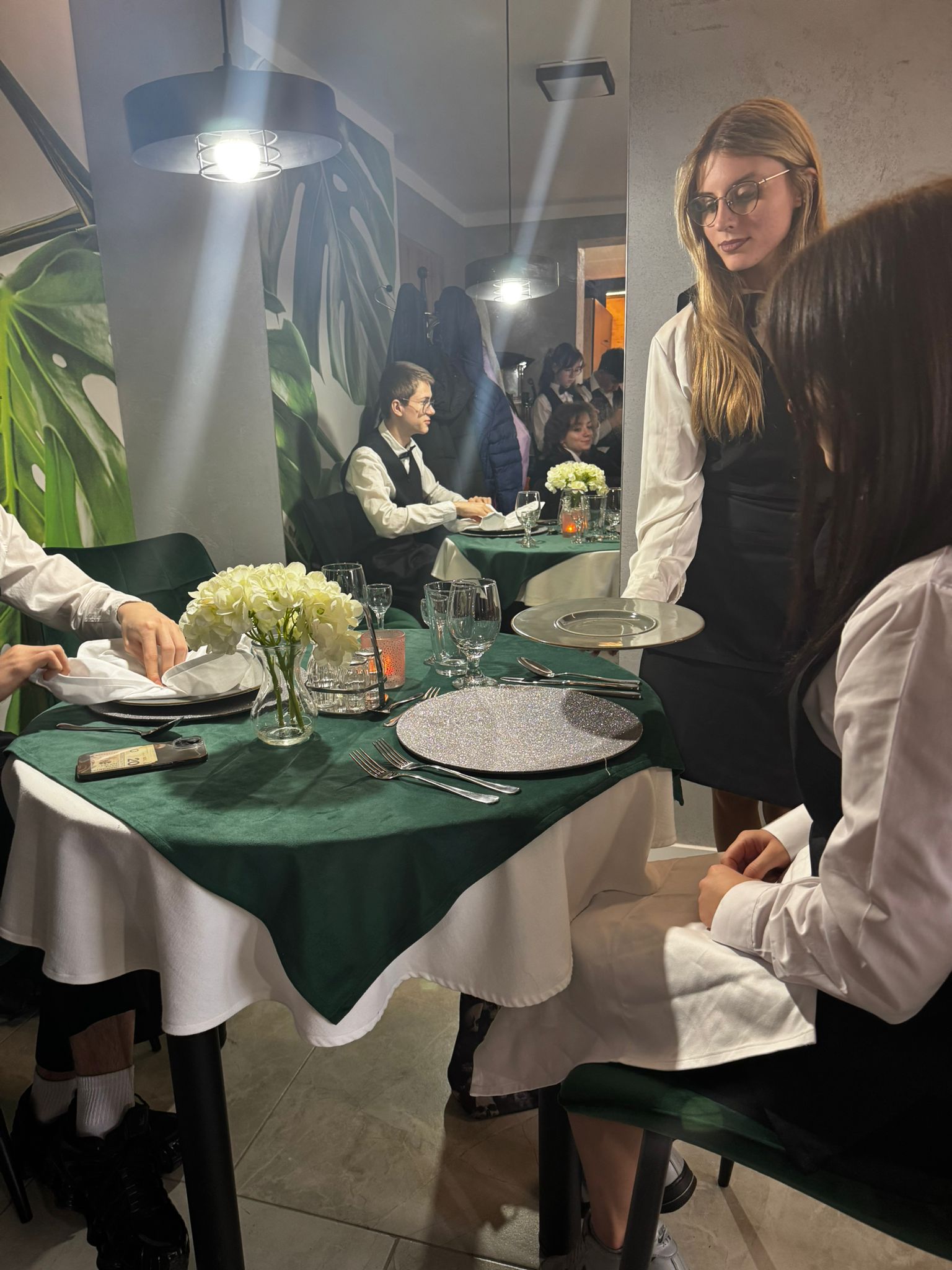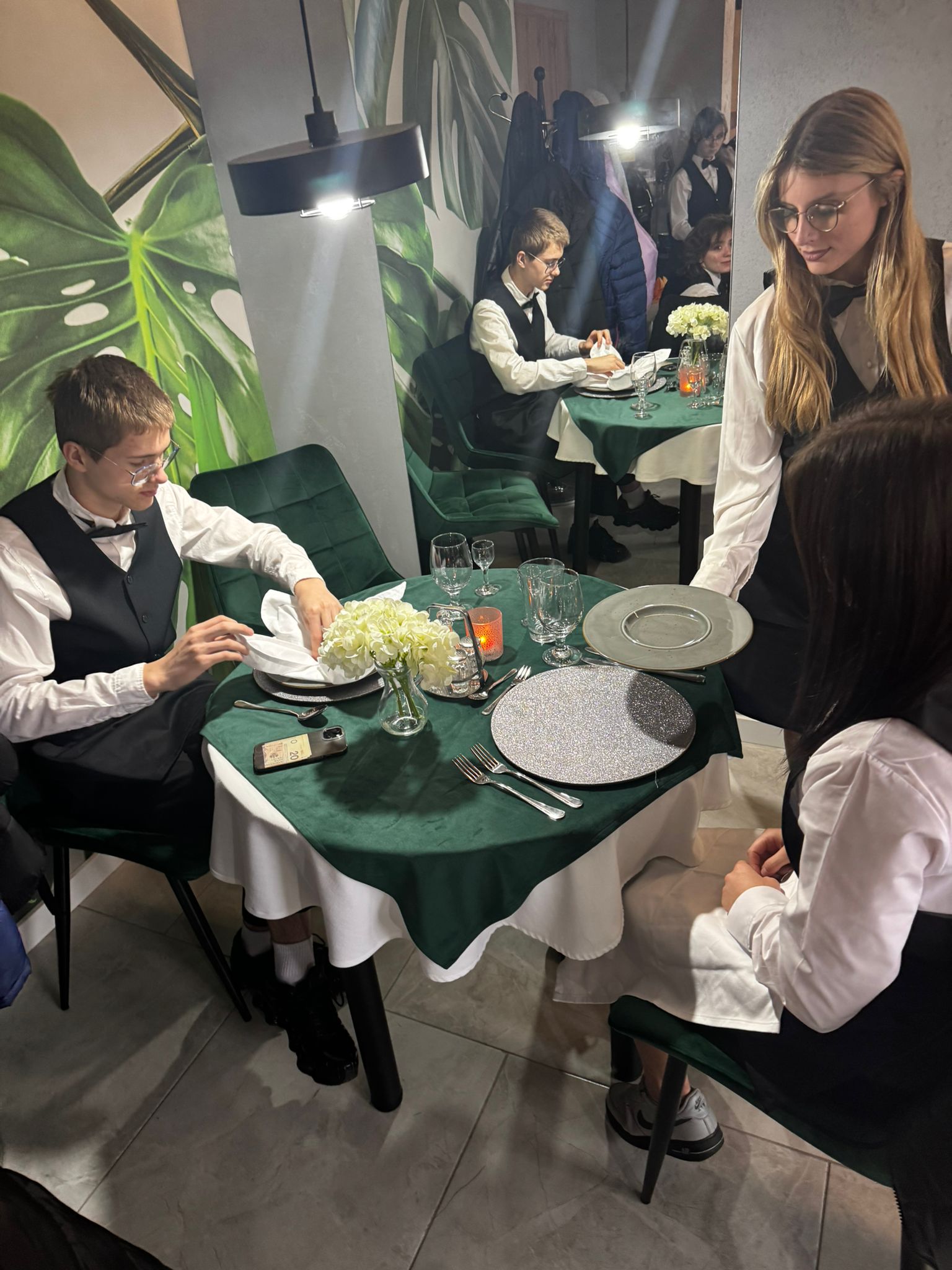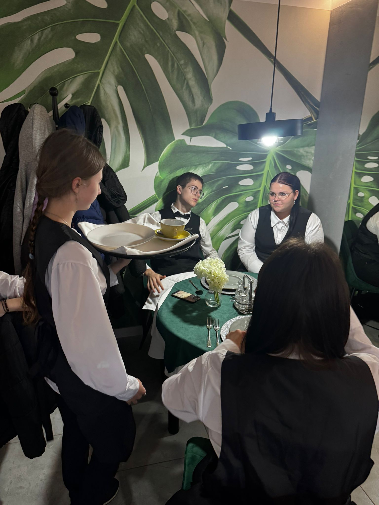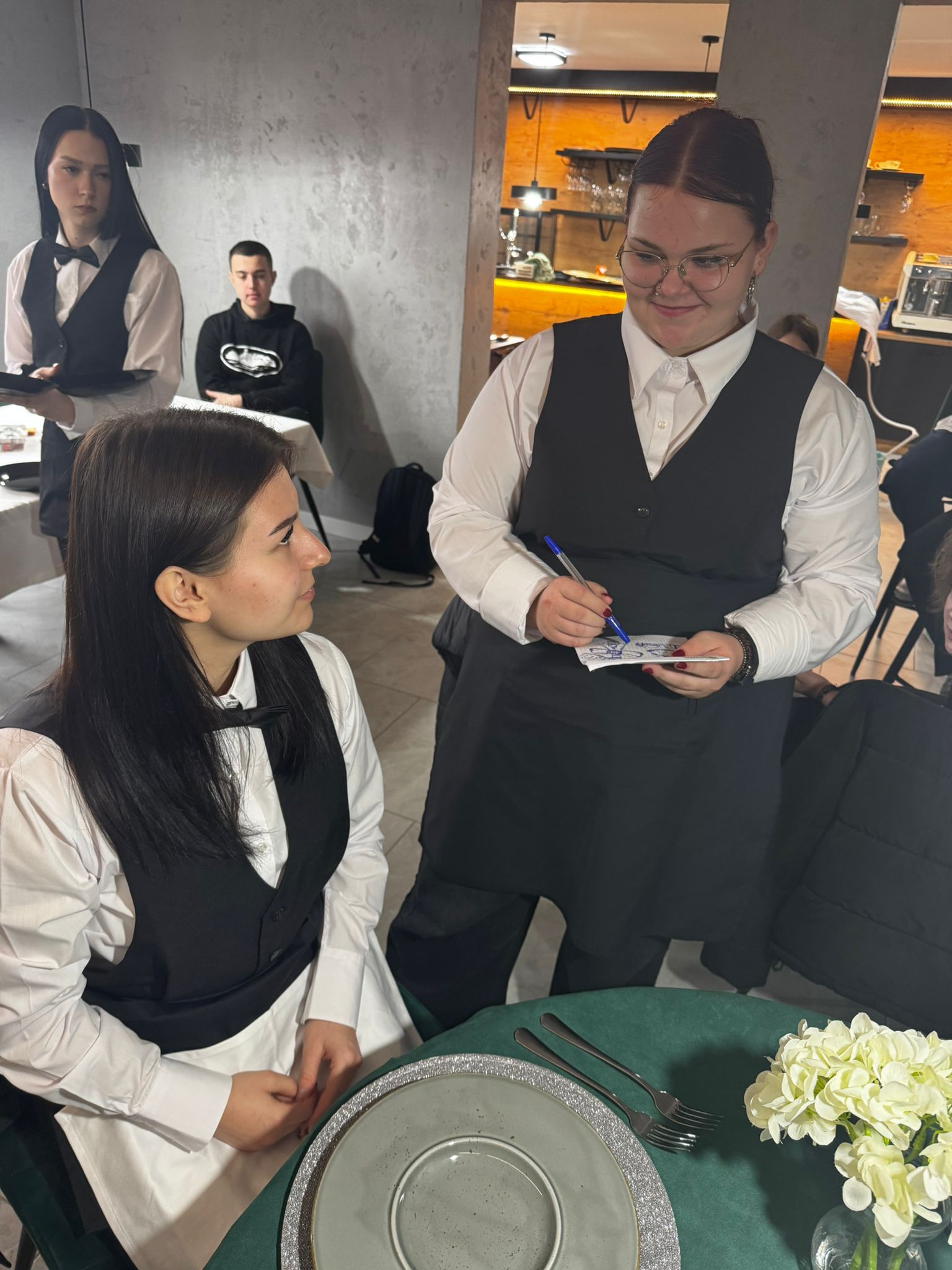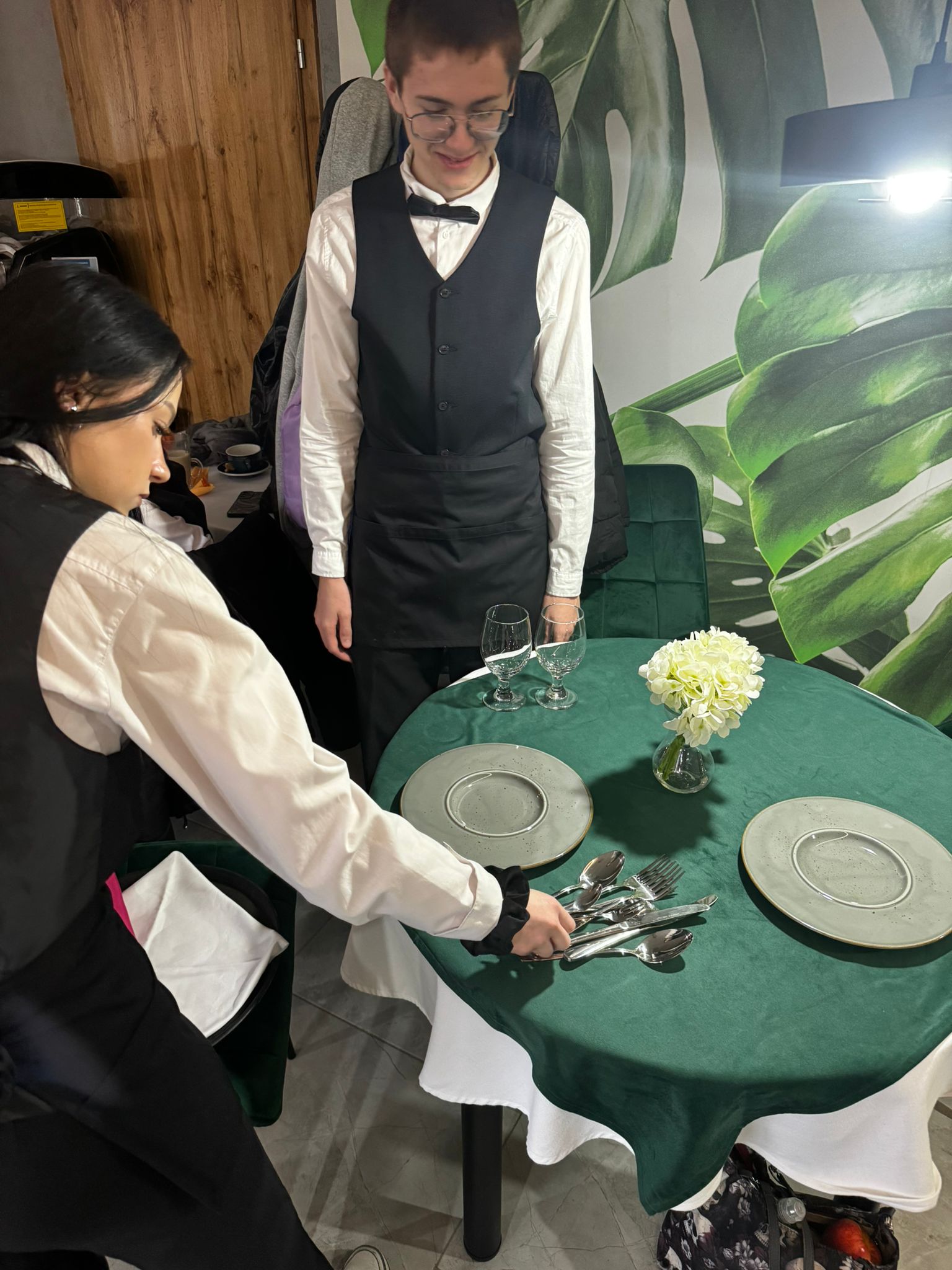 Uczniowie klas kształcących się w zawodzie technik żywienia i usług gastronomicznych. mieli okazję zdobyć niezbędną wiedzę teoretyczną oraz praktyczne umiejętności wymagane w zawodzie kelnera. Podczas szkolenia poznali zasady organizacji pracy na stanowisku kelnera oraz profesjonalnej obsługi gości. Nauczyli się również prawidłowego noszenia i zbierania zastawy stołowej, a także różnych rodzajów serwisów. Kurs obejmował także ćwiczenia z rozkładania i składania obrusu, układania serwet oraz zapoznanie się z zasadami savoir-vivre’u obowiązującymi w gastronomii.