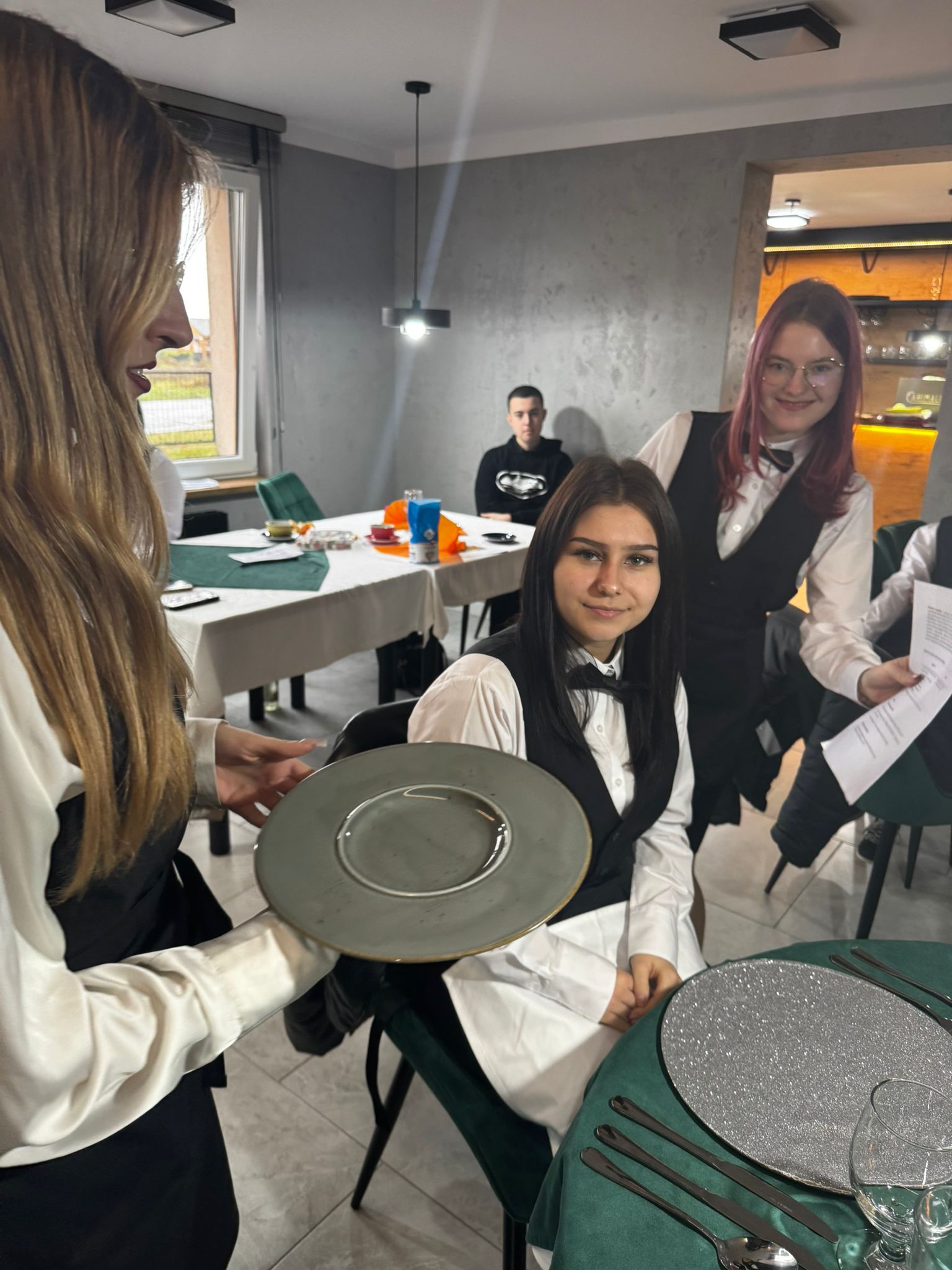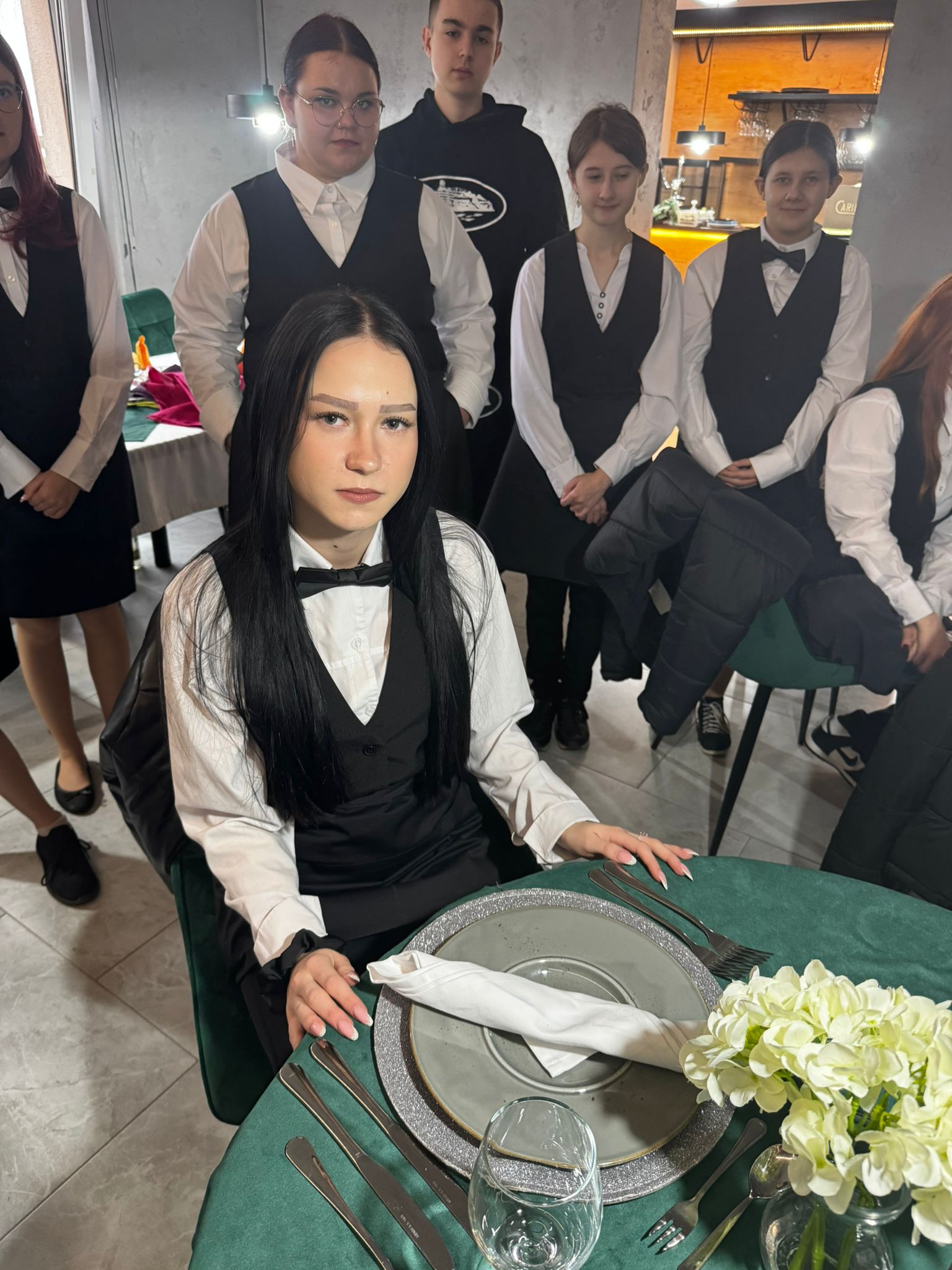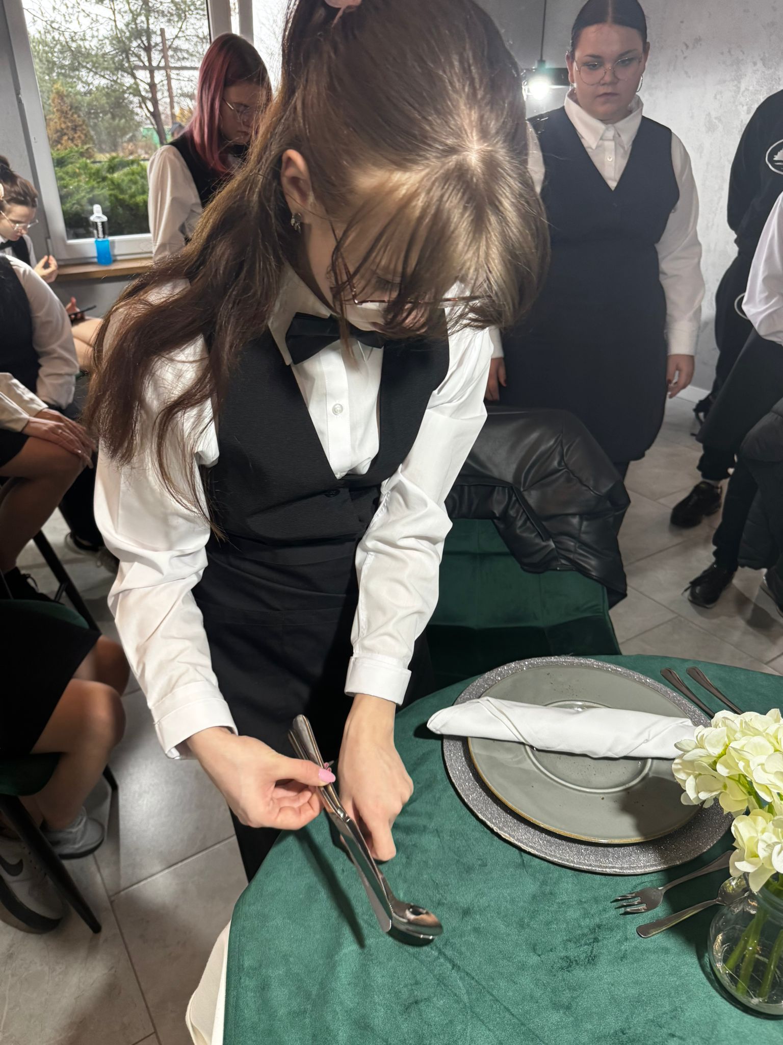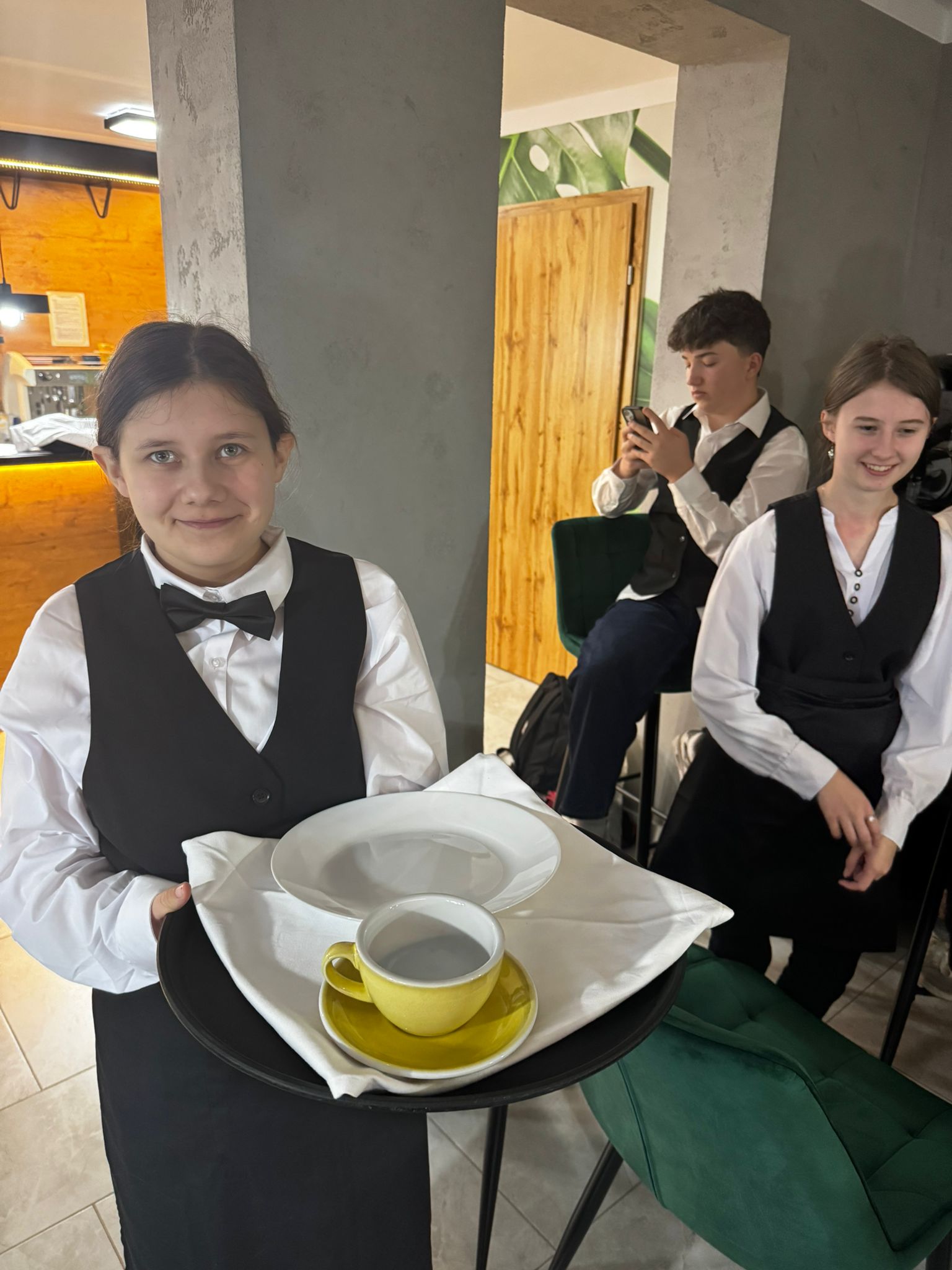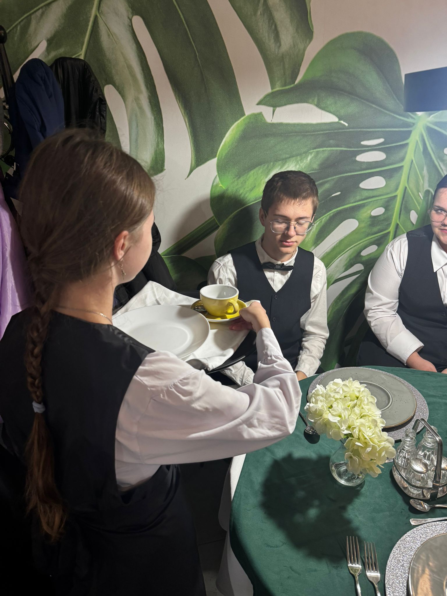 Uczniowie klas kształcących się w zawodzie technik żywienia i usług gastronomicznych. mieli okazję zdobyć niezbędną wiedzę teoretyczną oraz praktyczne umiejętności wymagane w zawodzie kelnera. Podczas szkolenia poznali zasady organizacji pracy na stanowisku kelnera oraz profesjonalnej obsługi gości. Nauczyli się również prawidłowego noszenia i zbierania zastawy stołowej, a także różnych rodzajów serwisów. Kurs obejmował także ćwiczenia z rozkładania i składania obrusu, układania serwet oraz zapoznanie się z zasadami savoir-vivre’u obowiązującymi w gastronomii.