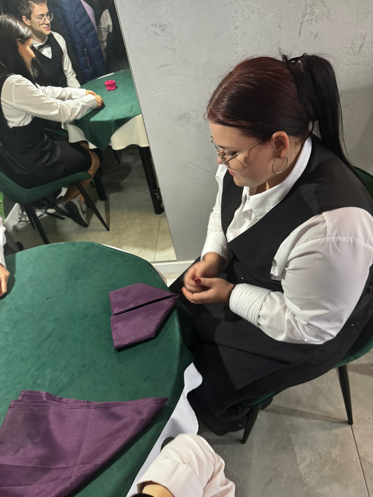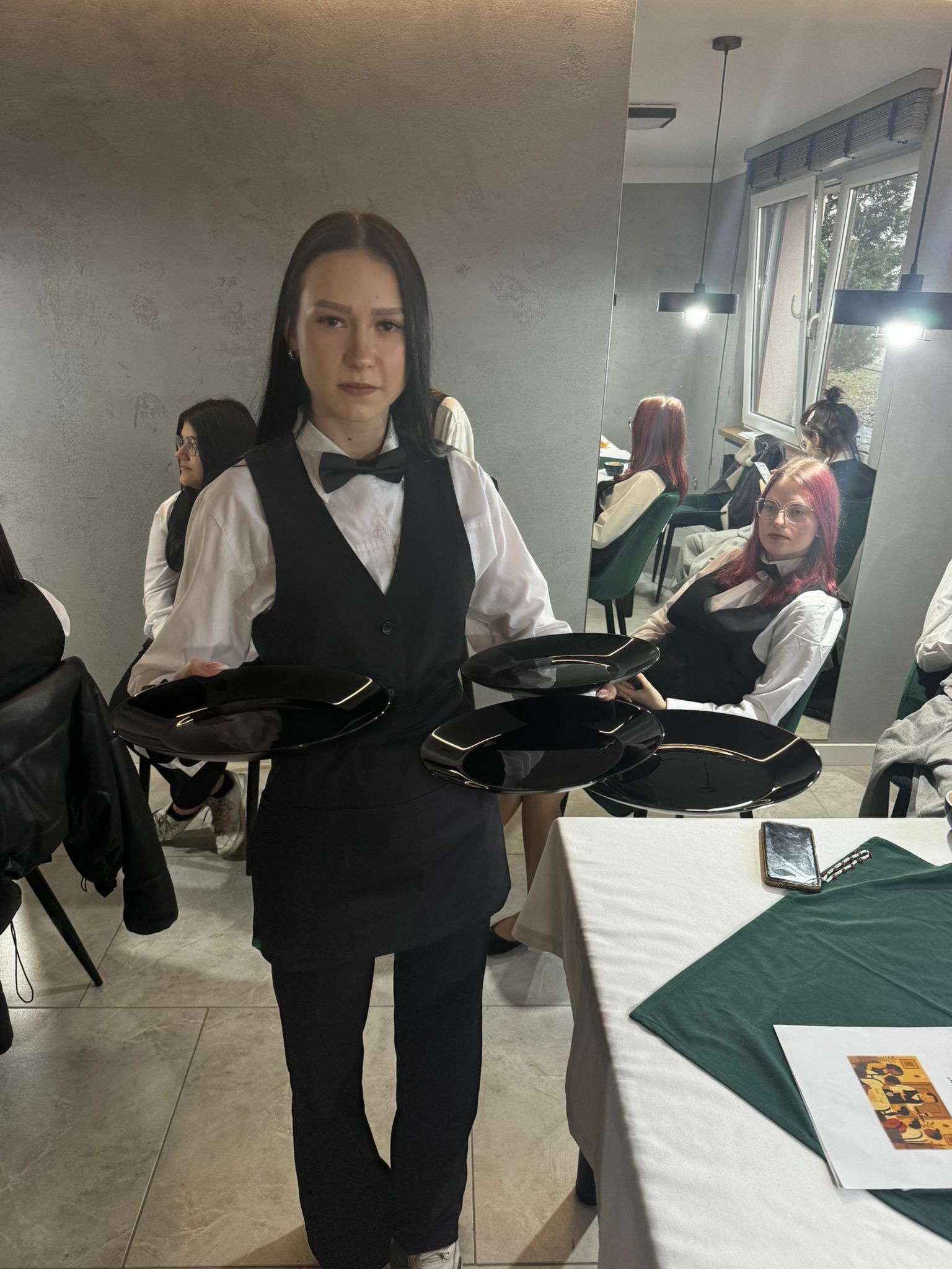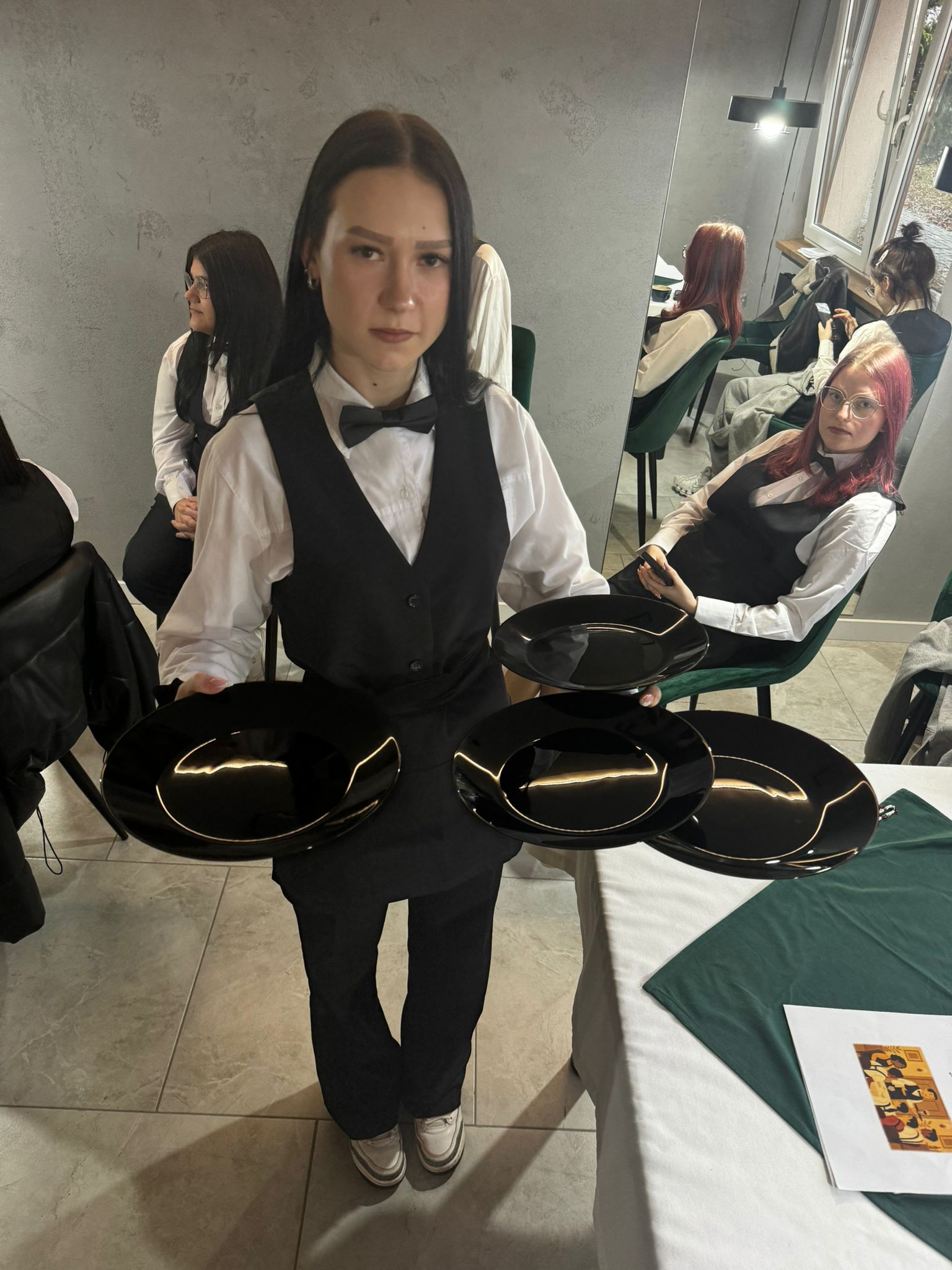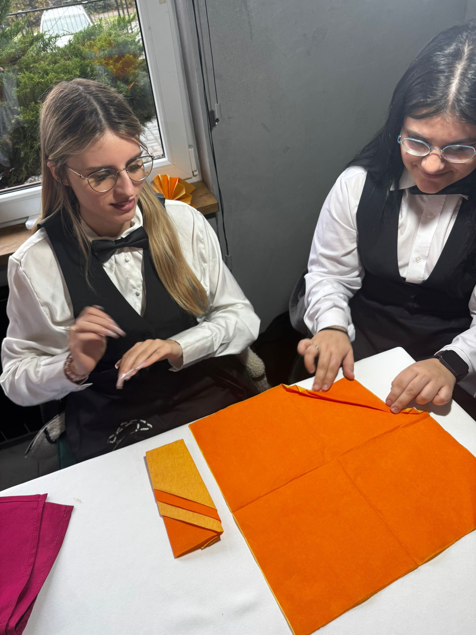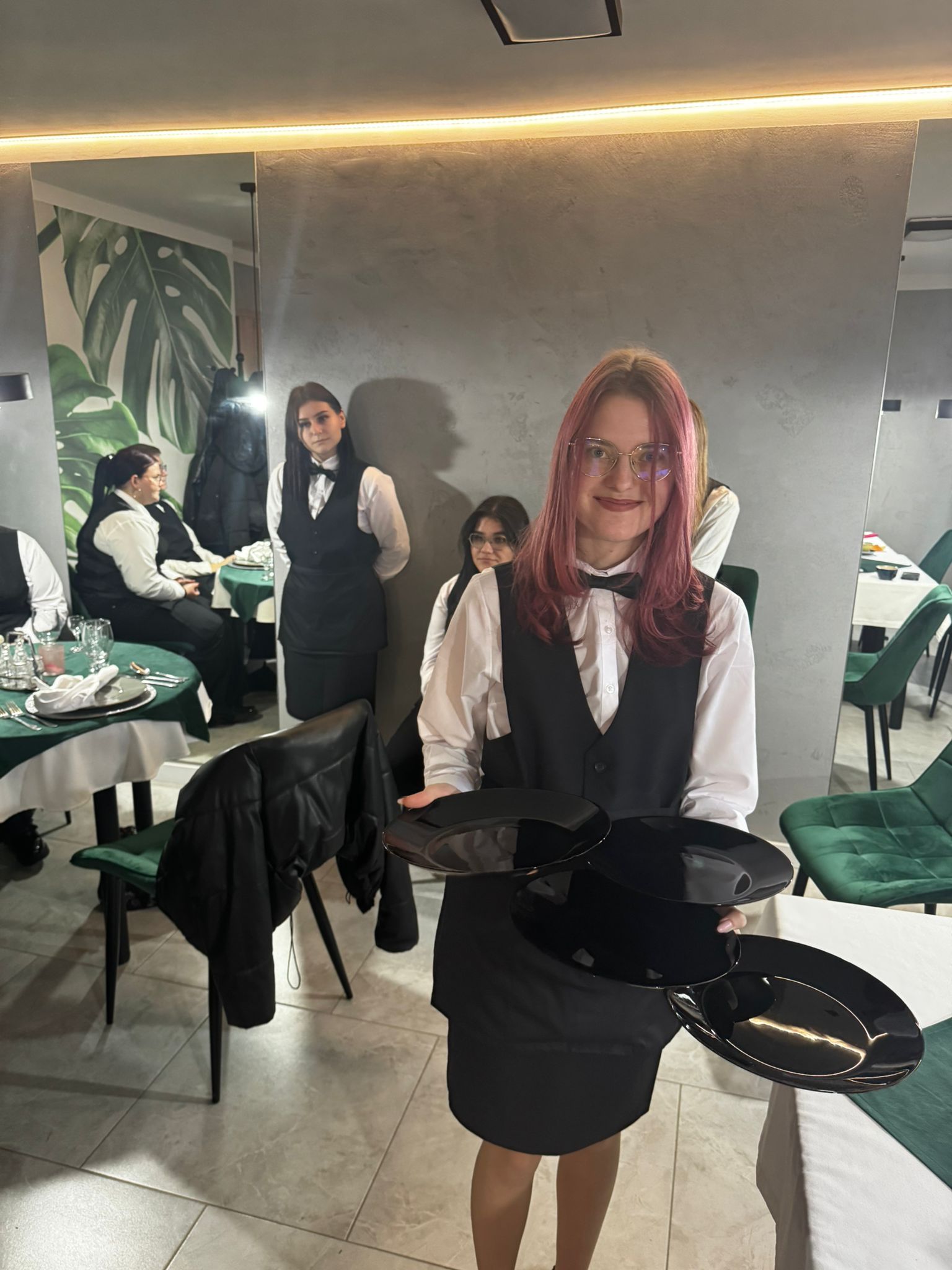 Uczniowie klas kształcących się w zawodzie technik żywienia i usług gastronomicznych. mieli okazję zdobyć niezbędną wiedzę teoretyczną oraz praktyczne umiejętności wymagane w zawodzie kelnera. Podczas szkolenia poznali zasady organizacji pracy na stanowisku kelnera oraz profesjonalnej obsługi gości. Nauczyli się również prawidłowego noszenia i zbierania zastawy stołowej, a także różnych rodzajów serwisów. Kurs obejmował także ćwiczenia z rozkładania i składania obrusu, układania serwet oraz zapoznanie się z zasadami savoir-vivre’u obowiązującymi w gastronomii.