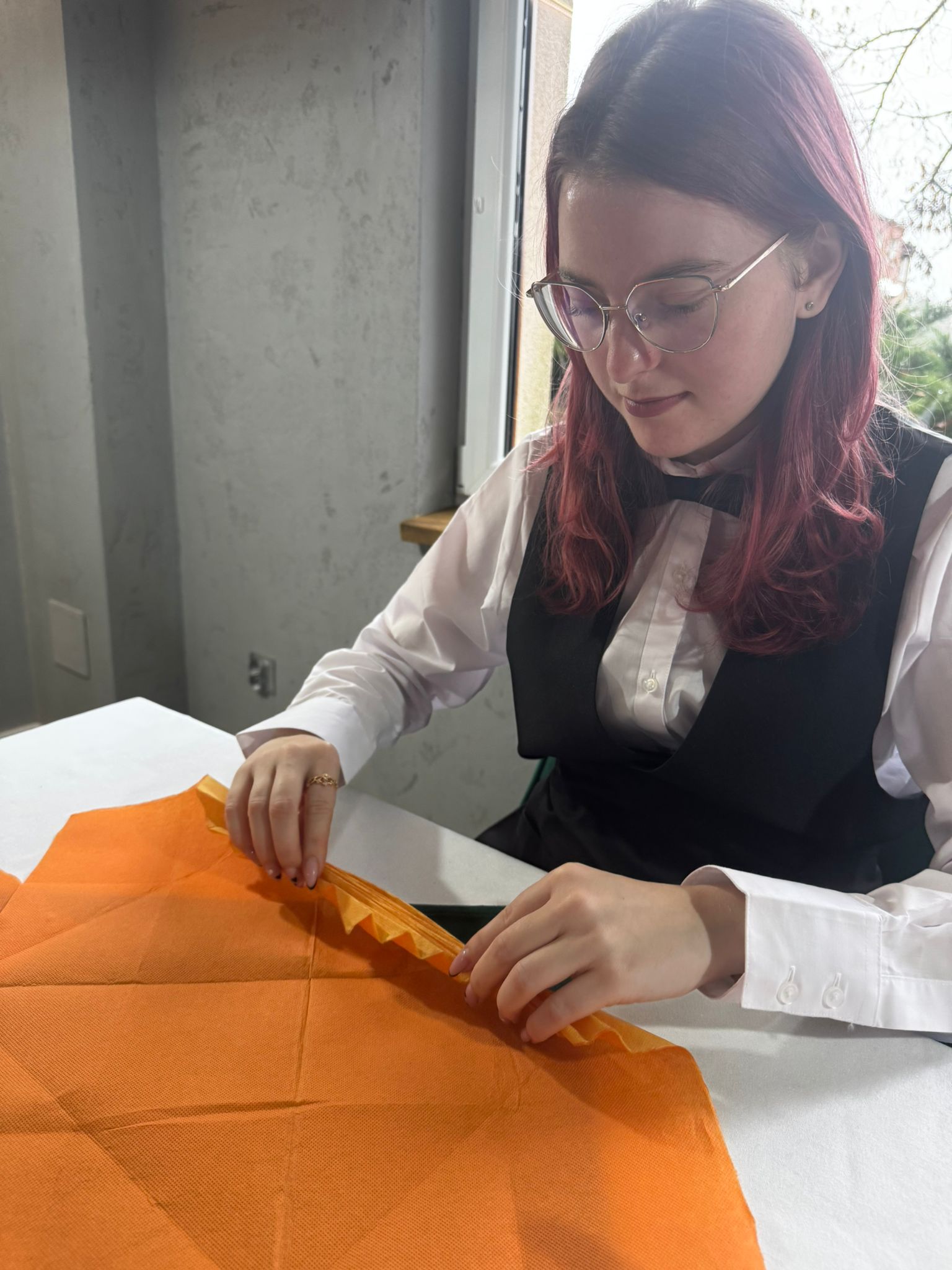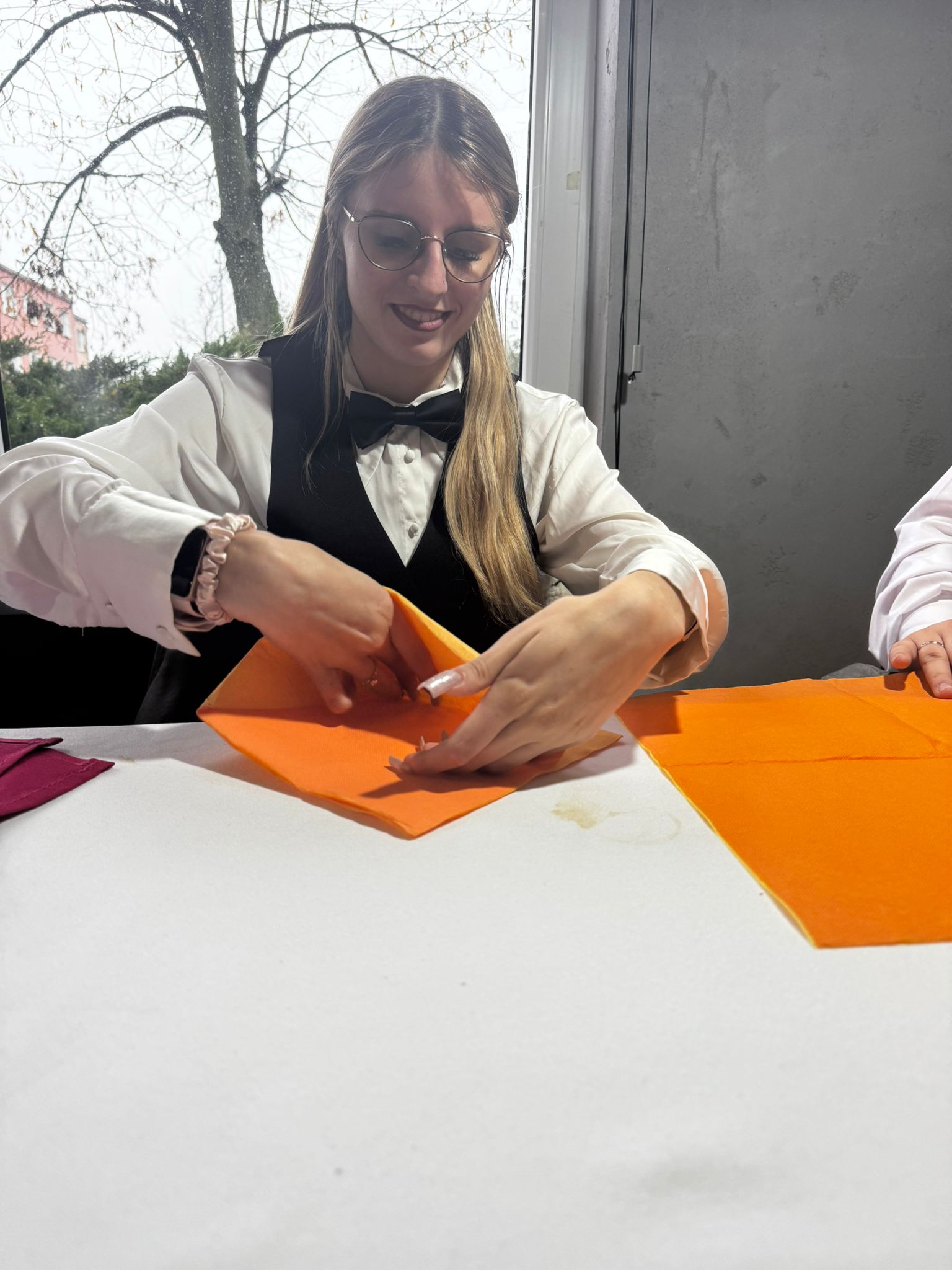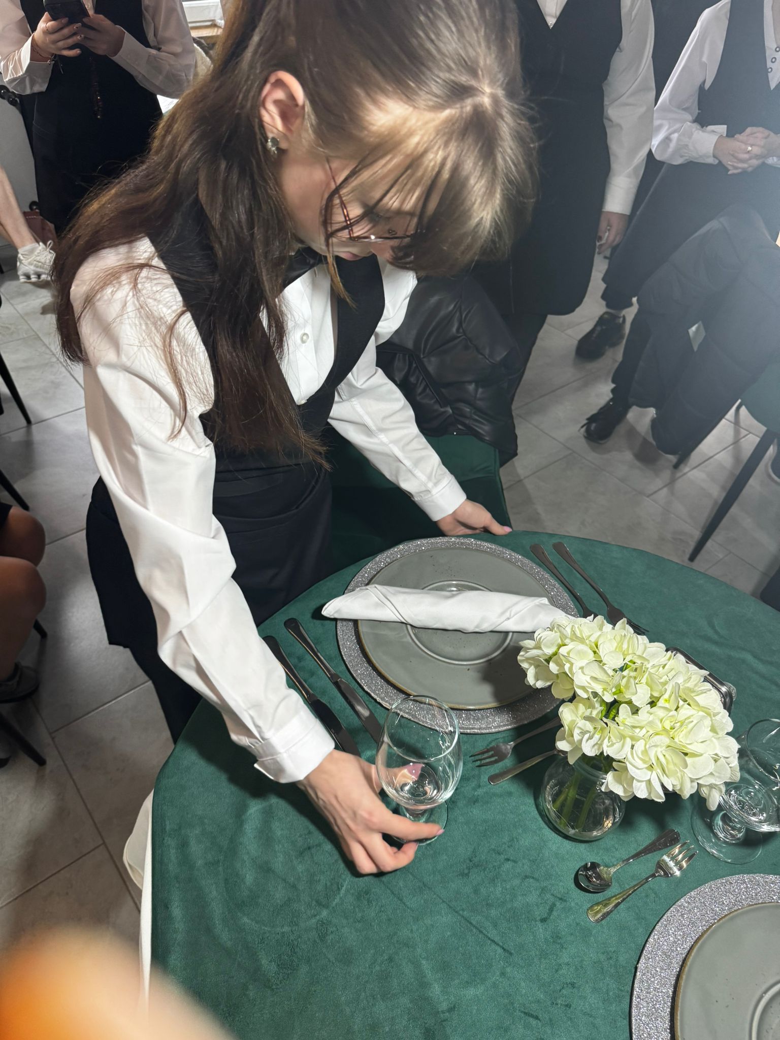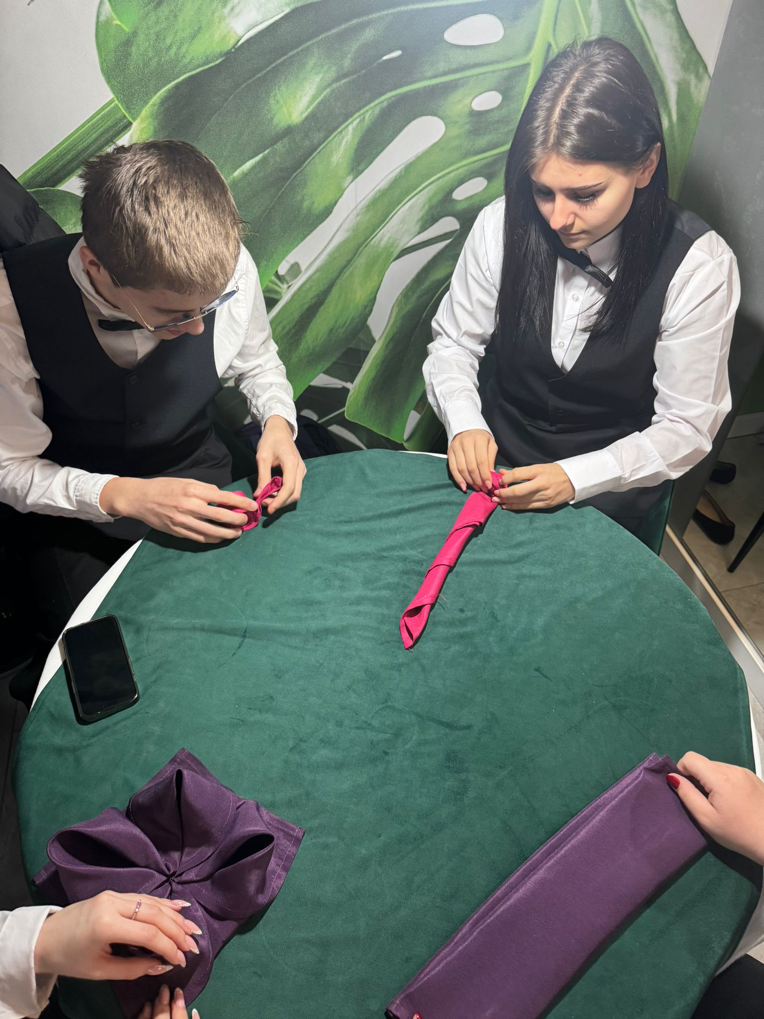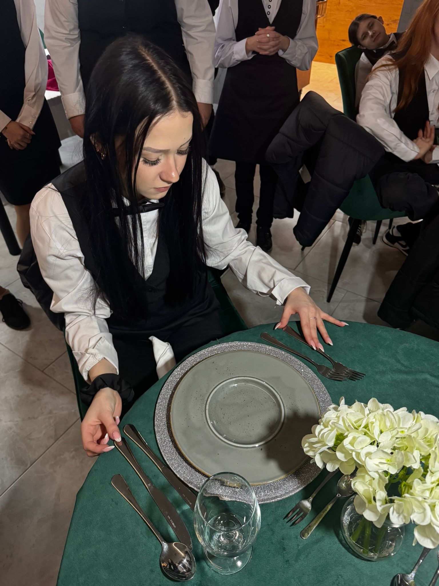 Uczniowie klas kształcących się w zawodzie technik żywienia i usług gastronomicznych. mieli okazję zdobyć niezbędną wiedzę teoretyczną oraz praktyczne umiejętności wymagane w zawodzie kelnera. Podczas szkolenia poznali zasady organizacji pracy na stanowisku kelnera oraz profesjonalnej obsługi gości. Nauczyli się również prawidłowego noszenia i zbierania zastawy stołowej, a także różnych rodzajów serwisów. Kurs obejmował także ćwiczenia z rozkładania i składania obrusu, układania serwet oraz zapoznanie się z zasadami savoir-vivre’u obowiązującymi w gastronomii.