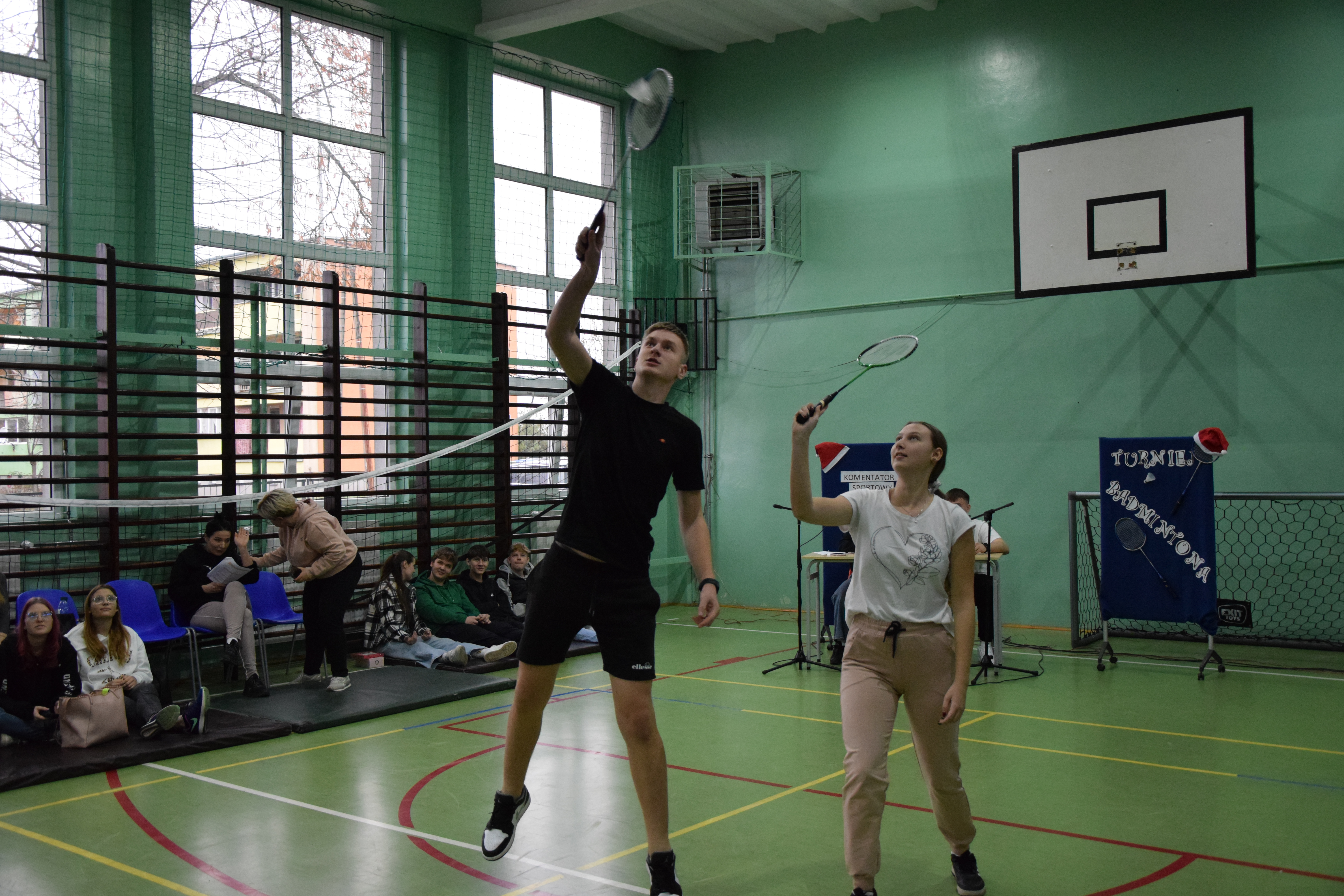 Dnia 3 grudnia 2025 r. w naszej szkole odbył się emocjonujący Mikołajkowy Turniej Badmintonowy, w którym zmierzyły się drużyny nauczycieli i uczniów. Turniej przyciągnął wielu kibiców, którzy gorąco wspierali swoich faworytów. Celem wydarzenia było nie tylko wyłonienie zwycięzców, ale także integracja społeczności szkolnej i wspólna zabawa.