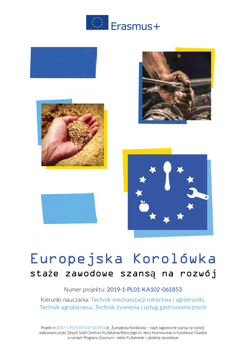Mamy zaszczyt podzielić się rezultatem zrealizowanego przez naszą szkołę projektu pt. "Europejska Korolówka - staże zawodowe szansą na rozwój" nr 2019-1-PL01-KA102-061853. Broszura proprojektowa, którą można obejrzeć poniżej, obrazuje przebieg wszystkich trzech mobilności, jak również cele projektu, jego założenia, główne działania, nabyte przez uczniów kompetencje, realizację programu edukacyjno-kulturowego, walidację i certyfikację efektów kształcenia oraz opis partnera. Opatrzona została zdjęciami z przebiegu mobilności (tak z praktyk, jak i czasu wolnego). Zobaczcie sami i powspominajcie z nami!"