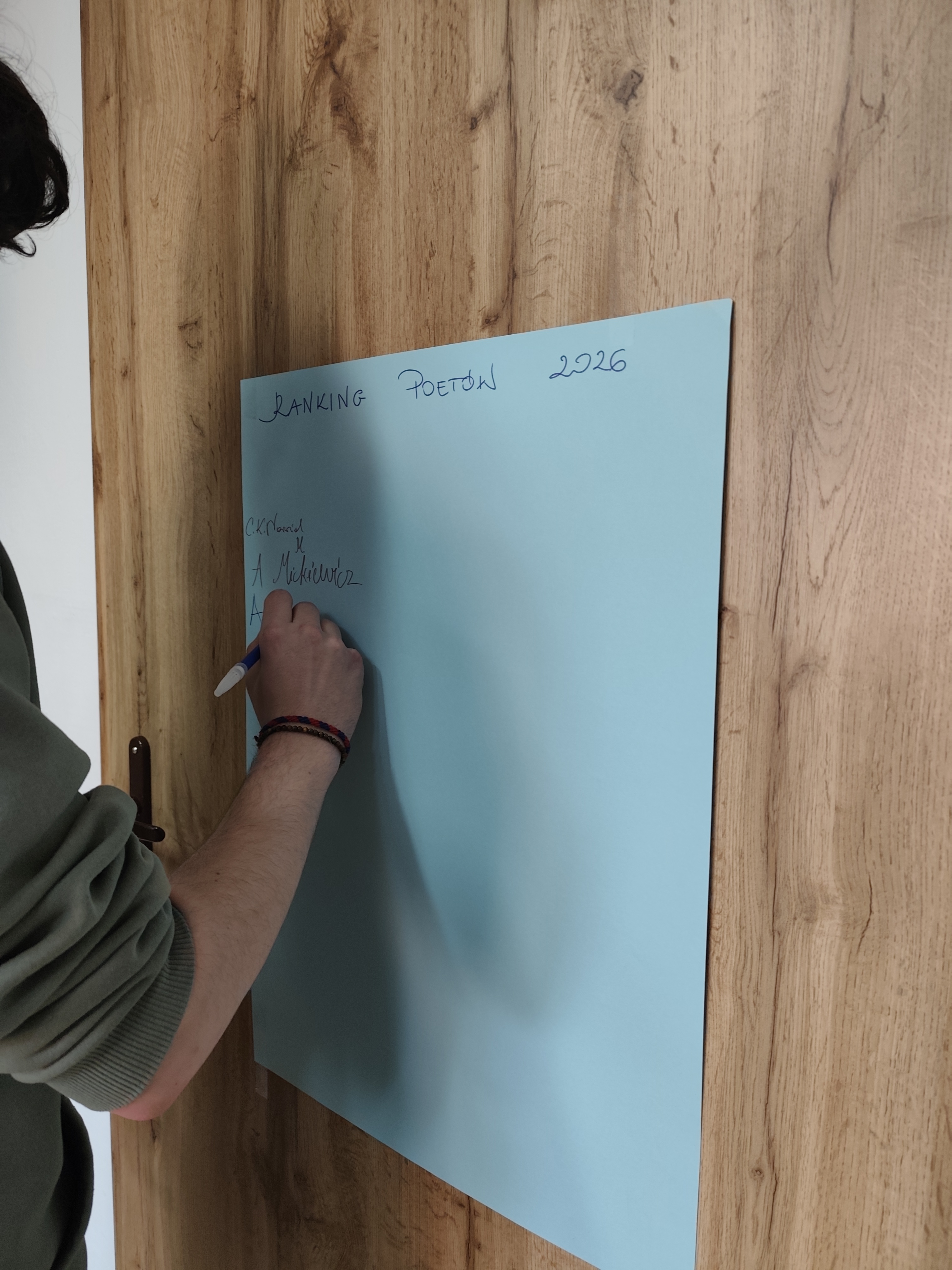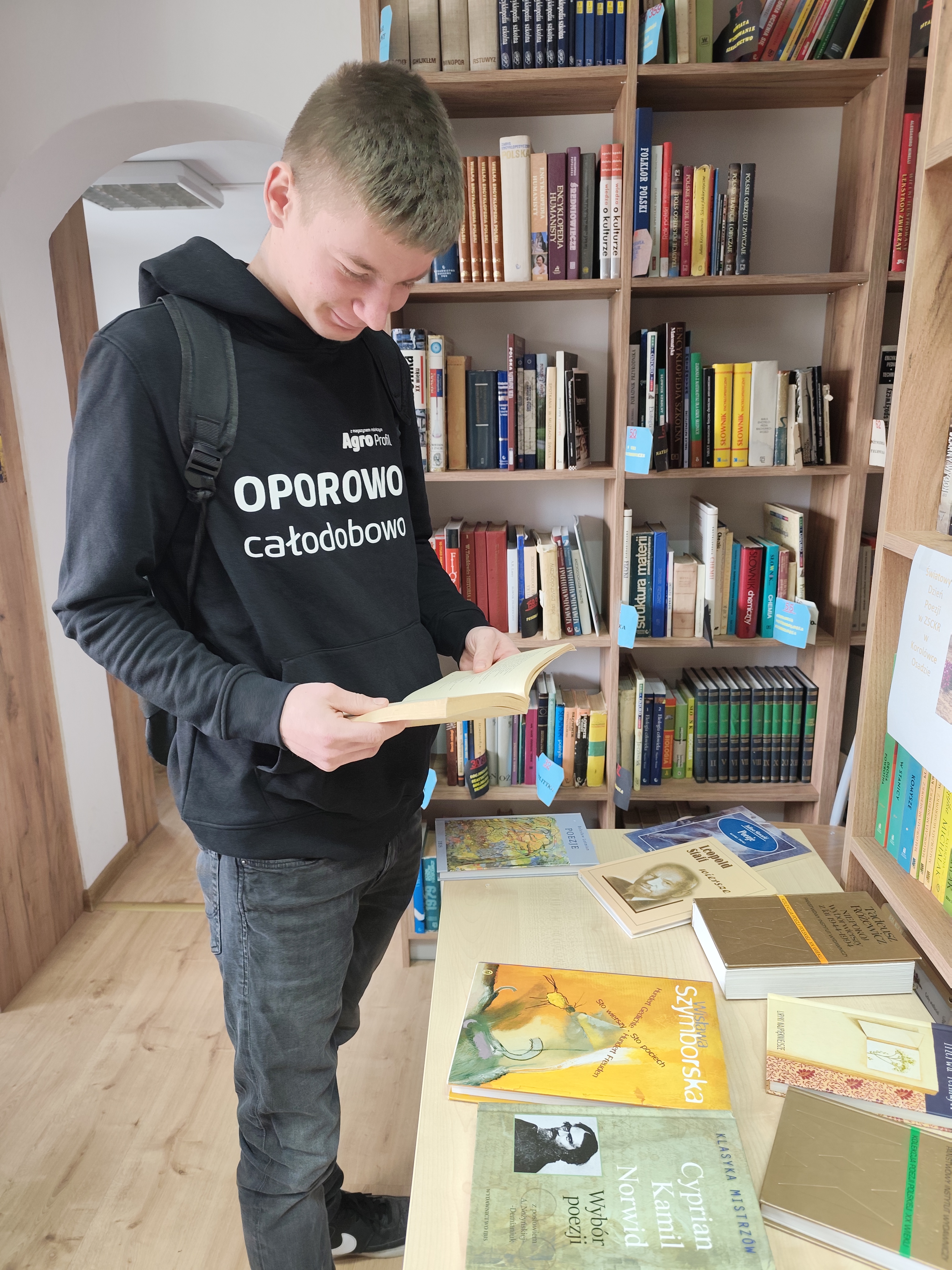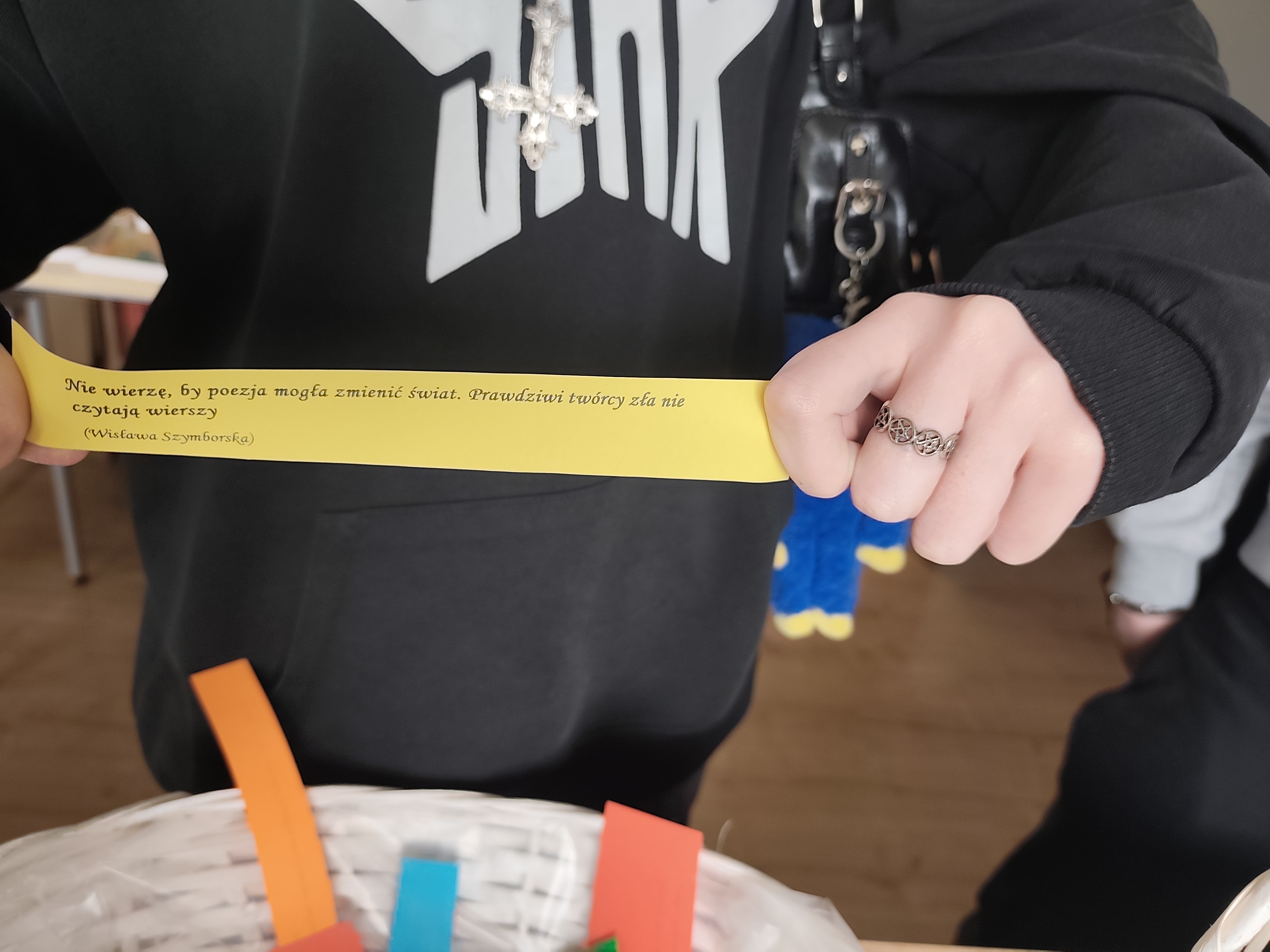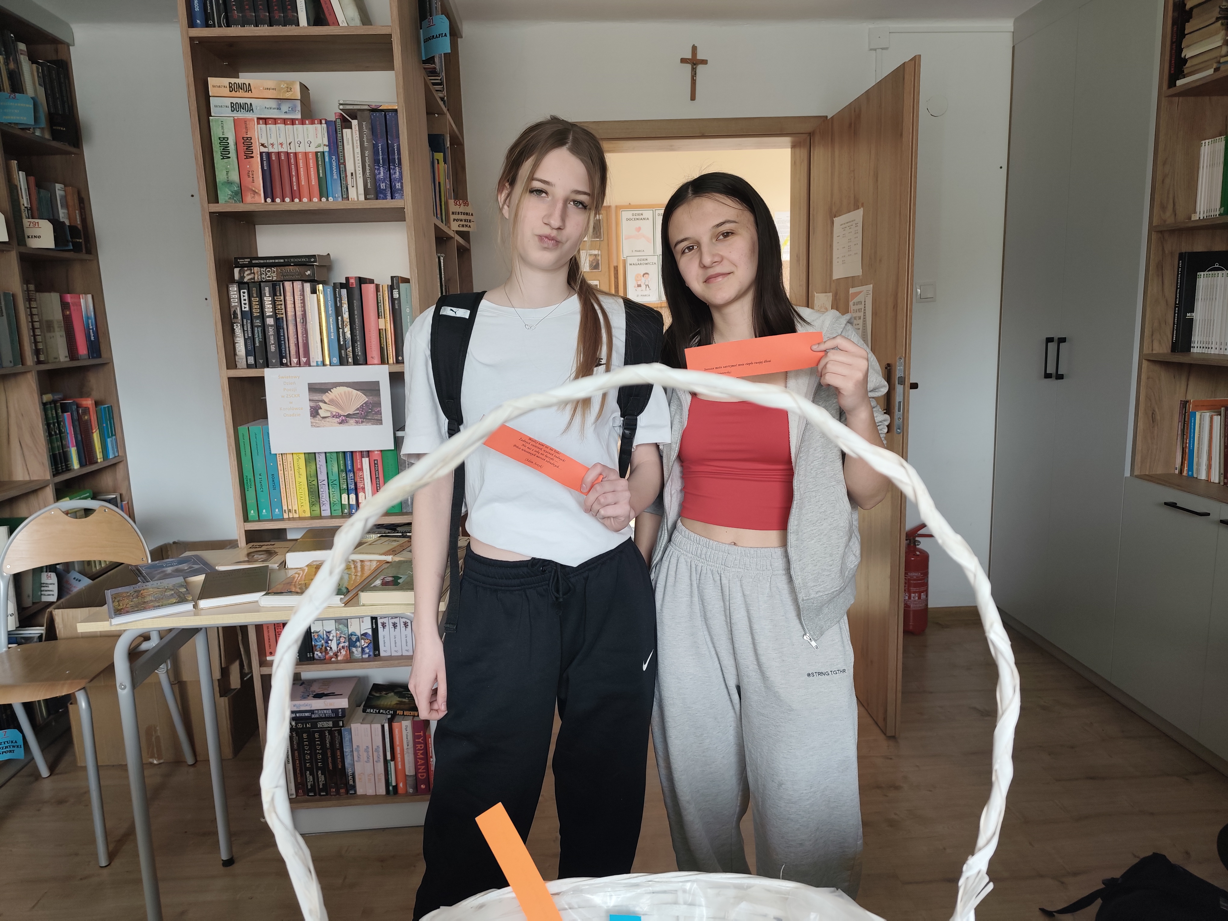 Dnia 24.03.2026 roku w bibliotece szkolnej odbyło się spotkanie z okazji Światowego Dnia Poezji. W wydarzeniu wzięli udział uczniowie różnych klas, którzy mieli okazję w ciekawy i angażujący sposób obcować z literaturą. Podczas spotkania uczniowie losowali kartki zawierające cytaty pochodzące z różnych utworów poetyckich i dzielili się swoimi refleksjami na temat wylosowanych fragmentów. Kolejnym elementem było stworzenie rankingu ulubionych poetów. Spotkanie przebiegło w miłej i twórczej atmosferze. Było doskonałą okazją do popularyzowania poezji oraz rozwijania zainteresowań czytelniczych wśród młodzieży.