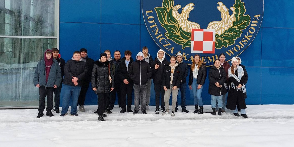W dniu 29-01-2026r. uczennice i uczniowie naszej szkoły, uczęszczający do szkolnej drużyny pożarniczej oraz szkolnego koła motoryzacyjnego wzięli udział w wyjeździe do Lotniczej Akademii Wojskowej w Dęblinie. W ten oto sposób rozwijali swoje zainteresowania oraz zapoznali się z bazą dydaktyczną uczelni, która jako jedyna w naszym kraju kształci pilotów wojskowych statków powietrznych – oficerów Wojska Polskiego.
