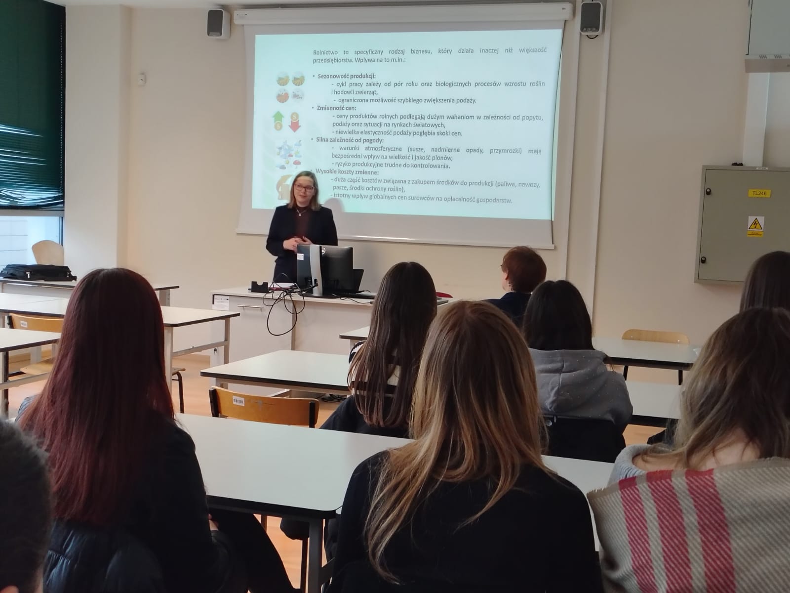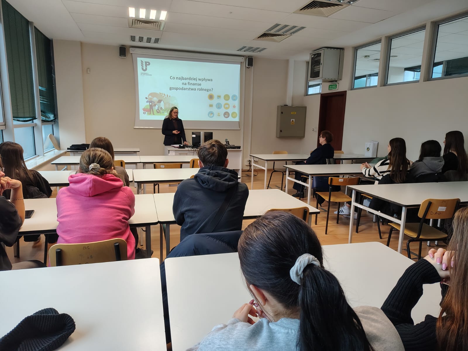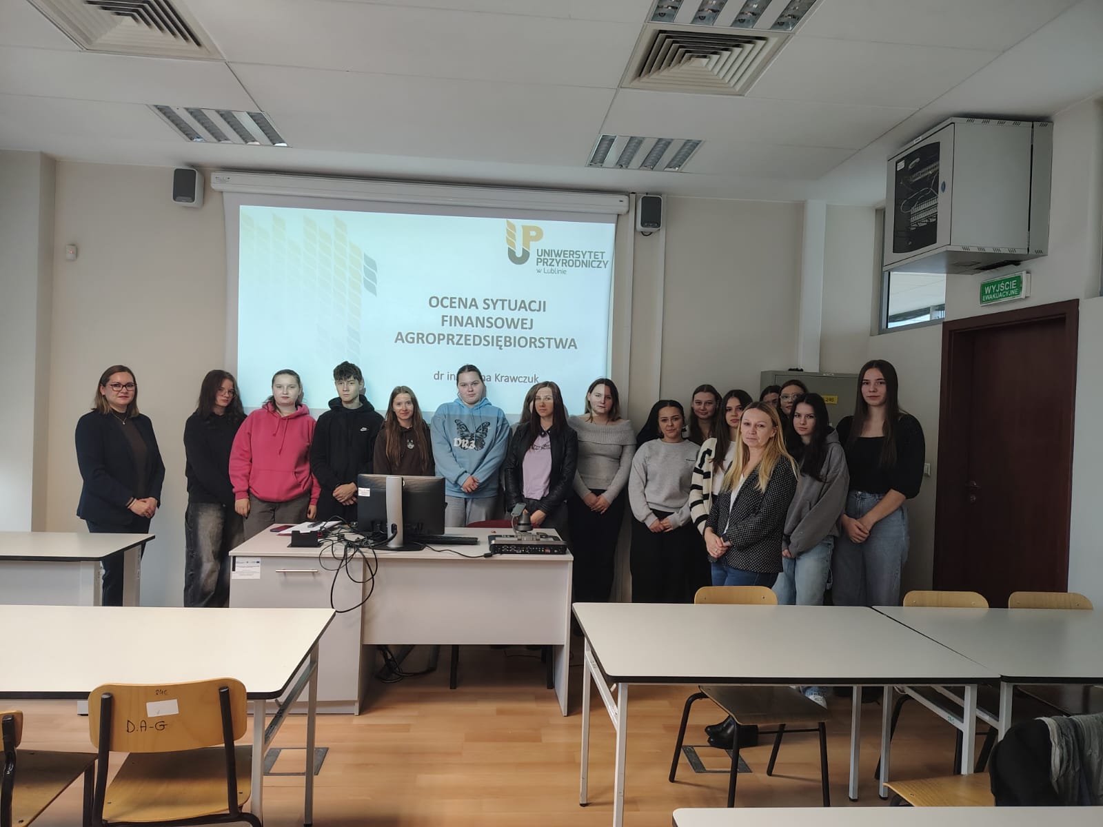 W dniu 02 grudnia 2025r w ramach projektu „Wysoka jakość kształcenia zawodowego w ZSCKR im. Ireny Kosmowskiej w Korolówce-Osadzie”, nr projektu FELU.10.04-IZ.00-0027/24, współfinansowanego ze środków Unii Europejskiej w ramach programu Fundusze Europejskie dla Lubelskiego 2021-2027, uczniowie klas IV i V kształcących w zawodzie technik agrobiznesu gościli na Uniwersytecie Przyrodniczym w Lublinie, gdzie uczestniczyli w wykładzie p.t. „Ocena sytuacji finansowej agroprzedsiębiorstwa”, przeprowadzonym przez Panią dr inż. Annę Krawczuk.