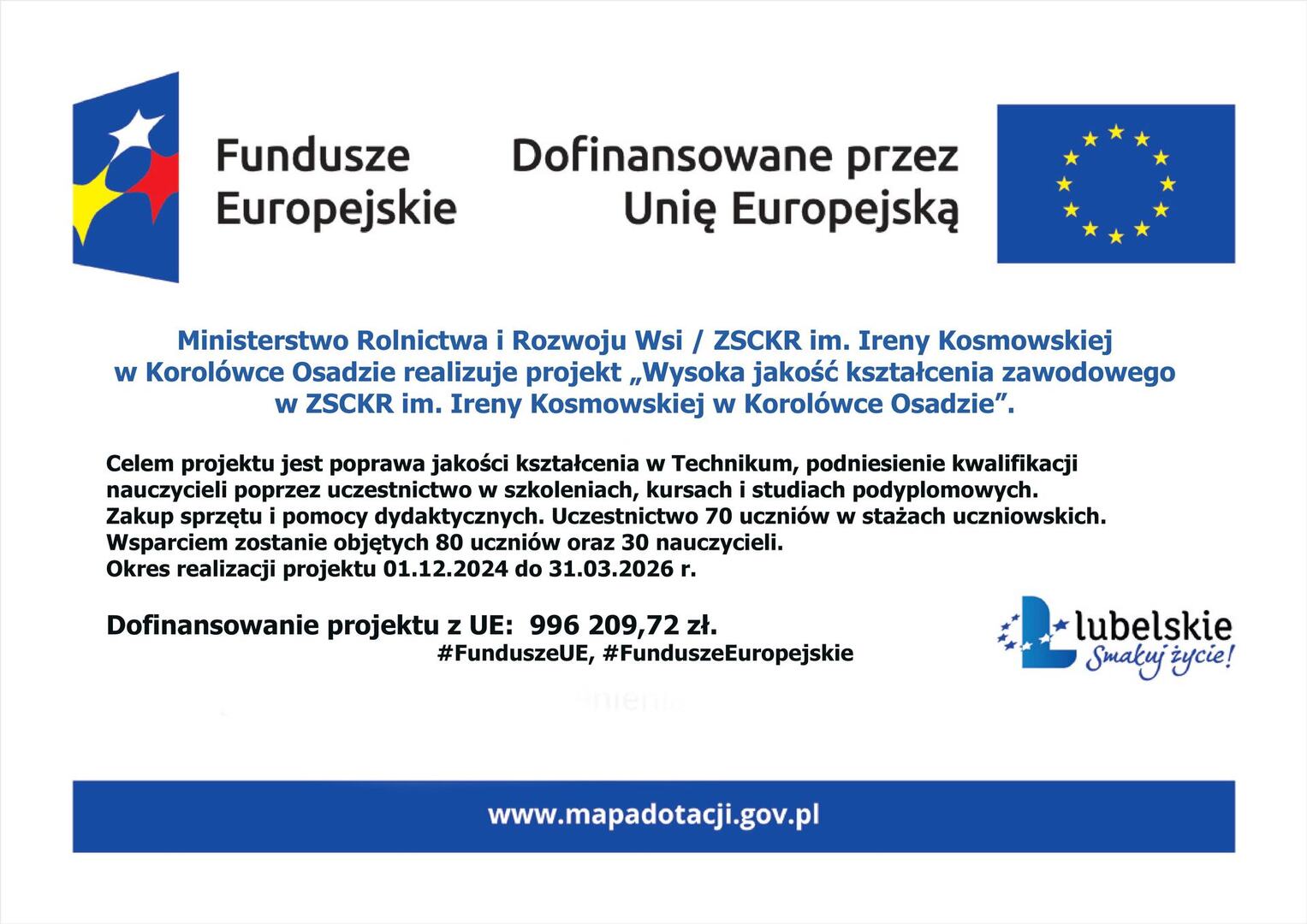 Projekt jest współfinansowany ze środków Unii Europejskiej w ramach programu Fundusze Europejskie dla Lubelskiego 2021-2027