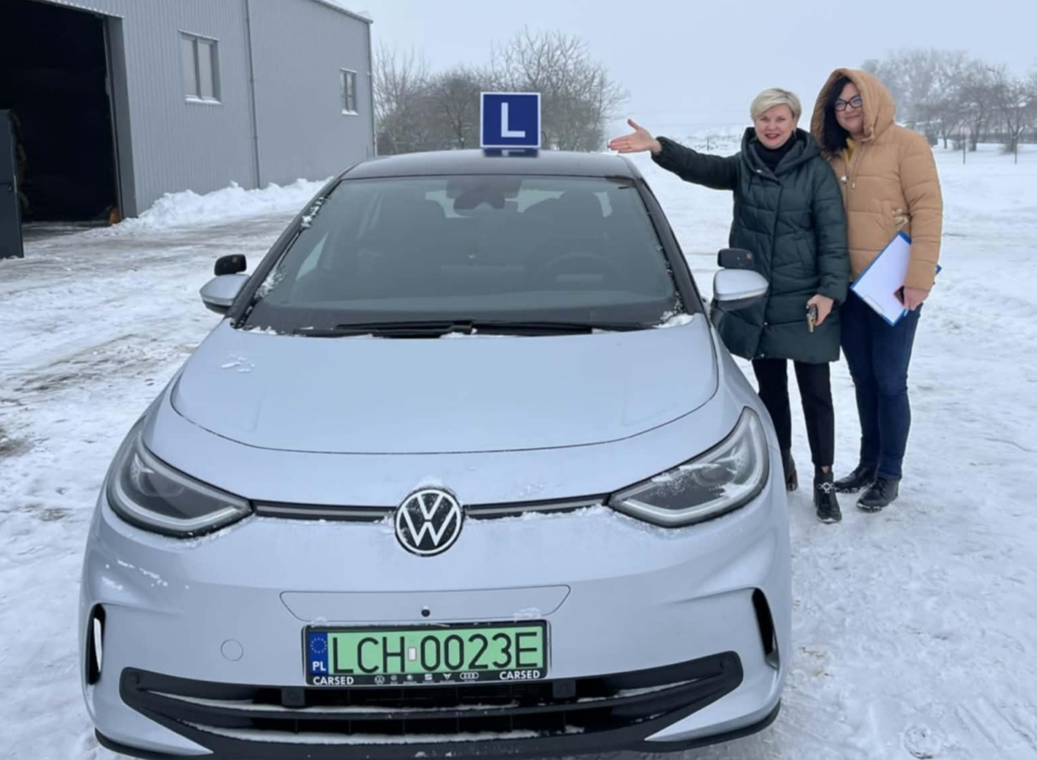 W dniu 15 stycznia 2026 roku, Wykonawca wyłoniony w przetargu dostarczył do siedziby ZSCKR w Okszowie fabrycznie nowy samochód osobowy marki Volkswagen ID.3 wersja PLUS, napędzany elektrycznie. Samochód poszerzy flotę pojazdów będących w naszych zasobach a uczniowie w ramach nauki jazdy kat. „B” będą mogli część godzin zrealizować pojazdem wyposażonym w automatyczną skrzynię biegów i najnowocześniejsze systemy sterowania.