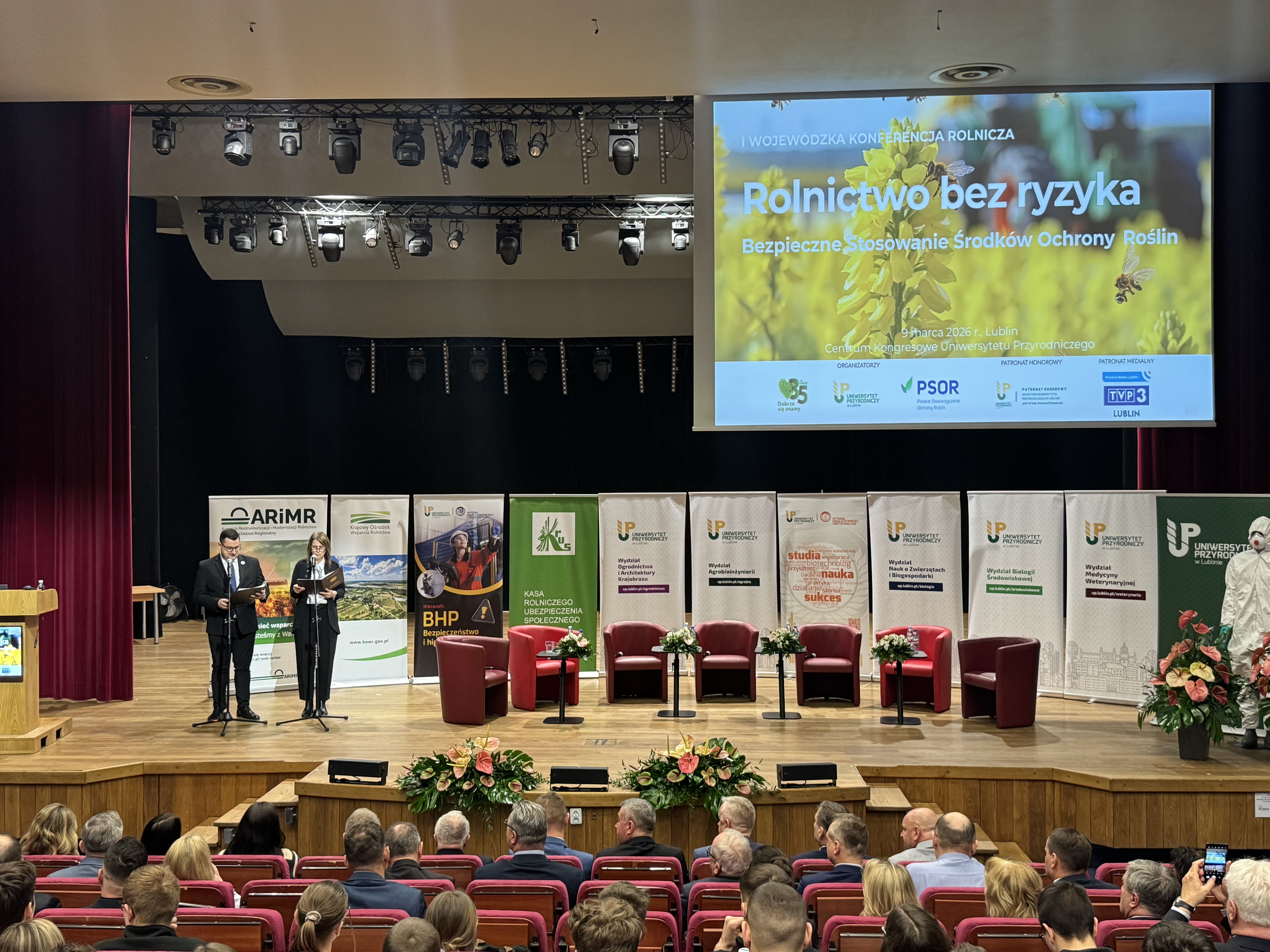 W dniu 09.03.2026 r. uczniowie 2BT wzięli udział w I Wojewódzkiej Konferencji Rolniczej „Rolnictwo bez ryzyka. Bezpieczne stosowanie środków ochrony roślin”. Wydarzenie zorganizowane przez Uniwersytet Przyrodniczy w Lublinie wraz z Kasą Rolniczego Ubezpieczenia Społecznego Oddziałem Regionalnym w Lublinie oraz Polskim Stowarzyszeniem Ochrony Roślin. Spotkanie to było okazją do rozmów o odpowiedzialnym i bezpiecznym stosowaniu środków ochrony roślin w nowoczesnym rolnictwie. W programie znalazły się spotkania z ekspertami, podczas których uczestnicy dowiedzieli się m.in., jak prawidłowo i bezpiecznie stosować środki ochrony roślin, jakie są konsekwencje ich niewłaściwego użycia, jak bezpiecznie kupować preparaty, jak chronić ludzi, pszczoły i środowisko oraz co zrobić z opakowaniami po środkach niebezpiecznych. Podczas przerw w wykładach nasi uczniowie mieli przyjemność zapoznać się z ofertą edukacyjną Uniwersytetu Przyrodniczego w Lublinie oraz wziąć udział w konkursie sprawdzający wiedzę uczestników konferencji. Opiekę nad uczniami sprawowali Rafał Pradun, Adam Kawiak, oraz Jakub Gielowski