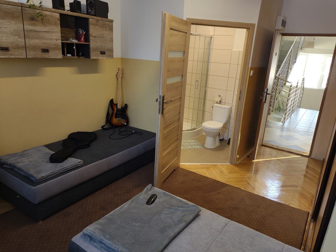 - bardzo dobre warunki mieszkaniowe – 2 lub 3 osobowe pokoje z łazienkami,