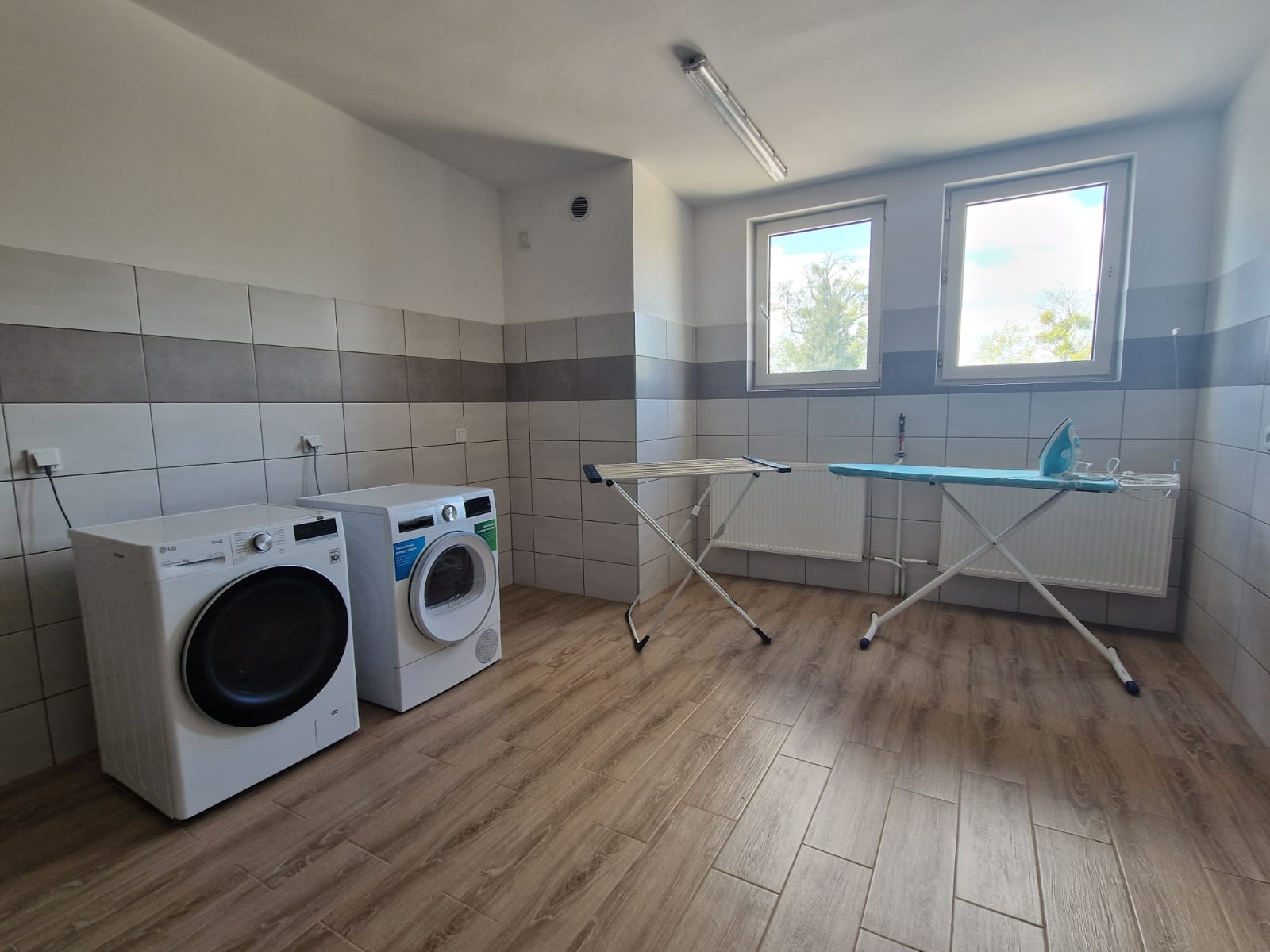 - pralnię na każdym piętrze i prasowalnię - żelazka, deski do prasowania,