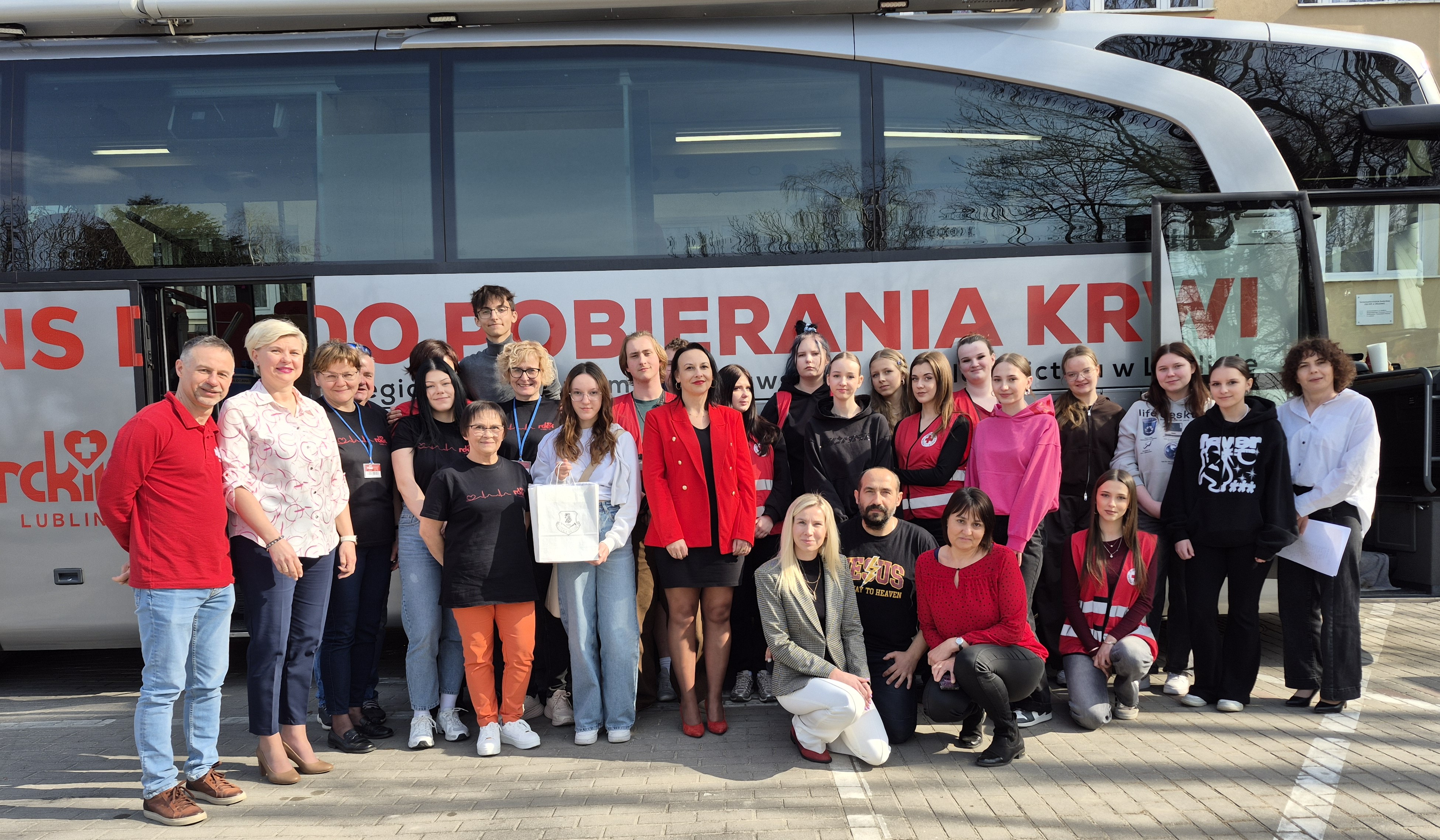 23 marca na szkolnym parkingu gościliśmy krwiobus z Regionalnego Centrum Krwiodawstwa i Krwiolecznictwa w Lublinie. W ramach akcji „Młoda Krew Ratuje Życie” wielu z nas zdecydowało się na konkretny gest wsparcia dla tych, którzy na tę pomoc czekają. W wydarzeniu wzięli udział uczniowie, pracownicy oraz Dyrektor szkoły, Edyta Szymczuk i Wicedyrektor, Katarzyna Wawryniuk. Bardzo nas cieszy, że w ZSCKR tworzymy zgraną ekipę, na którą zawsze można liczyć. Każda oddana jednostka krwi to realna pomoc dla kogoś, kto walczy o zdrowie. Wielkie brawa dla odważnych!