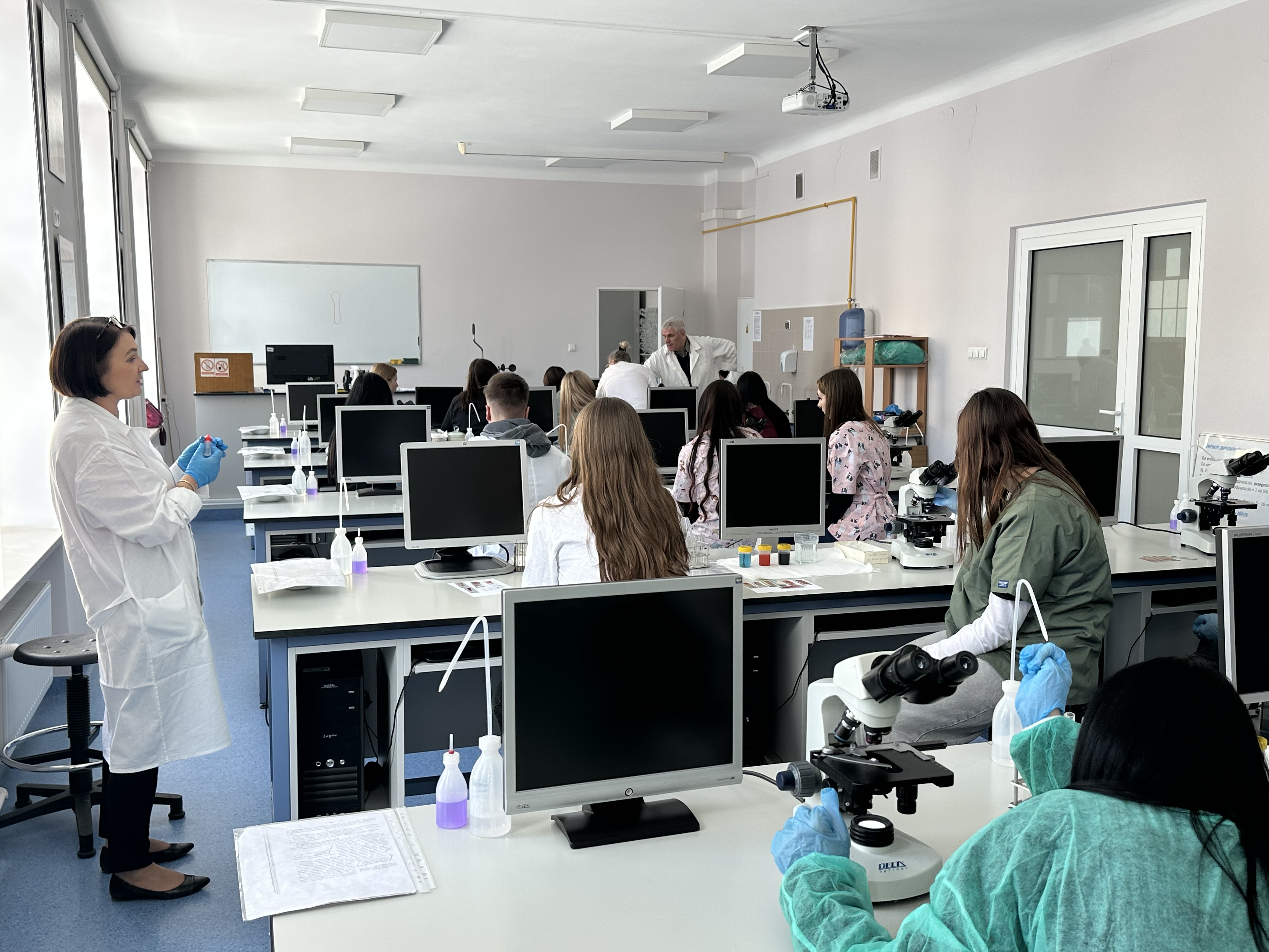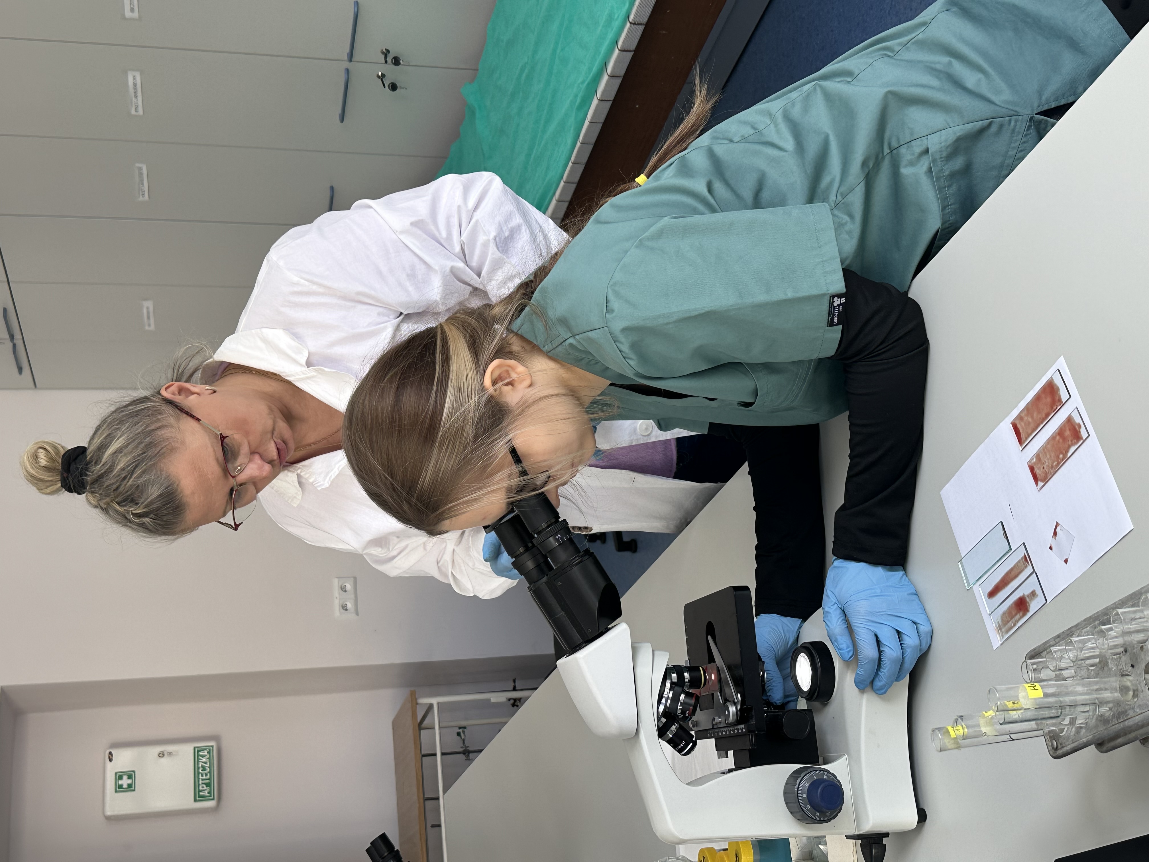 Podczas zajęć laboratoryjnych młodzież samodzielnie pracowała z krwią – rozpoznawała jej elementy morfotyczne u różnych gatunków zwierząt, obserwowała zachowanie krwinek w roztworach o różnym ciśnieniu osmotycznym oraz zjawisko hemolizy.