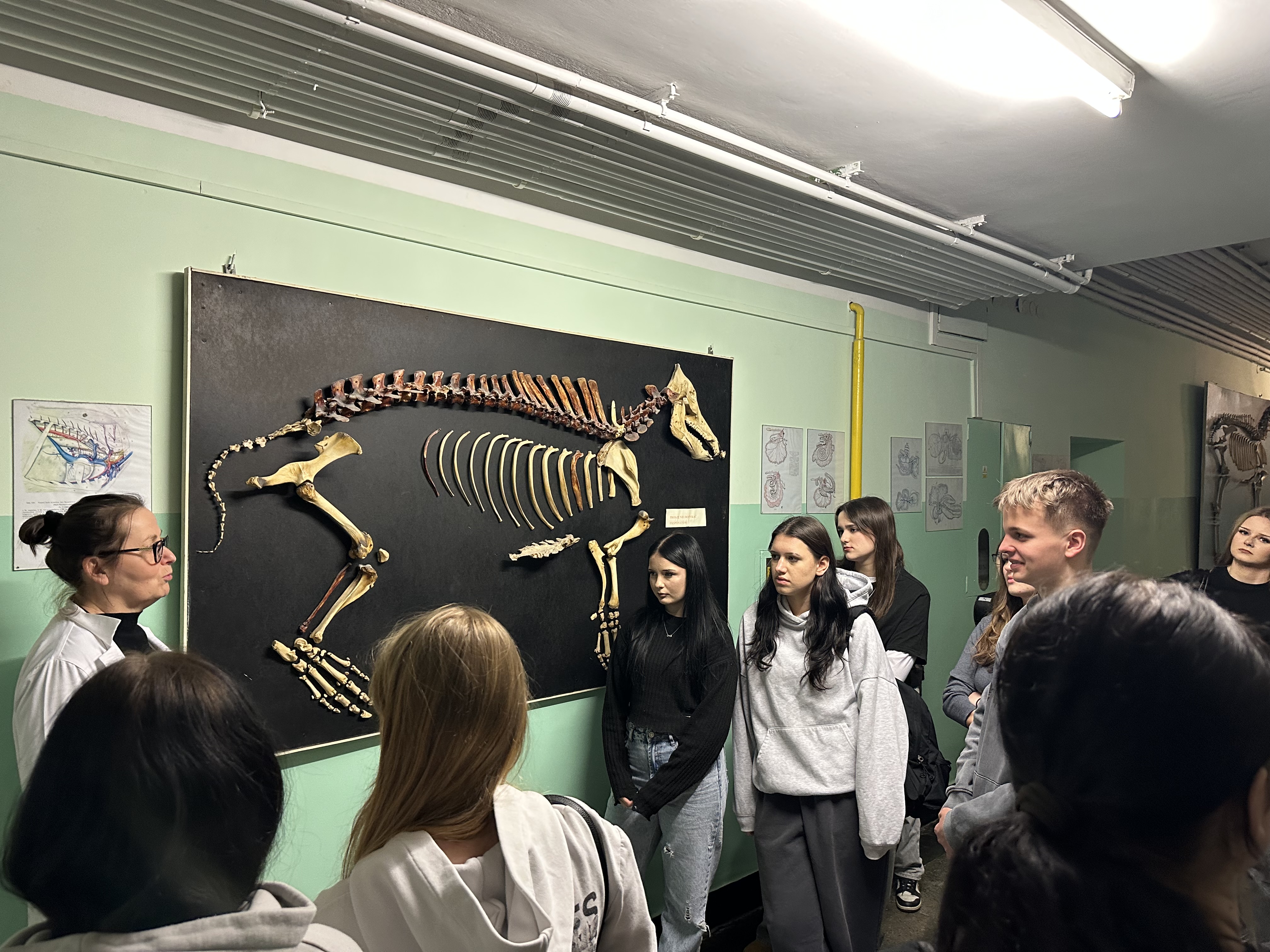 Kolejnym etapem była wizyta w prosektorium, do którego uczniowie dotarli tzw. „drogą krzyżową” – charakterystycznym korytarzem znanym studentom weterynarii. Tam uczniowie preparowali serca świń i w praktyce poznawali ich budowę – komory, przedsionki, zastawki oraz naczynia krwionośne. Duże wrażenie zrobiła również wizyta w muzeum anatomii, m.in. ekspozycja płuc palacza.