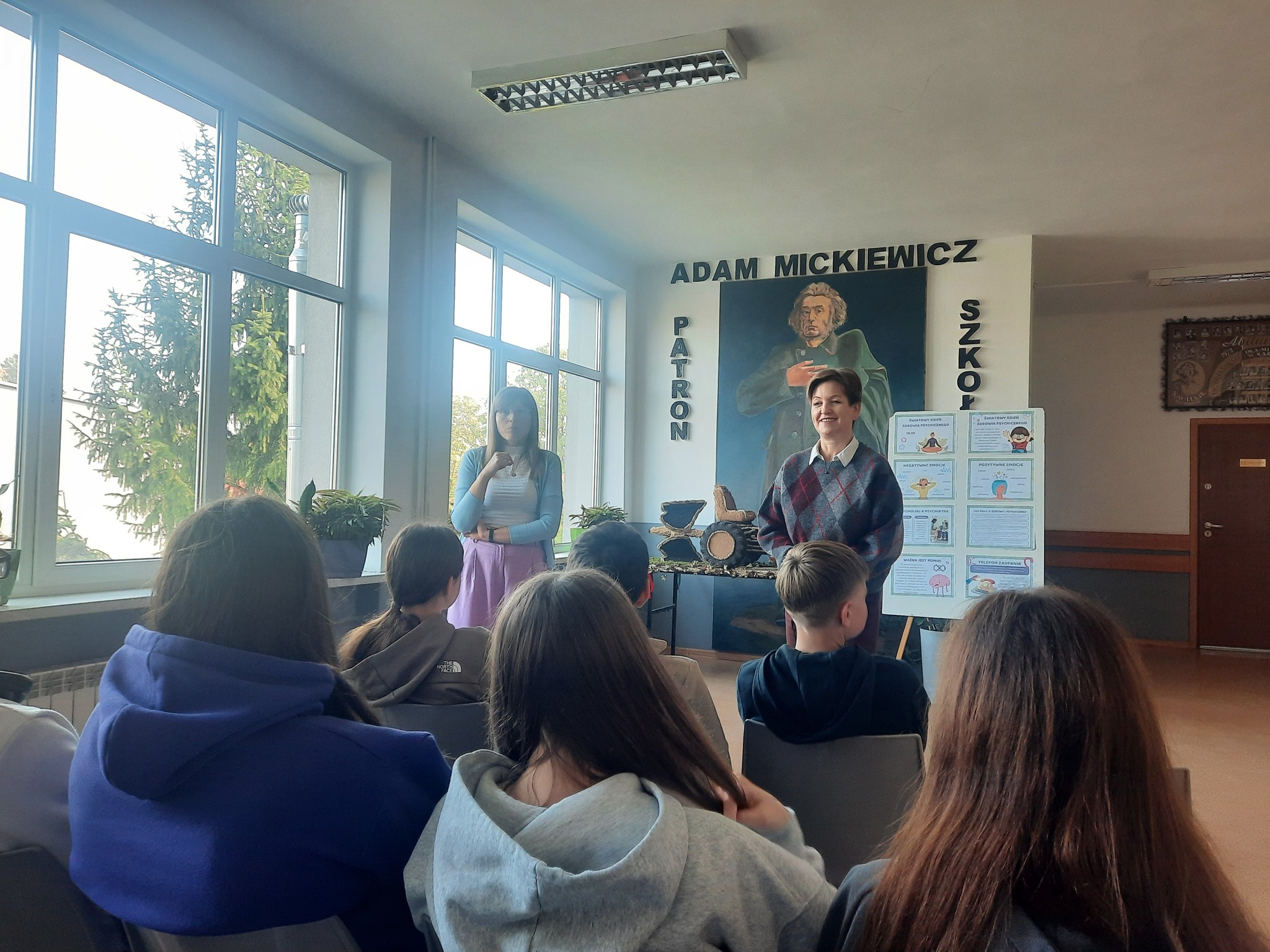 Dzisiaj w naszej szkole z okazji przypadającego na dzień 10 października Światowego Dnia Zdrowia Psychicznego uczniowie klas I T, III T, oraz IV TW uczestniczyli w prowadzonych przez pedagoga i psychologa szkolnego spotkaniach psychoedukacyjnych na temat zagrożeń oraz sposobów dbania o zdrowie psychiczne. Wcześniej w kl. IIT i IIB przeprowadzono zajęcia warsztatowe o tej tematyce. Mamy nadzieję, że te działania pomogą młodym ludziom w radzeniu sobie z wyzwaniami współczesnego świata…