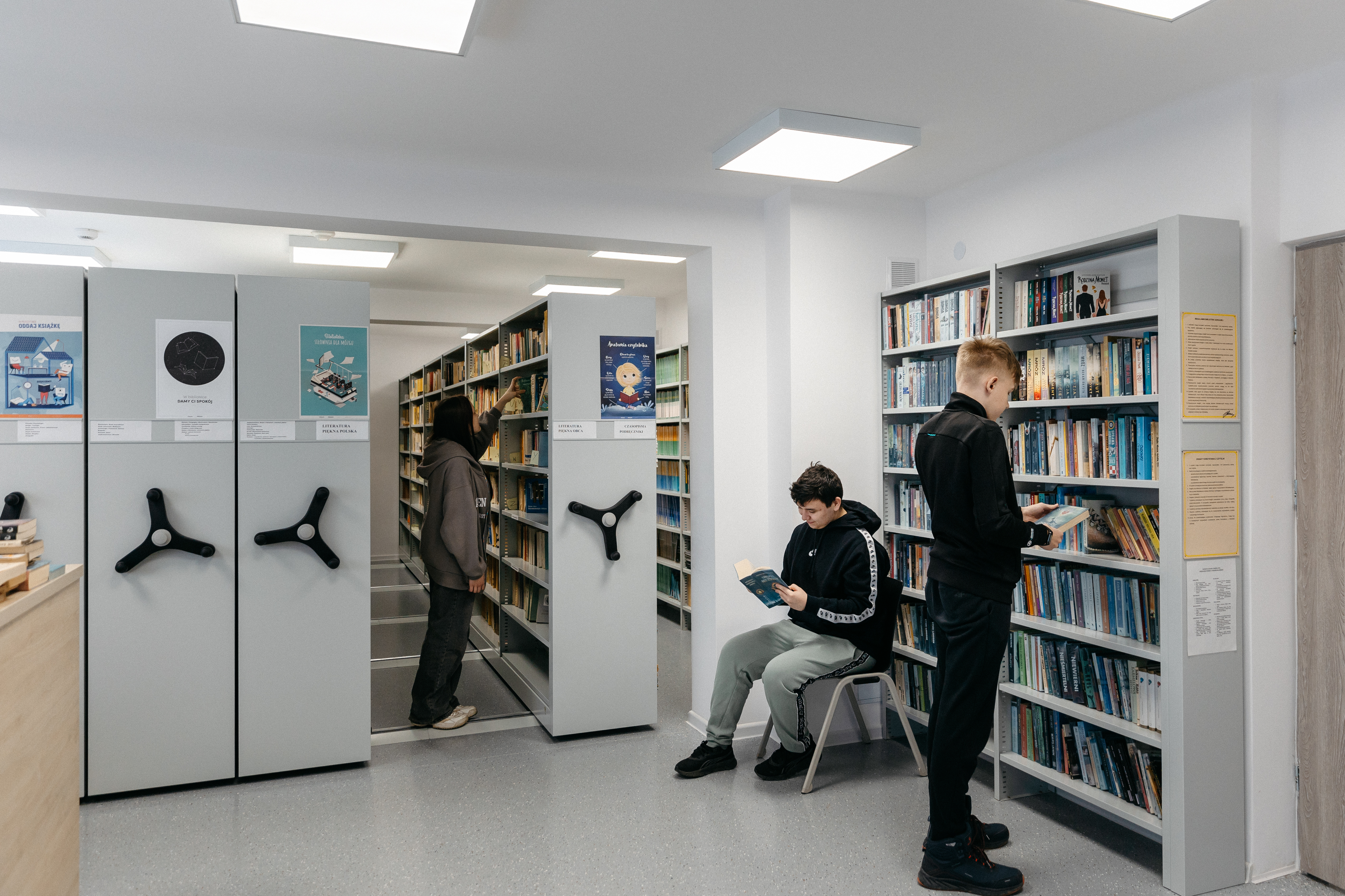 Biblioteka umożliwia korzystanie z materiałów multimedialnych oraz zasobów edukacyjnych wspierających realizację programów nauczania. To także miejsce cichej pracy, przygotowywania się do zajęć, projektów i konkursów. Regularnie organizowane są działania promujące czytelnictwo, takie jak wystawy tematyczne czy akcje czytelnicze, które zachęcają uczniów do odkrywania świata książek i rozwijania własnych pasji.