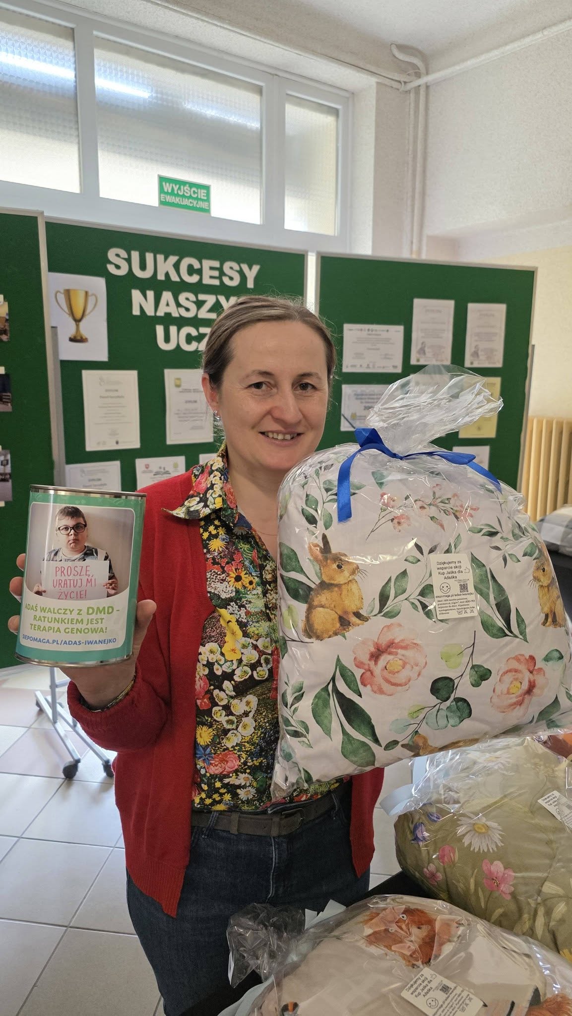 W dniach 23–24 marca 2026 r. Szkolne Koło Wolontariatu zorganizowało kiermasz poduszek, z którego dochód został przeznaczony na leczenie Adasia Iwanejko, chorującego na dystrofię mięśniową Duchenne’a.