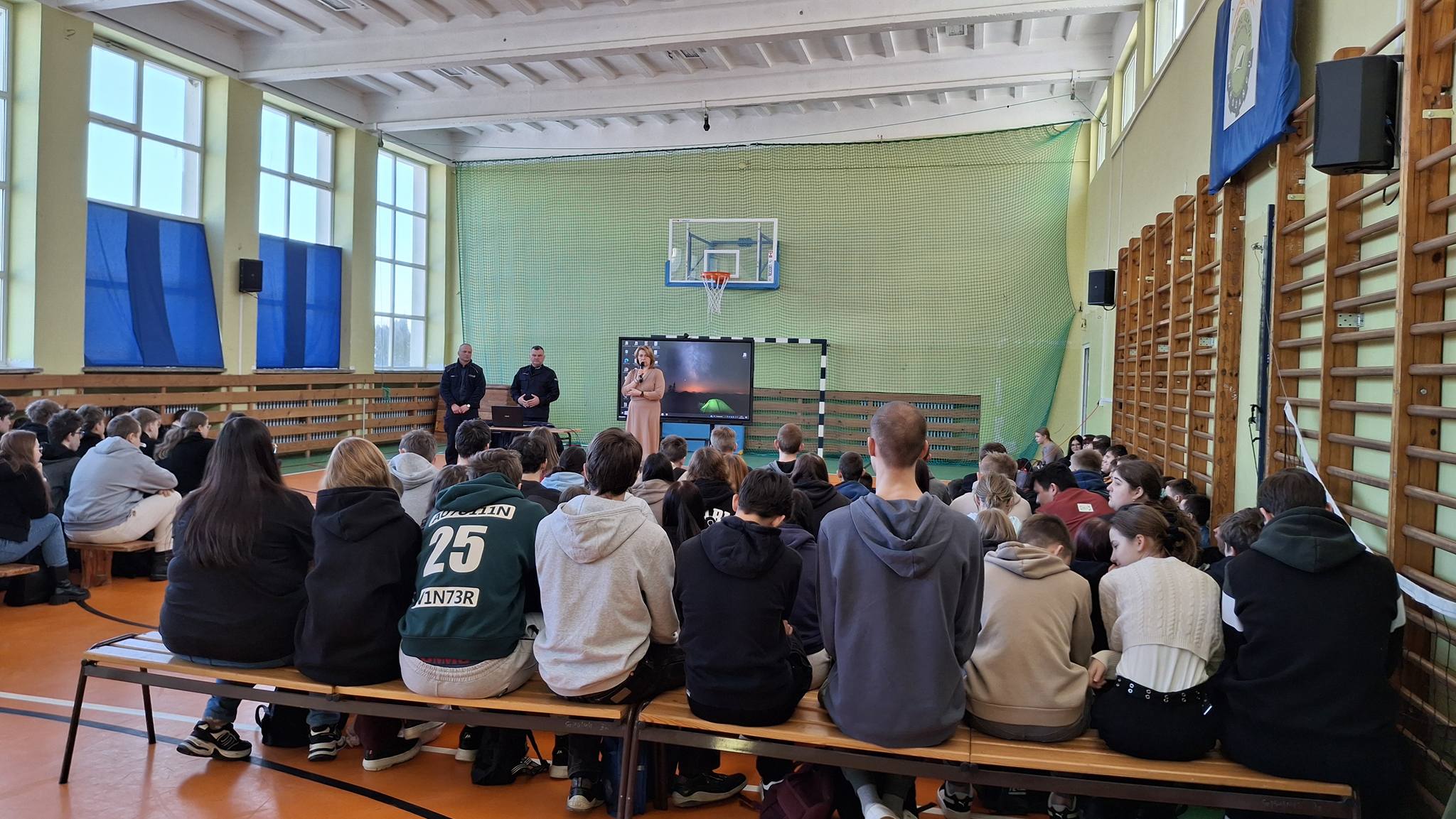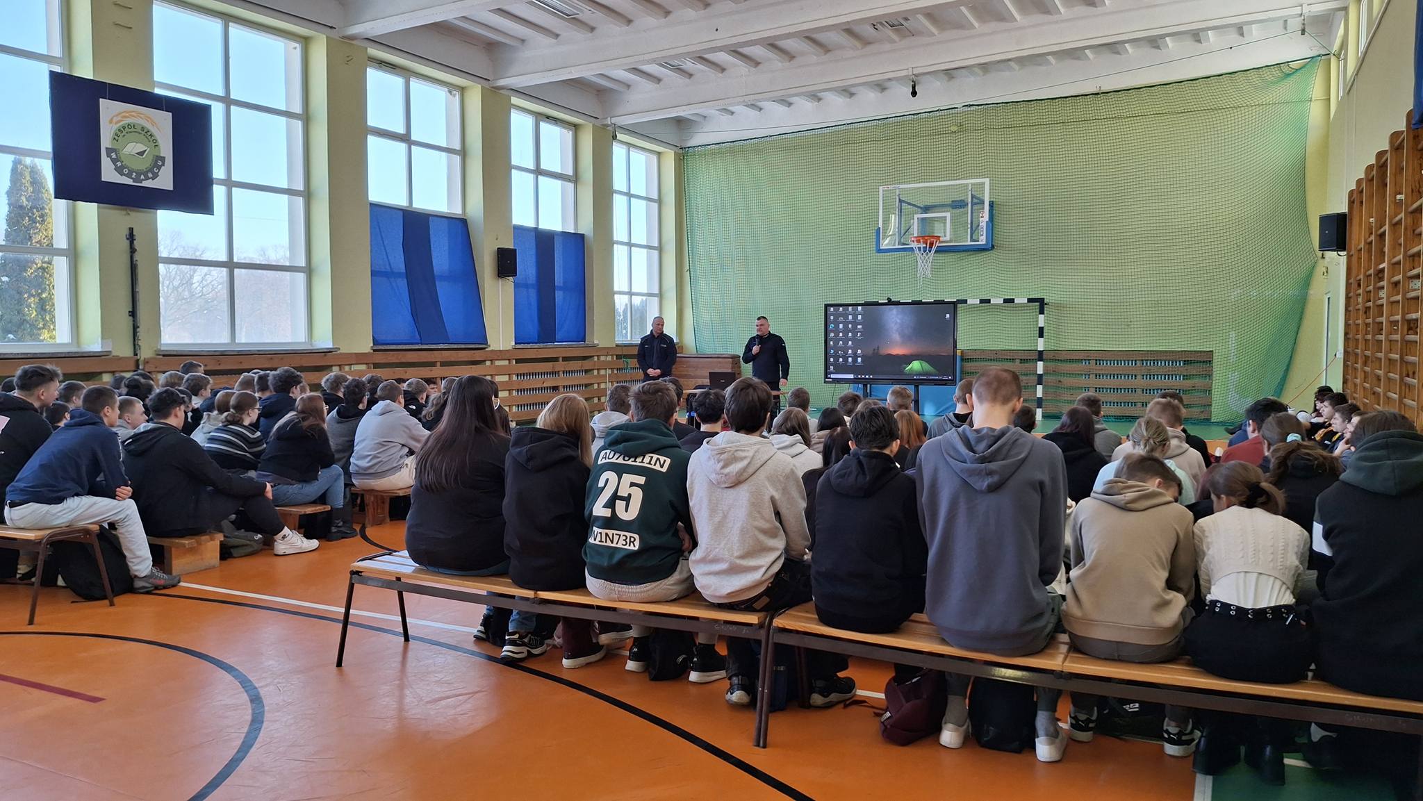 Spotkanie miało charakter edukacyjny i profilaktyczny, a uczniowie mieli możliwość zadawania pytań i aktywnego udziału w rozmowie. Dziękujemy funkcjonariuszom Policji za cenną lekcję i zaangażowanie w troskę o bezpieczeństwo naszej młodzieży.