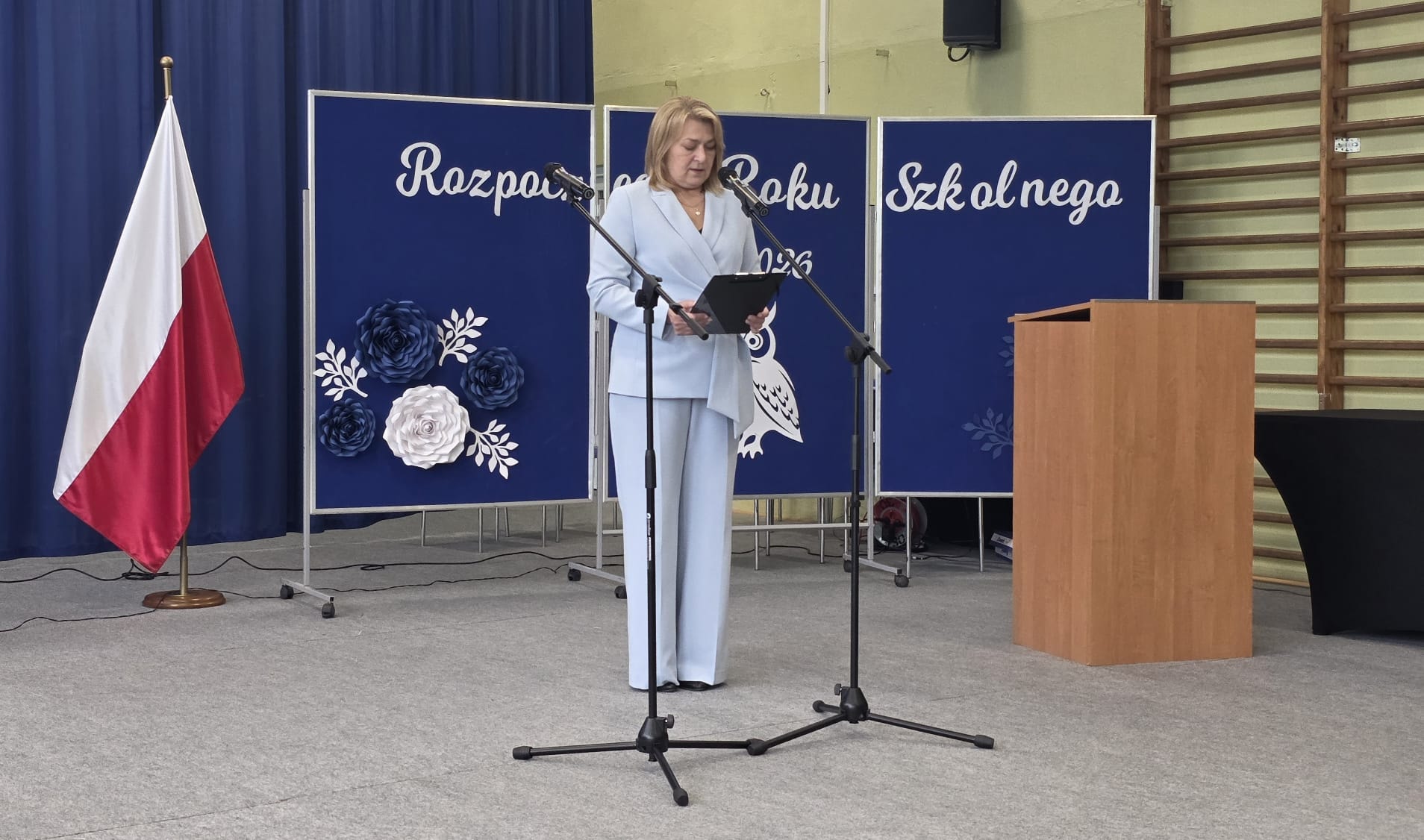 Pani dyrektor Renata Majewska serdecznie powitała uczniów, rodziców, nauczycieli oraz zaproszonych gości, szczególnie ciepło kierując słowa do nowych uczniów, którzy dołączyli do naszej społeczności.