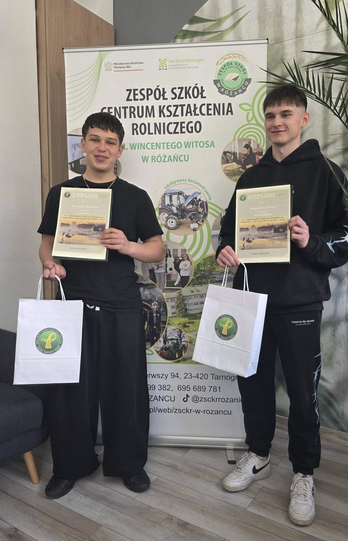 Jak już wcześniej informowaliśmy, nasi uczniowie – Mateusz Maksim oraz Sebastian Goch – zostali laureatami V Ogólnopolskiego Konkursu Fotograficznego „Kalejdoskop – cztery pory roku w rolnictwie – jesień”, organizowanego przez Zespół Szkół Centrum Kształcenia Rolniczego w Swarożynie.