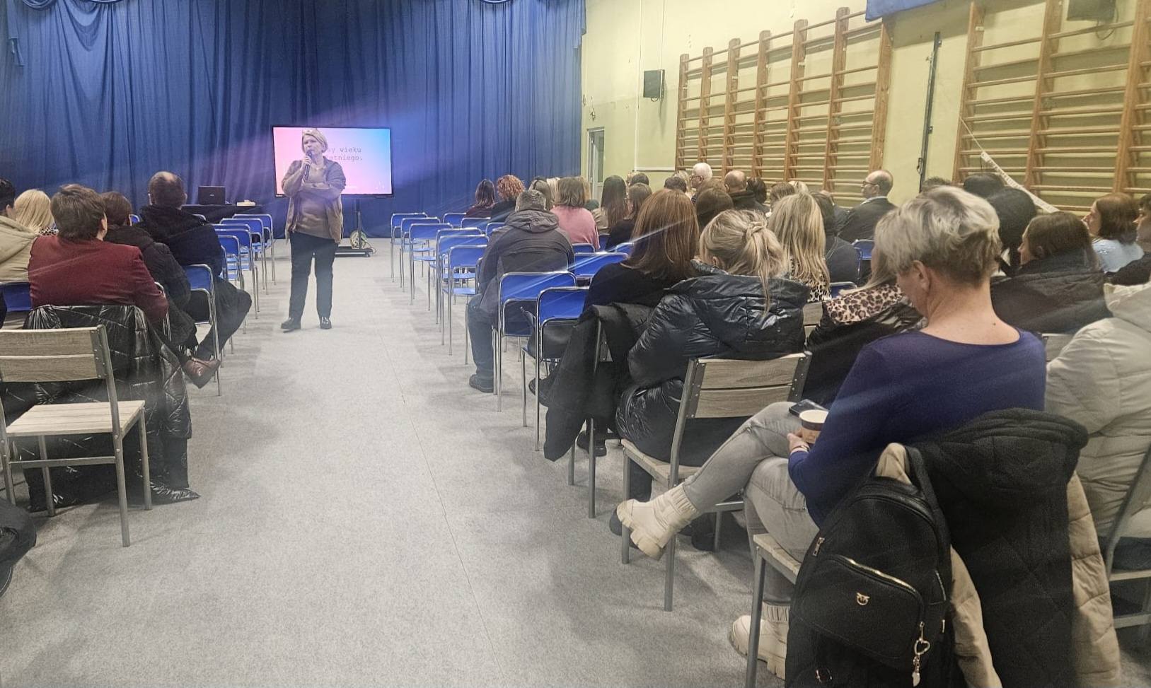 Gościem spotkania była pani Katarzyna Pluta – pedagog, nauczyciel, wieloletni dyrektor szkół publicznych i niepublicznych, a także suicydolog, która w sposób profesjonalny i empatyczny przybliżyła rodzicom problematykę trudności emocjonalnych i rozwojowych, z jakimi mierzą się nastolatkowie.
