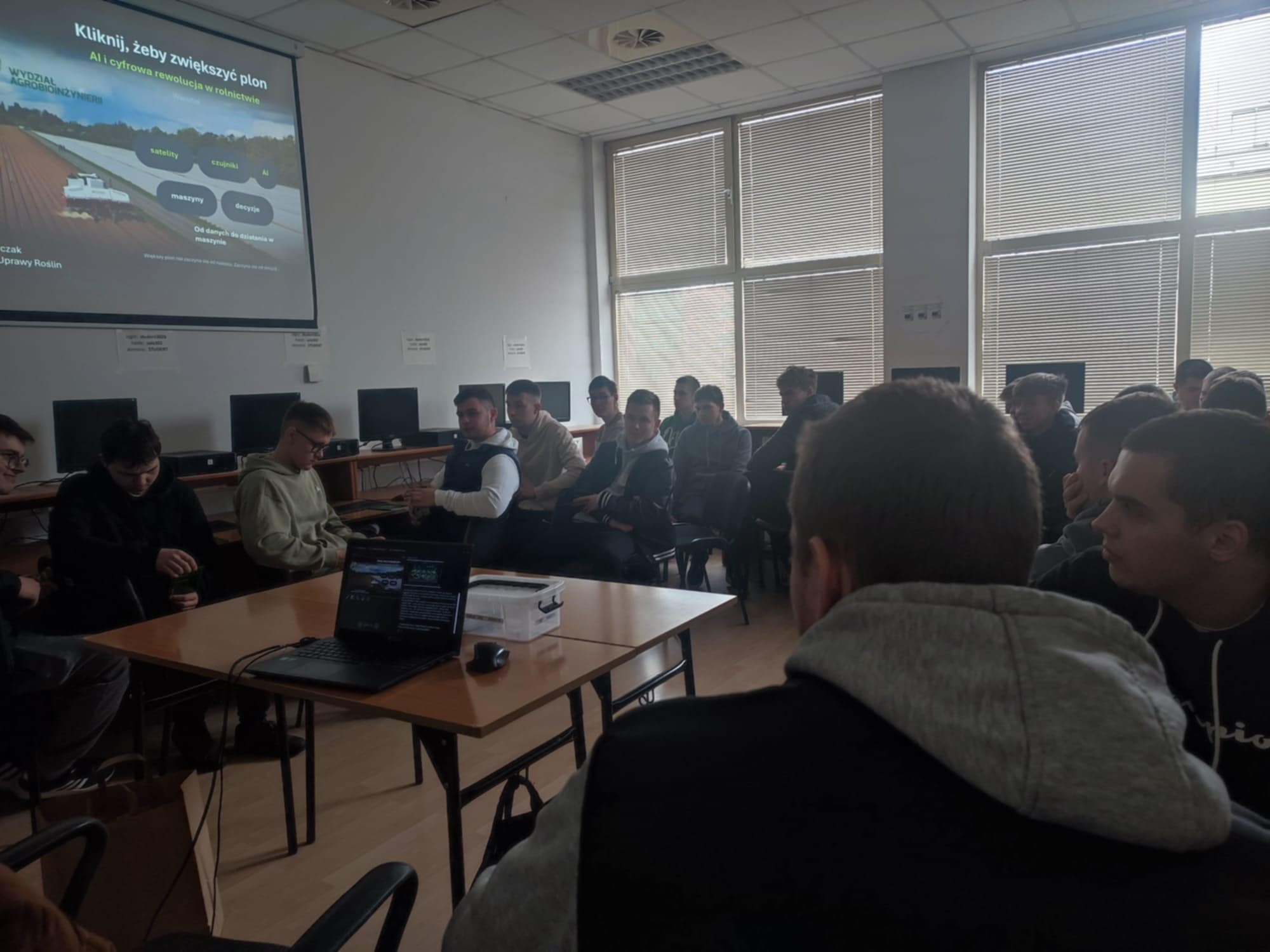 Dodatkowo dla uczniów tej klasy przygotowano warsztaty " Kliknij, żeby zwiększyć plon- AI i cyfrowa rewolucja w rolnictwie". Uczniowie mogli analizować rzeczywiste mapy pola przy użyciu profesjonalnych platform do zarządzania gospodarstwem i systemów analizy danych wykorzystywanych w nowoczesnym rolnictwie, podejmowali decyzje dotyczące nawożenia i zarządzania uprawą przy ograniczonym budżecie, a następnie porównywali swoje strategie z rekomendacjami generowanymi przez narzędzia analityczne i elementy sztucznej inteligencji.