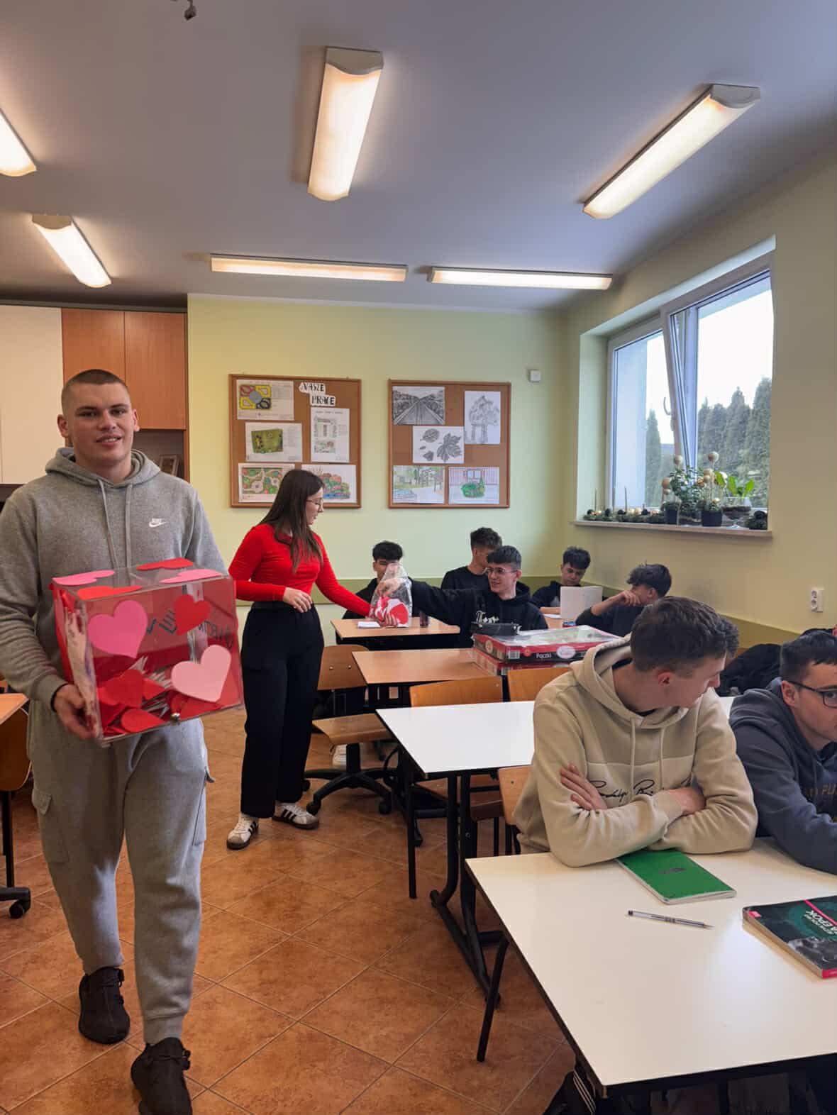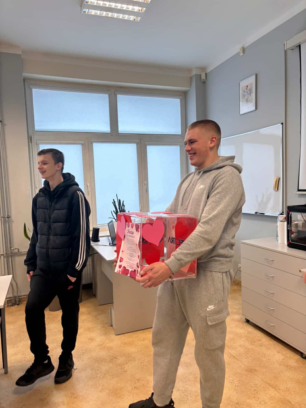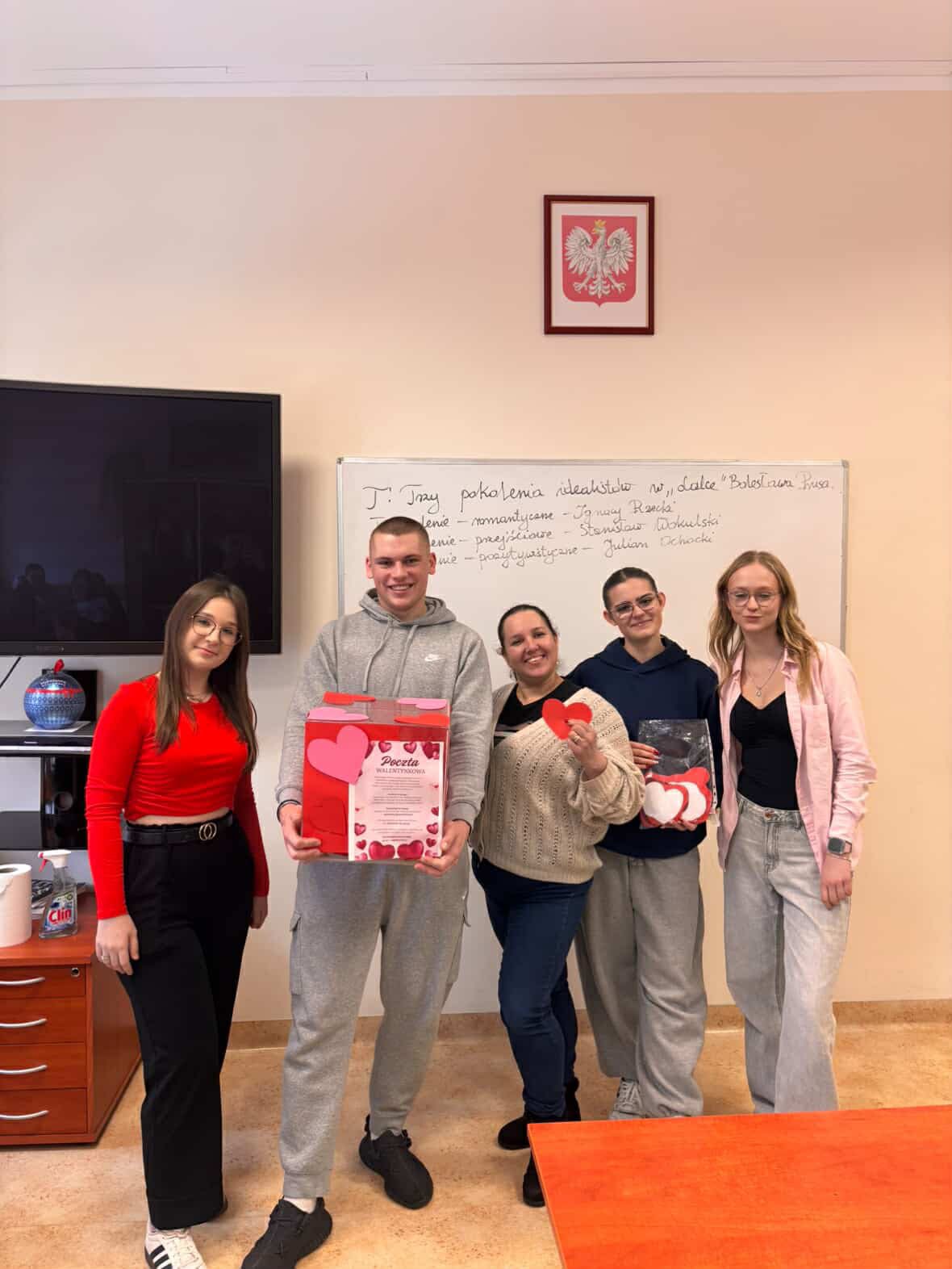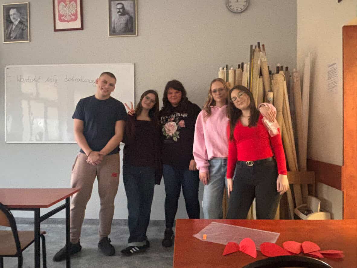 Serdecznie dziękujemy Panu Dyrektorowi za umożliwienie przeprowadzenia tej pięknej akcji oraz okazane wsparcie. Szczególne podziękowania kierujemy także do pani Edyty Krasnodębskiej wraz z klasą architektury za pomoc w przygotowaniu i wycinaniu walentynek – Wasze zaangażowanie i kreatywność sprawiły, że wszystko wyglądało naprawdę wyjątkowo.