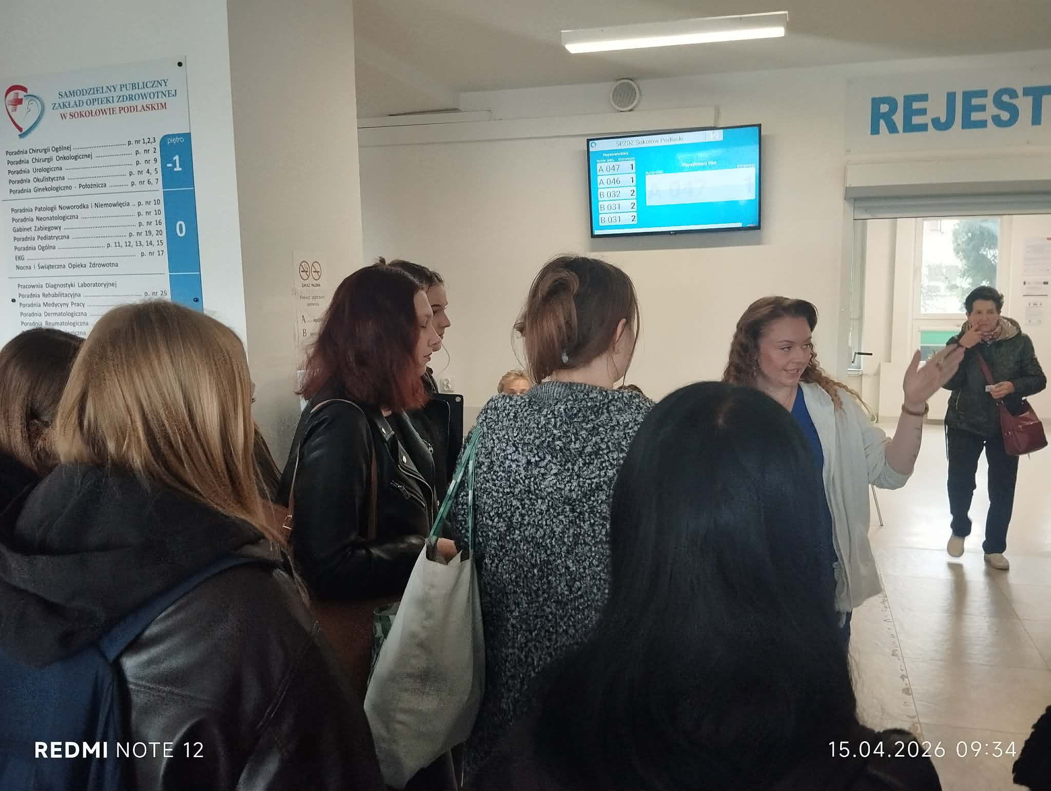 15.04.2026 r. uczennice zainteresowane kontynuowaniem nauki w zawodach medycznych skorzystały z zaproszenia SPZOZ w Sokołowie Podlaskim i zwiedziły szpital, ze szczególnym uwzględnieniem oddziału ginekologiczno-położniczego.