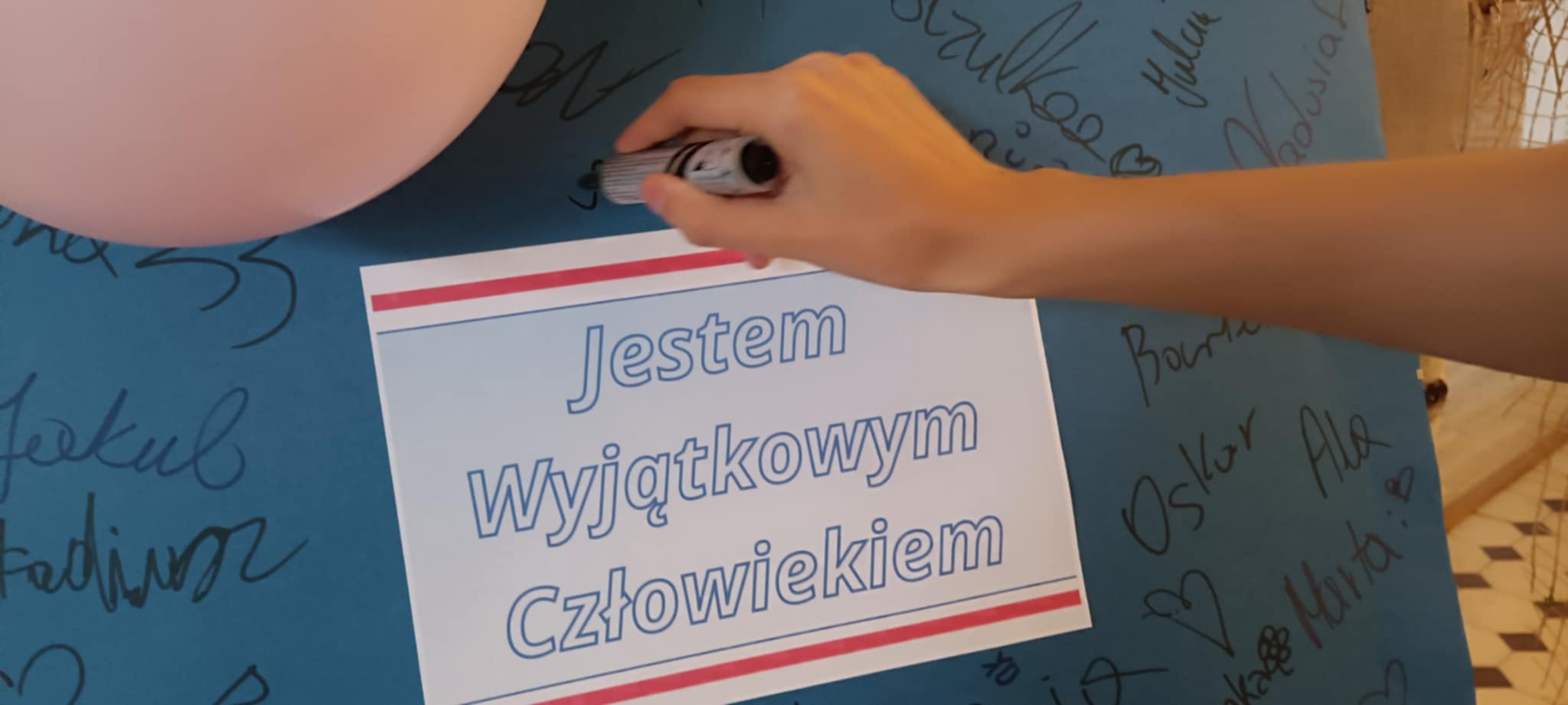 Następnie każdy podpisywał się na specjalnie przygotowanej tablicy, by podkreślić, że każdy z nas zasługuje na szacunek i akceptację – także od samego siebie. 💫