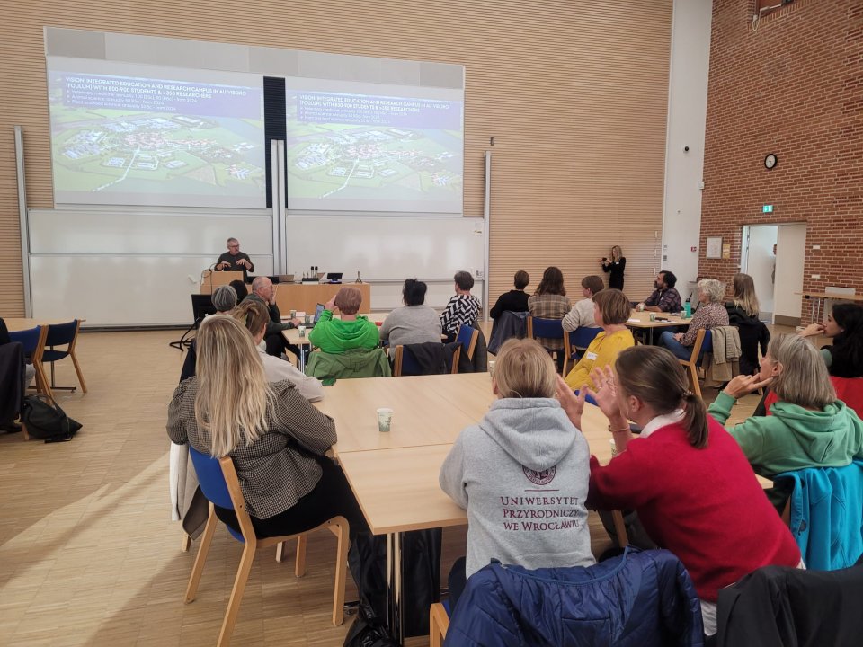 Podczas wizyty w AU Viborg zapoznaliśmy się z systemami agriwoltaicznymi z projektu Value4Farm, najnowocześniejszymi badaniami w zakresie rolnictwa precyzyjnego i zaawansowanymi ośrodkami badań nad zwierzętami.