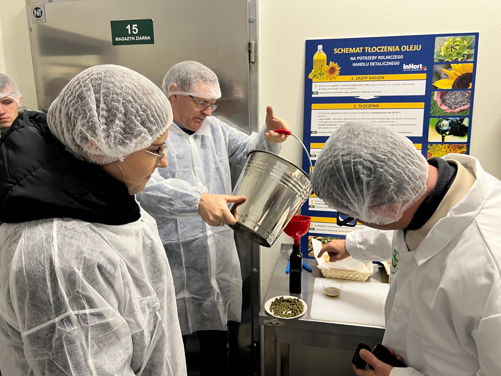 Szkolenie z zakresu tłoczenia olejów roślinnych poprowadził Kierownik Centrum Przetwórstwa Produktów Ogrodniczych – inż. Sebastian Siarkowski z Instytutu Ogrodnictwa – Państwowego Instytutu Badawczego. Dodatkowo uczestnicy wzięli udział