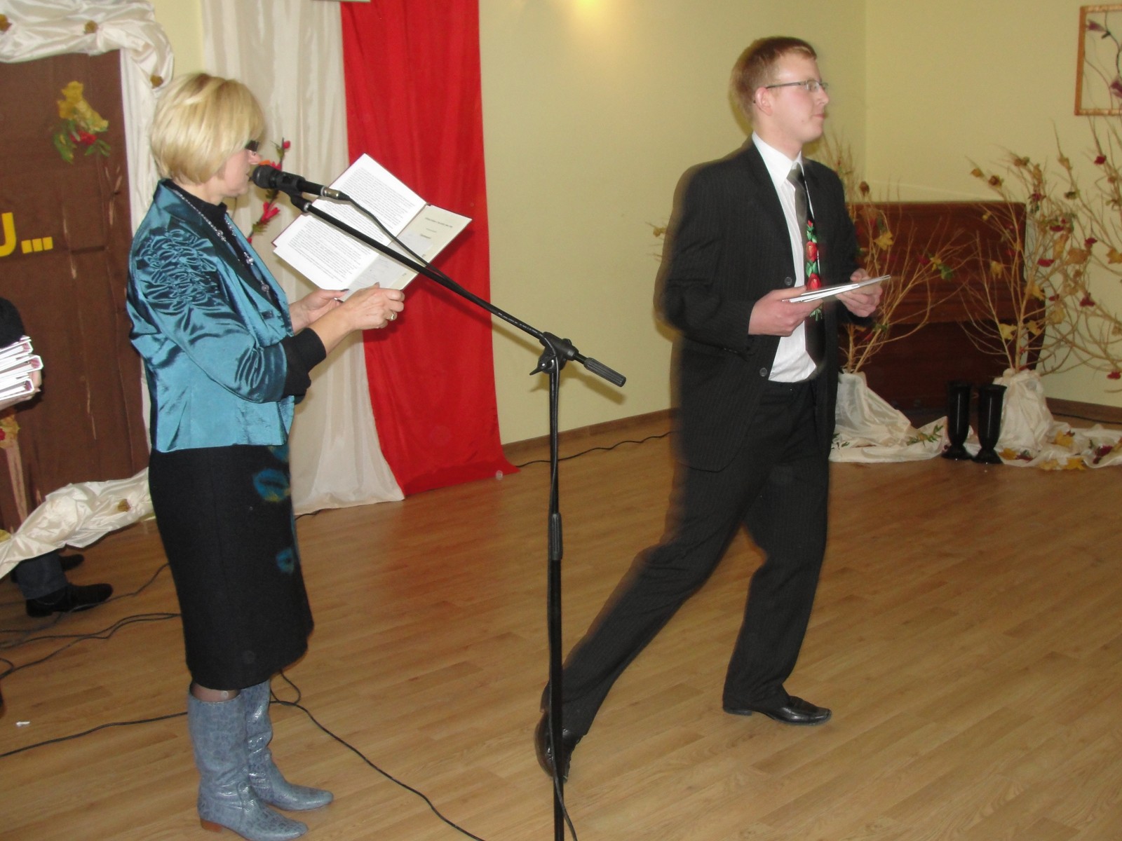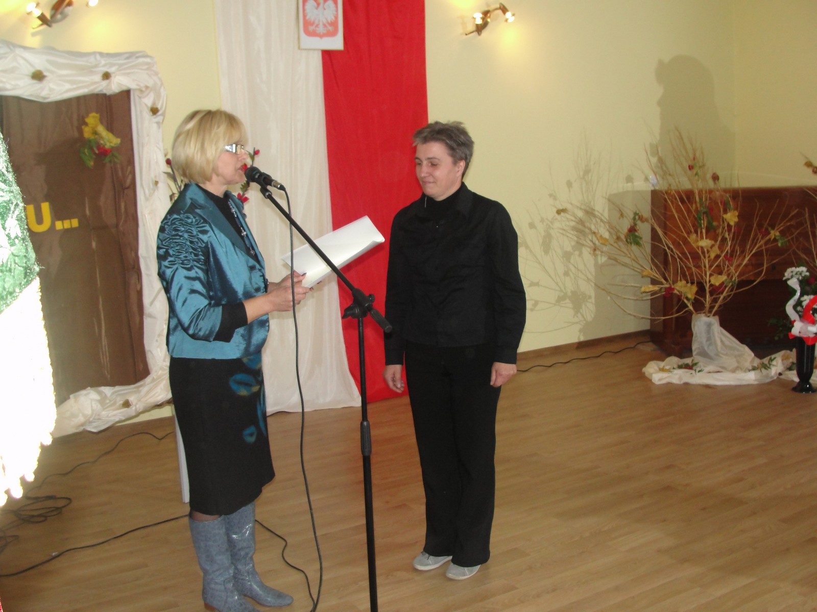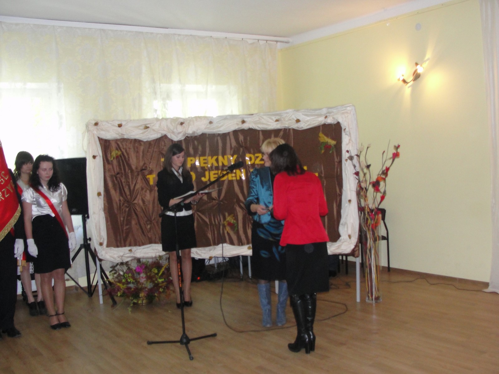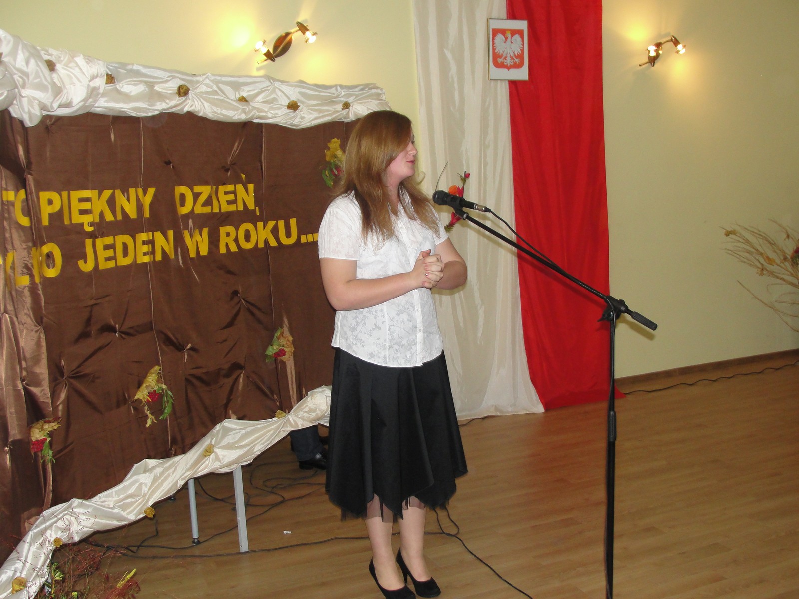 Następnie uczniowie przedstawili montaż słowno-muzyczny, w którym nie brakowało szkolnego humoru, ale też lirycznych podziękowań i życzeń. Nie zabrakło również przybliżenia sylwetki Jadwigi Dziubińskiej, która jest Patronem Szkoły.