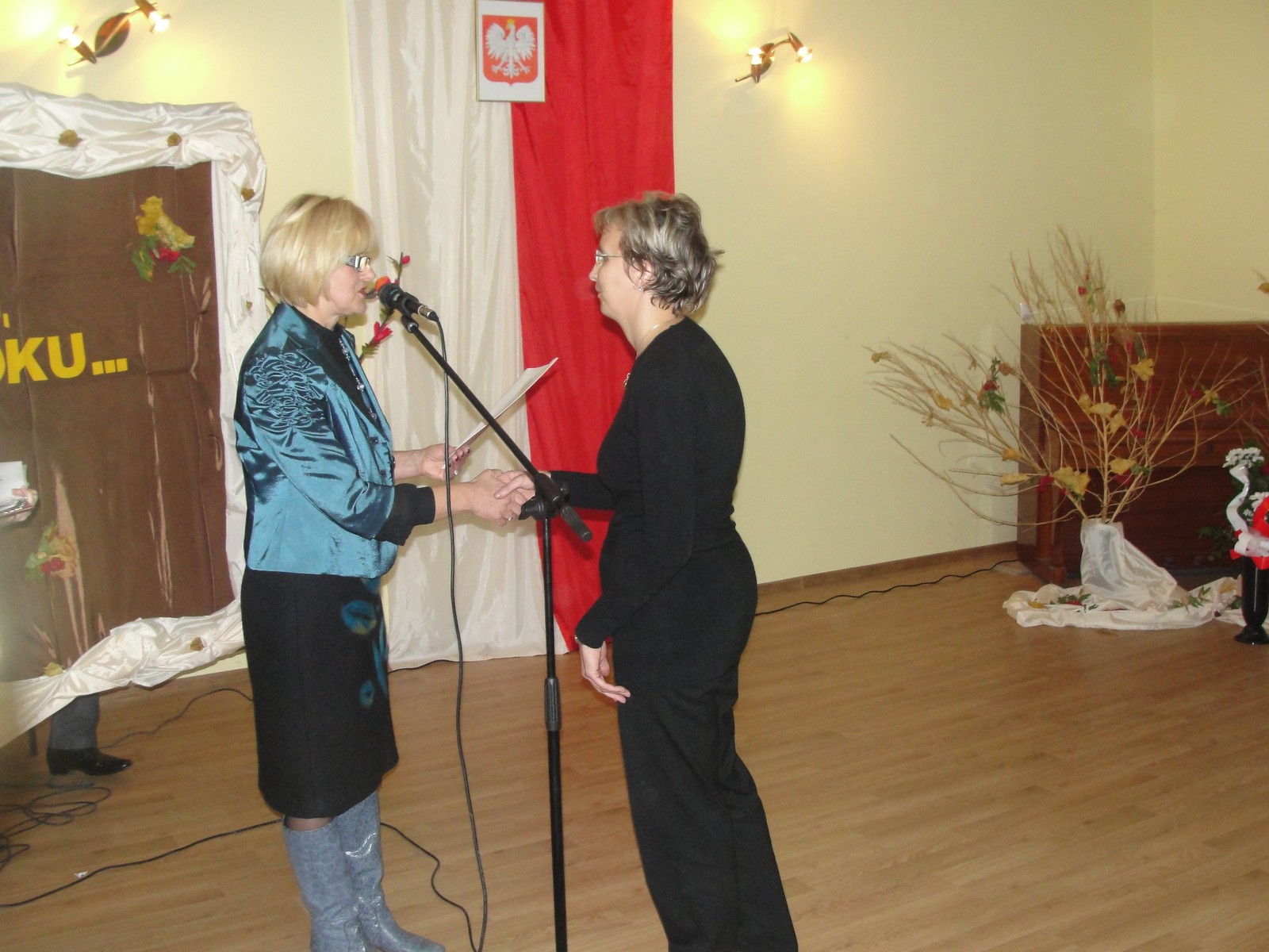 Pracownikom administracji i obsługi p. dyrektor podziękowała za codzienny trud i troskę o ucznia podkreślając, że są także uczestnikami procesu wychowania w naszej szkole.Na zakończenie życzyła wszystkim – sukcesów – nie tylko zawodowych, ale i osobistych, cierpliwości w pokonywaniu trudności codziennego życia szkolnego i wytrwałości w dążeniu do celu.To spotkanie było także okazją do nagrodzenia tych, którzy w minionym roku odnieśli najbardziej spektakularne sukcesy, którzy nie szczędzili sił, by ich wychowankowie rozwijali swoje umiejętności i zdolności, w szczególny sposób dbali o swój warsztat pracy i dzielili się wiedzą z innymi.