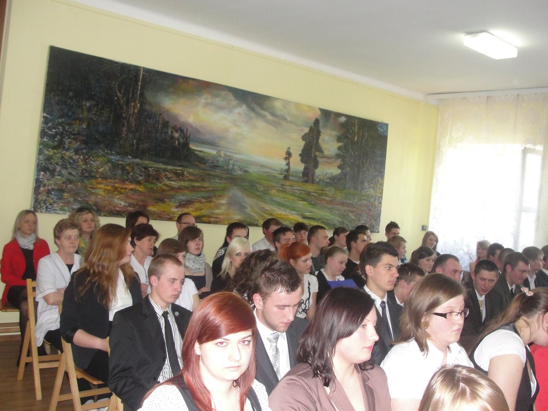 Na początku głos zabrała dyrektor szkoły p. Zofia Wawrzyńczak. Kolejnym punktem uroczystości było rozdanie abiturientom świadectw ukończenia szkoły i nagród za bardzo dobre i dobre wyniki w nauce, wzorowe zachowanie oraz stuprocentową frekwencję. Świadectwo z wyróżnieniem otrzymał Marcin Kudelski uczeń klasy IV Technikum kształcącego w zawodzie technik weterynarii. Na ręce jego rodziców został złożony list gratulacyjny