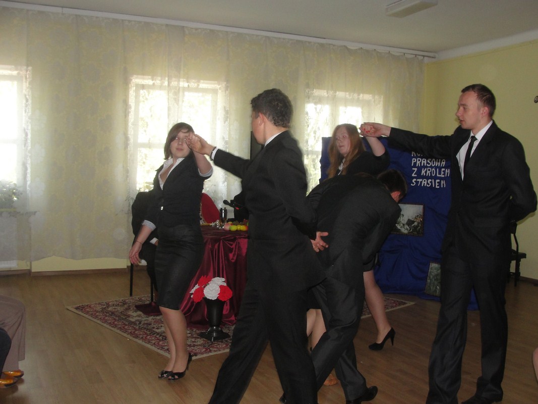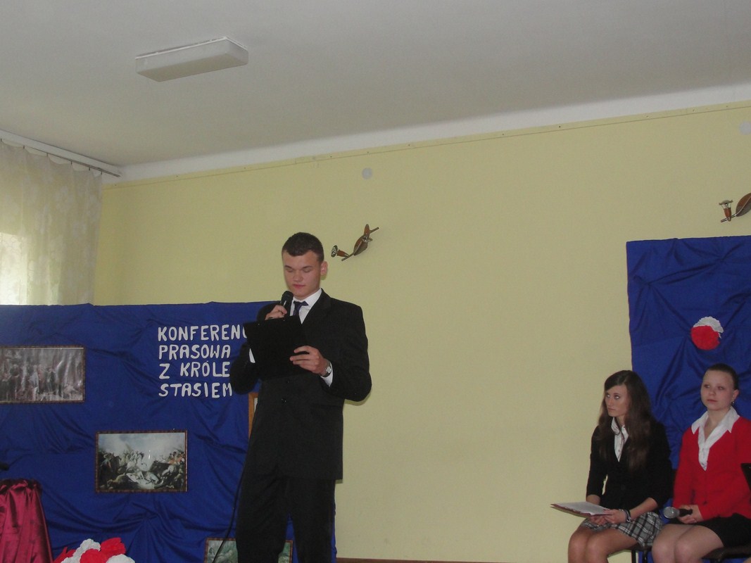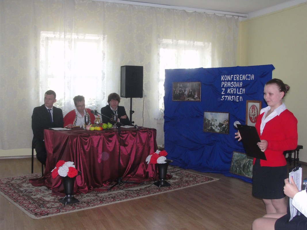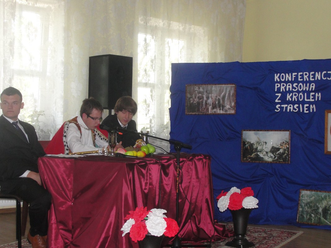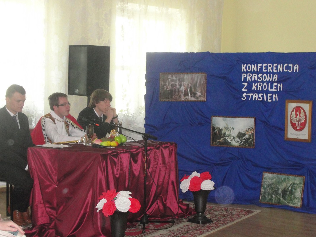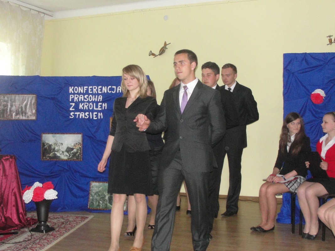 W tym roku uroczystość, jak zauważyli wszyscy zgromadzeni na świetlicy widzowie, cechowała się oryginalną konwencją i wykonaniem. Apel był w większości inscenizacją, podczas której publiczność obserwowała swoistego rodzaju „Konferencję prasową z samym królem Stasiem”. Uczestnikami konferencji oprócz głównych postaci, czyli króla i jego doradców, byli dziennikarze zadający władcy pytania dotyczące jego panowania oraz historii Polski. Publiczność uczestniczyła więc jednocześnie w lekcji historii na temat Polski z doby stanisławowskiej. Uroczystość uświetnił fragment „Poloneza Ogińskiego” w wykonaniu szkolnej grupy tanecznej. Na pełne uznanie zasługują również pieczołowicie dobrane elementy dekoracji i rekwizyty odpowiadające czasom panowania Stanisława Augusta Poniatowskiego.