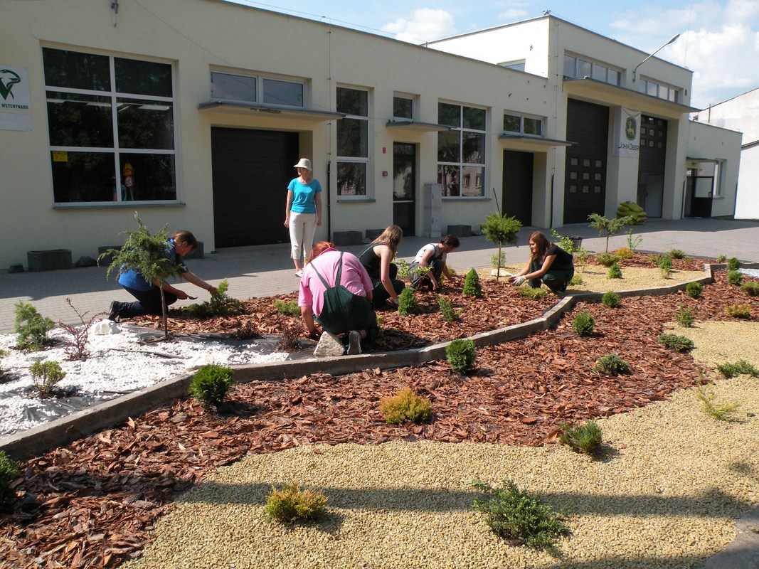 Wiosna to czas wzmożonej aktywności dla uczniów Technikum kształcącego w zawodzie technik architektury krajobrazu. Przyroda, która budzi się do życia potrzebuje odpowiednich zabiegów pielęgnacyjnych, czy korekcyjnych. Jest to również odpowiednia pora na zagospodarowanie i urządzanie terenów wokół szkoły. Dlatego też w ramach zajęć praktycznej nauki zawodu młodzież klasy III zaprojektowała rabatę składającą się w większości z roślin zimozielonych. W trakcie planowania nasadzeń uczniowie wzięli pod uwagę wiele czynników, m.in.: wymagania glebowe, stopień nasłonecznienia, wilgotność. Unikali również roślin trujących i często wywołujących alergię.