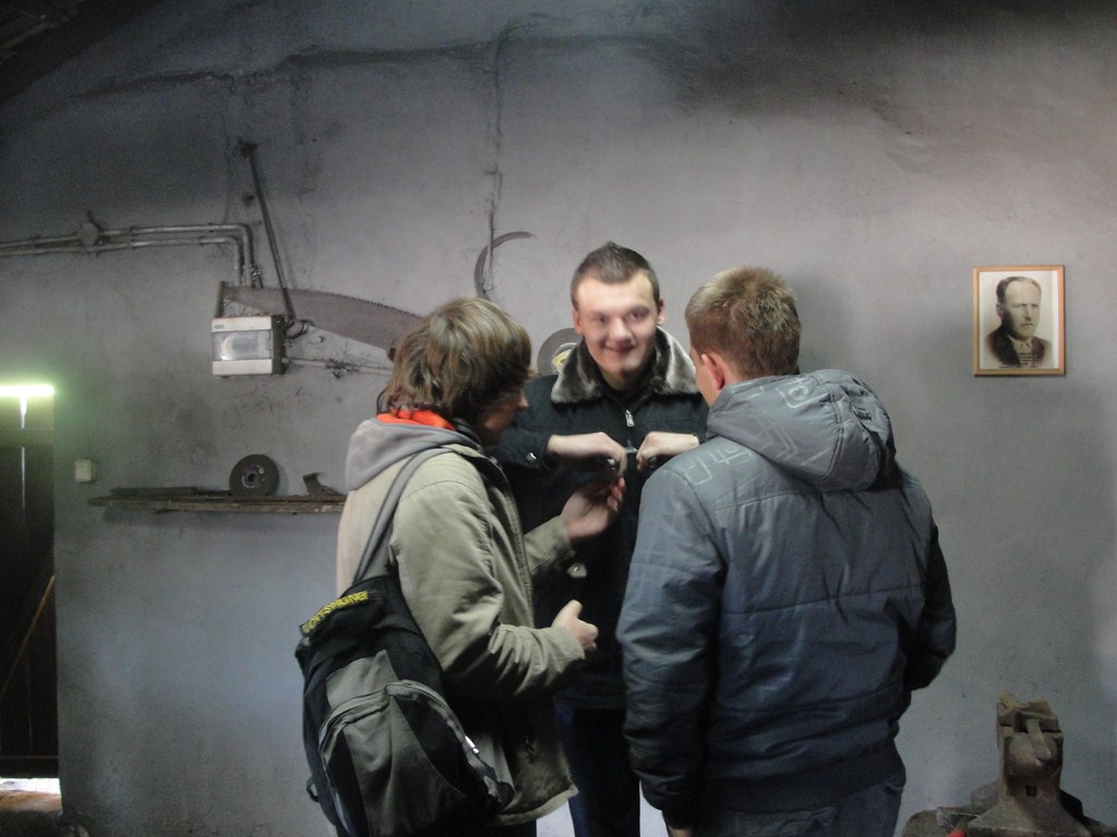 Pierwszą atrakcją wyjazdu była wizyta w „Starej Kuźni” w miejscowości Dzierżązna k. Zgierza. Uczniowie mieli okazję zobaczyć stary sprzęt kuźniczy, zaobserwować czynności kowala podczas kucia podkowy tradycyjną metodą pracy kowalskiej oraz sposób łączenia dwóch elementów żelaznych metodą na tzw. „hyc”. Wysłuchali ciekawej gawędy pana Zbigniewa Hauke, prezesa Stowarzyszenia Agroturystycznego Ziemi Zgierskiej na temat regionu. Dowiedzieli się jak dawniej wyglądała praca ludzi na wsi, że koła wytwarzał kołodziej. Podyskutowali o alternatywnych źródłach dochodów współczesnej wsi.
