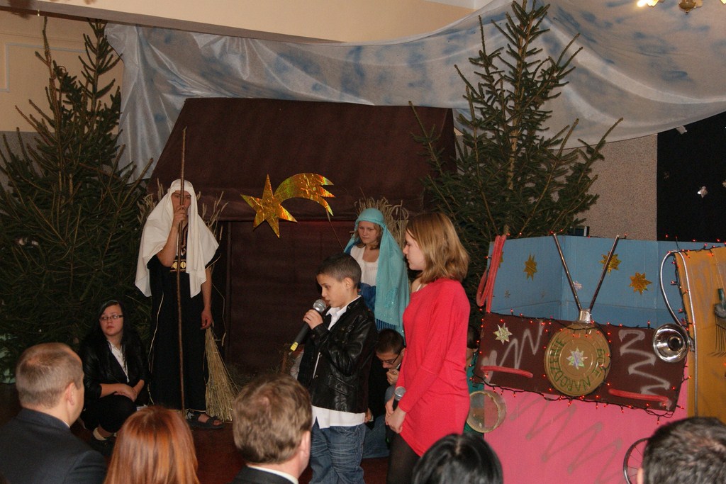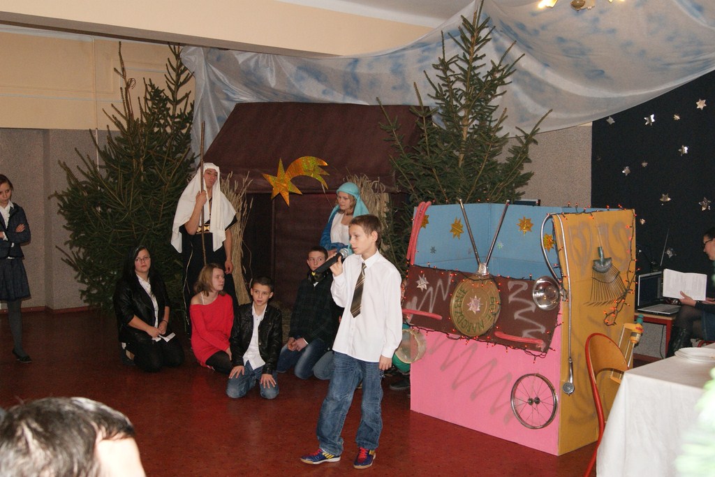 Spotkanie rozpoczęła pani Dyrektor Zofia Piotrowska witając wszystkich gości oraz swoich podopiecznych. Następnie głos zabrali aktorzy, którzy znajdowali się w czasie Świąt Boże Narodzenie w dalekiej Przyszłości. Wigilia nie składała się z tradycyjnych potraw, lecz tabletek je zastępujących. Dzieci znalazły starą machinę i z radością wróciły do Świąt z XXI wieku. Przy dźwiękach kolęd dzieliliśmy się opłatkiem. Skosztowaliśmy tradycyjnych potraw wigilijnych. A następnie młodzież została zaproszona do pokojów dzieci. Rozstanie było wzruszające na szczęście spotykamy się już w czwartek 20 grudnia. Do zobaczenie w Zespole Szkół Centrum Kształcenia Rolniczego im. Jadwigi Dziubińskiej w Zduńskiej Dąbrowie…
