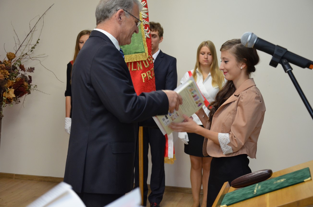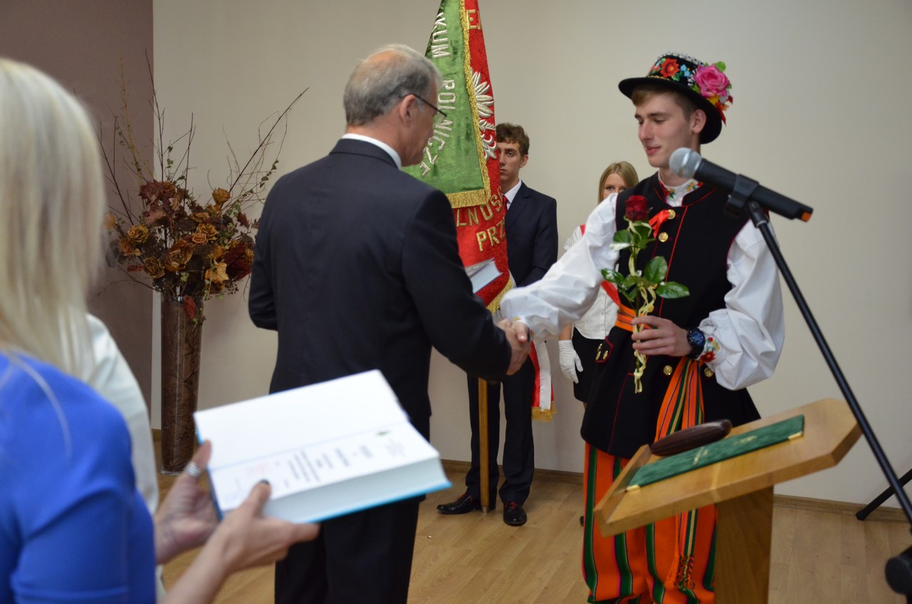 Część oficjalna rozpoczęła się od wręczenia świadectw z czerwonym paskiem oraz nagród książkowych uczniom, którzy osiągnęli najlepsze wyniki w nauce i wyróżniali się wzorowym zachowaniem, mieli 100% frekwencję i aktywnie uczestniczyli w życiu szkoły. Następnie młodzież zaprezentowała program artystyczny pt. „Okruchy wspomnień…” wzbogacony występem zespołu ludowego „Dąbrowiacy” oraz grupy tanecznej tańca nowoczesnego.