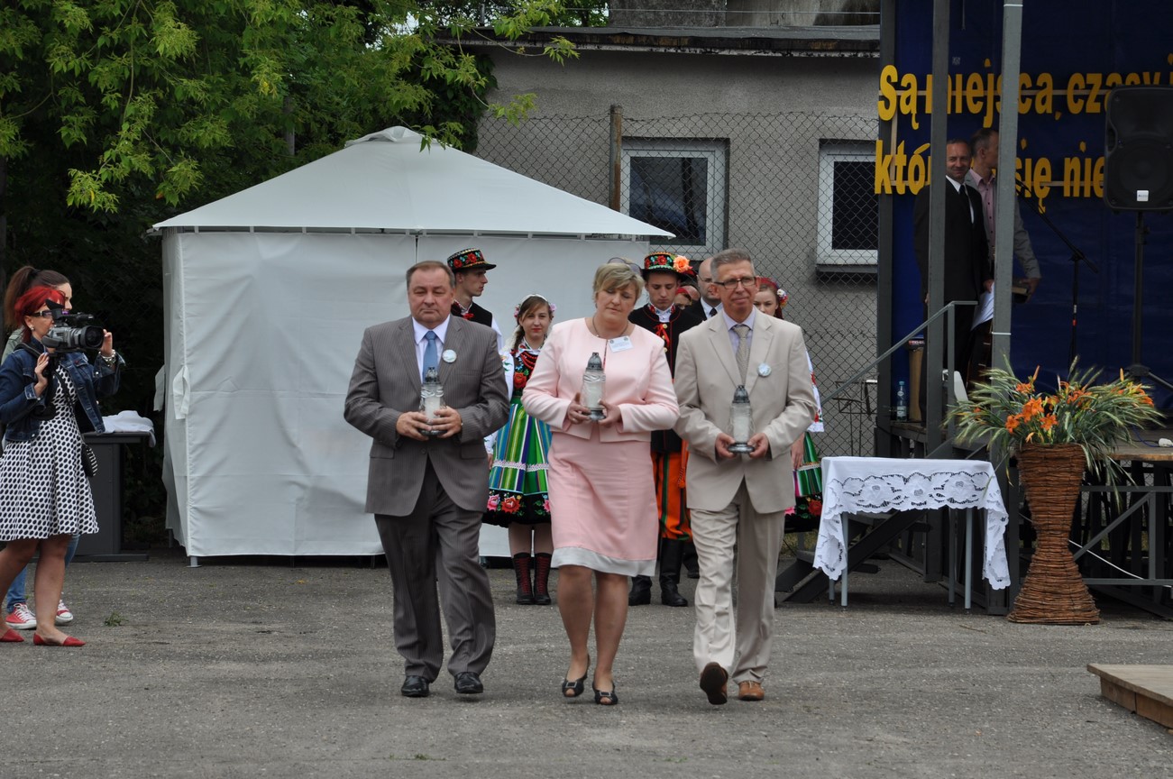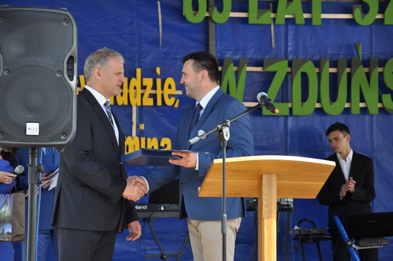 Po części sakralnej przyszedł czas na centralną, oficjalną odsłonę uroczystości, którą okolicznościowym, pełnym historycznych i poetyckich wątków, przemówieniem rozpoczął dyrektor szkoły pan Stanisław Kosmowski. Następnie głos zabrał przedstawiciel absolwentów pan dr Zbigniew Nasalski i wielu znamienitych gości ze świata kultury, nauki oraz szeroko rozumianego życia publicznego, którzy licznie przybyli do Zduńskiej Dąbrowy. Po złożeniu kwiatów pod tablicami pamiątkowymi i odczytaniu listów gratulacyjnych prowadzący tę część imprezy absolwenci Agnieszka Skonieczna oraz Wojciech Biniewicz zakończyli ją wyprowadzeniem sztandaru szkoły i zapowiedzią występów artystycznych przygotowanych przez nauczycieli, a także uczniów ZSCKR w Zduńskiej Dąbrowie.