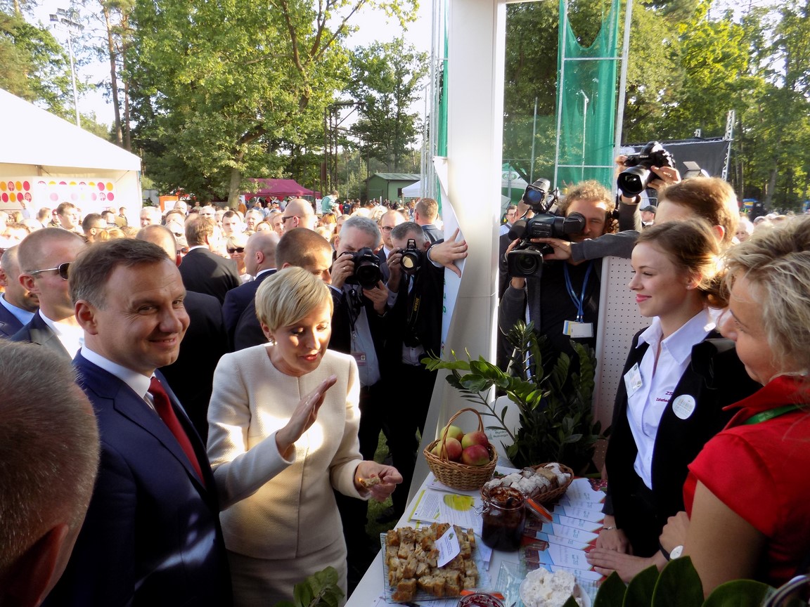 Para prezydencka zwiedziła stoiska wystawiennicze ze wszystkich województw, w tym z województwa łódzkiego oraz stoisko Agencji Rynku Rolnego, przy którym prezentowała się nasza szkoła z produktami regionalnymi z powiatu łowickiego.