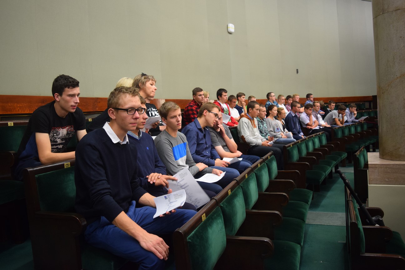 W czasie pobytu w stolicy młodzież odwiedziła także Sejm. Poznała układ sali posiedzeń, a z galerii dla publiczności mogła przysłuchiwać się obradom posłów w czasie nadzwyczajnego posiedzenia, którego tematem była sprawa uchodźców.