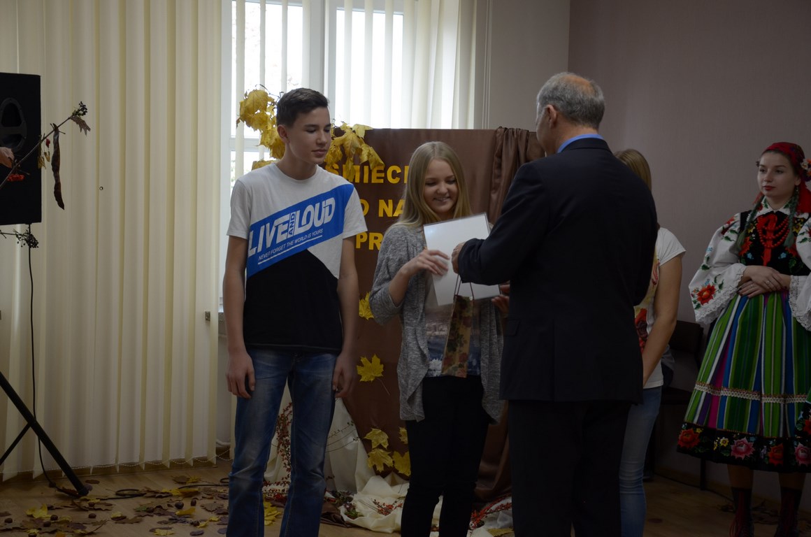 W końcu nadeszła długo oczekiwana chwila ogłoszenia wyników konkursów plastycznego, fotograficznego, literackiego i multimedialnego związanych z tematem przewodnim Drugiego Forum Ekologicznego odbywającego się pod znamiennym hasłem: „Śmieci – to co mnie przeraża”. Atrakcyjne nagrody w postaci tabletów, przenośnych dysków twardych i bezprzewodowych głośników wraz z dyplomami wręczył zwycięzcom oraz wyróżnionym dyrektor Stanisław Kosmowski. Pozostali uczestnicy konkursów otrzymali nagrody pocieszenia, na które składały się czekoladowe przysmaki i dyplomy złożone na ręce opiekunów. Warto nadmienić, iż najlepsza praca w konkursie literackim i dwie pierwsze prezentacje w konkursie multimedialnym zostały zaprezentowane publicznie.