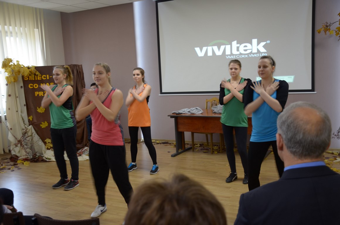 Występ wokalny uczennic klas czwartych szkoły w Zduńskiej Dąbrowie pod tytułem „Jesienny koncert pokochaj jesień” stanowił kolejny punkt Drugiego Forum Ekologicznego. Nastrojowe utwory wyśpiewane w przepięknej jesiennej scenerii przygotowanej przez uczniów klasy trzeciej technikum kształcącego w zawodzie technik architektury krajobrazu umilały czas gimnazjalistom do momentu kiedy to na mównicy pojawili się specjaliści działający aktywnie na rzecz ekologii w zakresie gospodarki odpadami i śmieciami, którzy wygłosili krótkie referaty na temat sposobów radzenia sobie ze śmieciami i ich właściwego zagospodarowania: