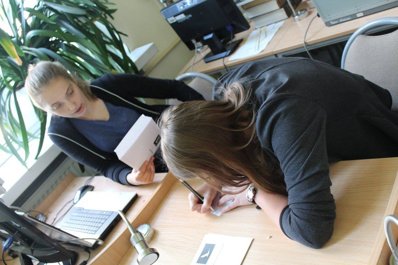Nasze spotkanie rozpoczęło się od poznania historii książki oraz jej zmieniającej się formy, tym samym oglądania najcenniejszych zbiorów WBP- rękopisów, starodruków, rycin, map i numizmatów. Po krótkiej przerwie kontynuowaliśmy zwiedzanie choćby w Dziale Zbiorów Regionalnych, który specjalnie na naszą wizytę przygotował swoje zbiory związane z regionem Łowickim. W chwilę później już zgłębialiśmy tajemnicę działania Literackiej Mapy Województwa Łódzkiego oraz poznaliśmy obsługę bibliotecznego skanera.
