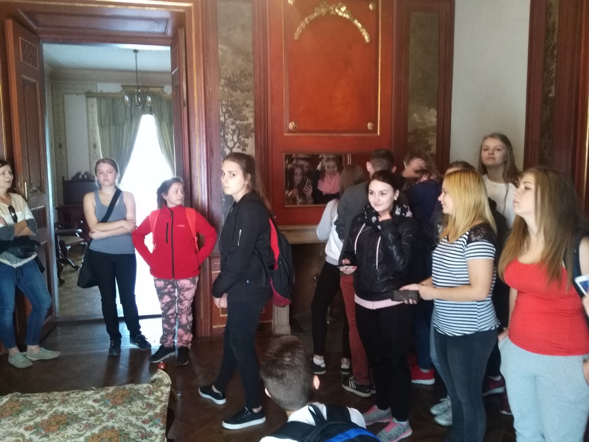 Dzięki uprzejmości prezesa Stadniny Koni, młodzież miała okazję zwiedzić wnętrza pałacu w Walewicach oraz poznać jego ciekawą historię.